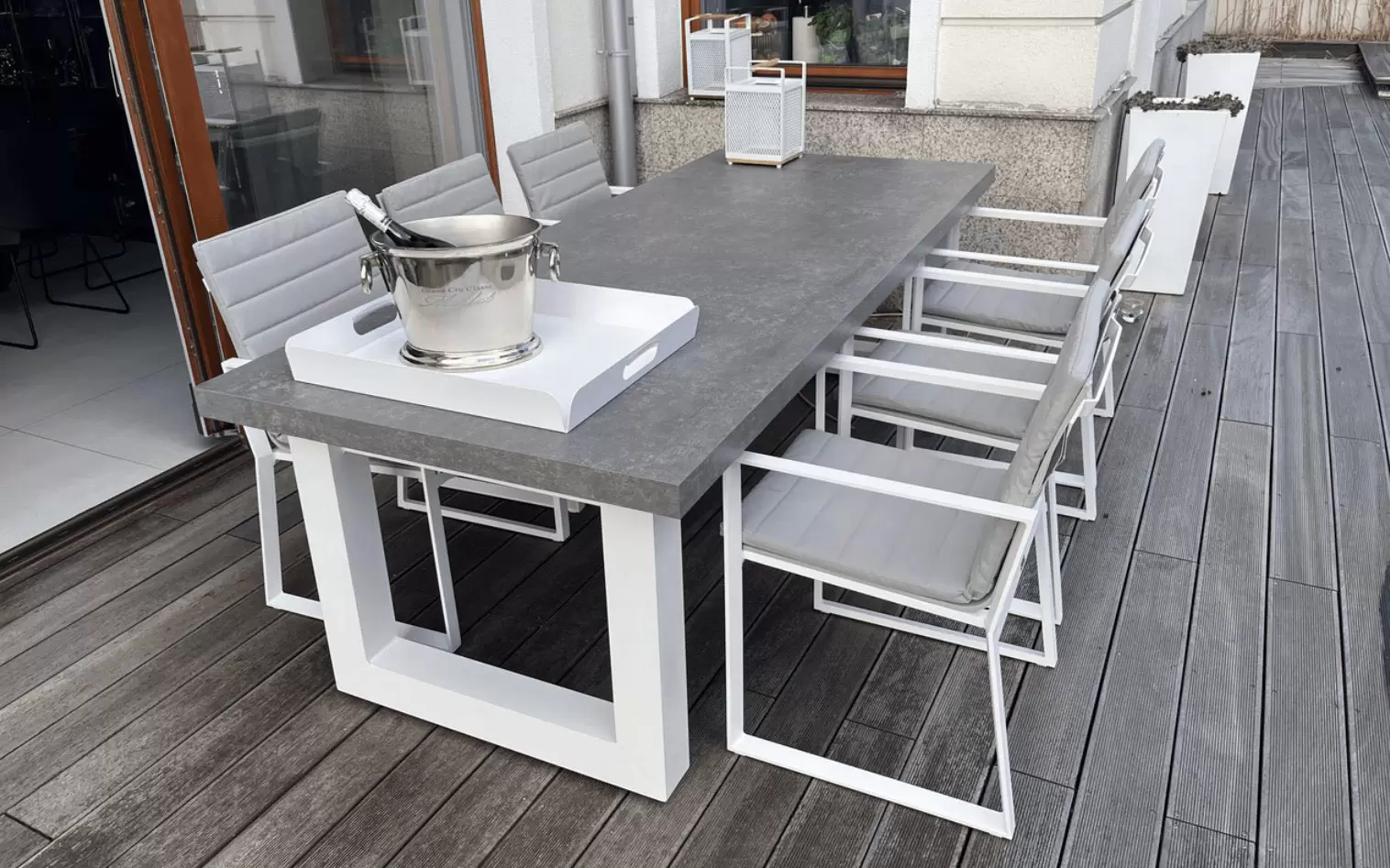 Solidny blat ceramiczny i elegancki wygląd aluminiowych nóg to wizytówka stołu ogrodowego STELVIO. Ceramika jest bardzo mocnym i odpornym na zarysowania materiałem, dzięki czemu jest bardzo łatwa w utrzymaniu. Blat ma robiącą wrażenie grubość 6 cm.