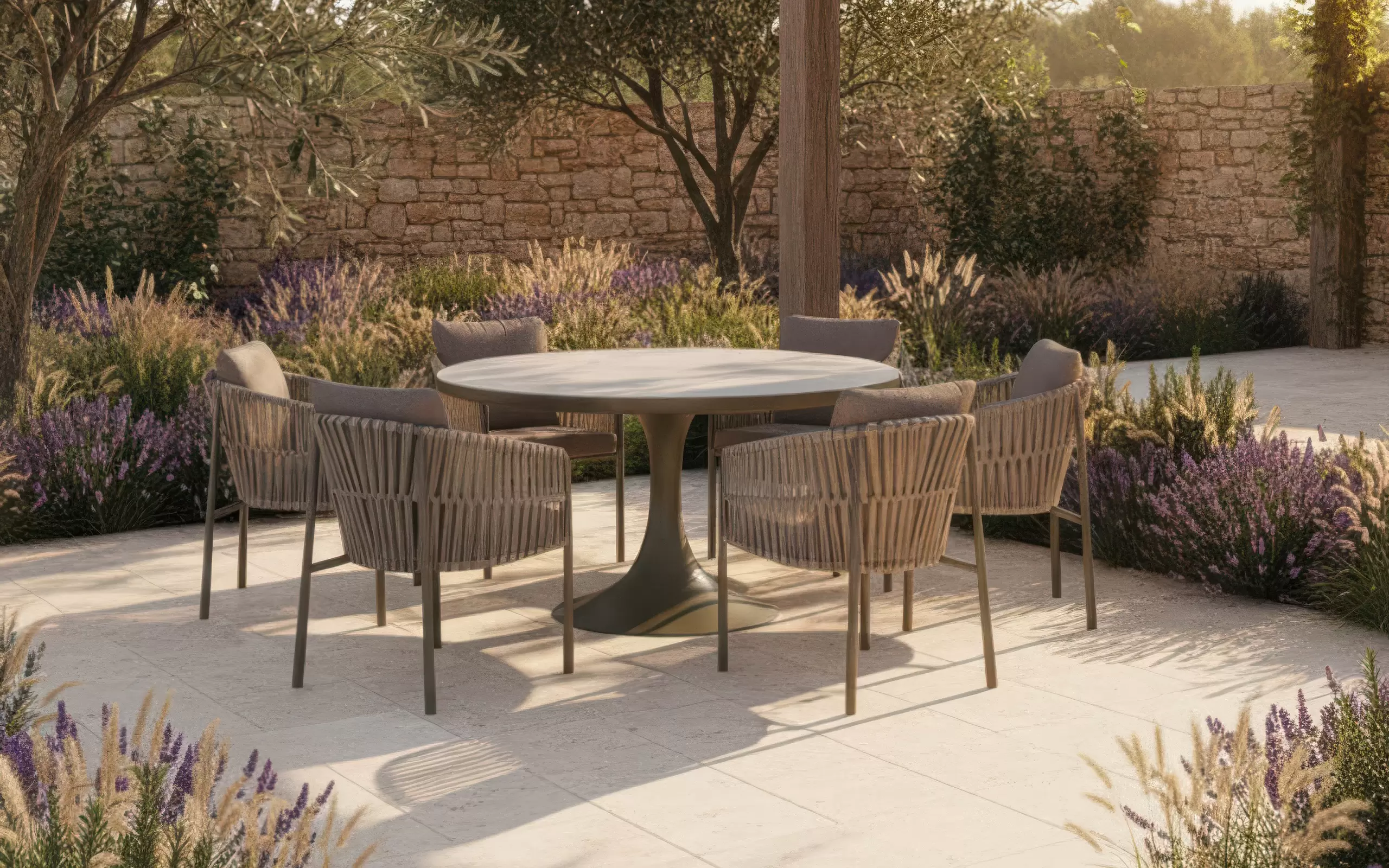 Zestaw VALENCIA Taupe to przemyślany dialog między barwami ziemi a nowoczesną strukturą materiałów. Subtelne przejścia tonalne między taupe a beżem poduszek oraz perłową ceramiką sprawiają, że komplet ten staje się elegancką, a zarazem niezwykle komfortową bazą do aranżacji tarasów o najwyższym standardzie.