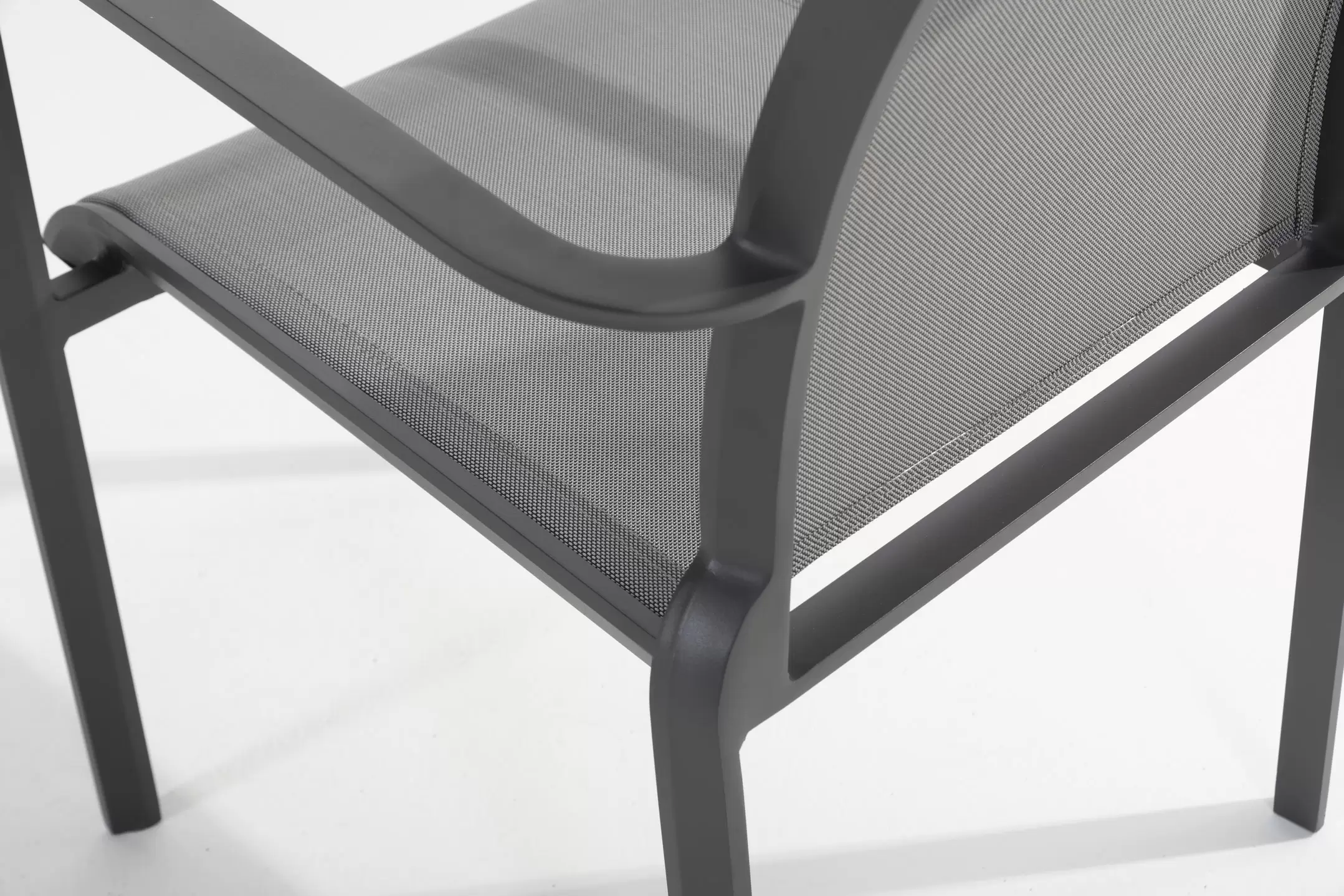 Krzesło ogrodowe do ustawiania w stos Taste 4SO Melbourne ma aluminiową ramę w kolorze antracyt lub białym. Konstrukcja jest idealnie wykończona i nie wymaga montażu. Siedzisko i oparcie aluminiowego krzesła ogrodowego jest wykonane z tekstyliny.