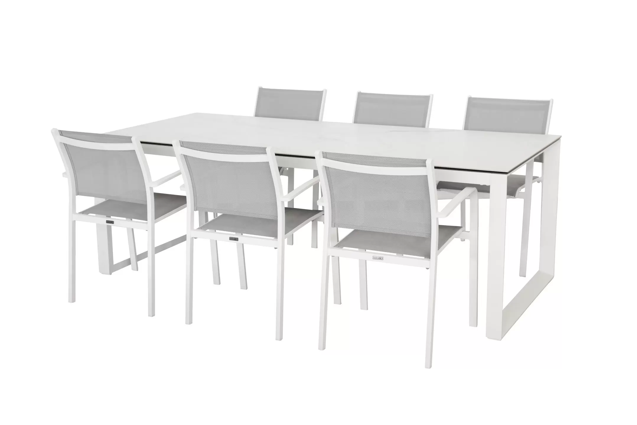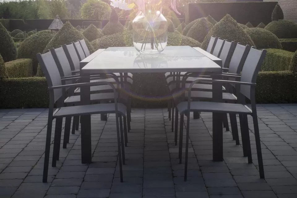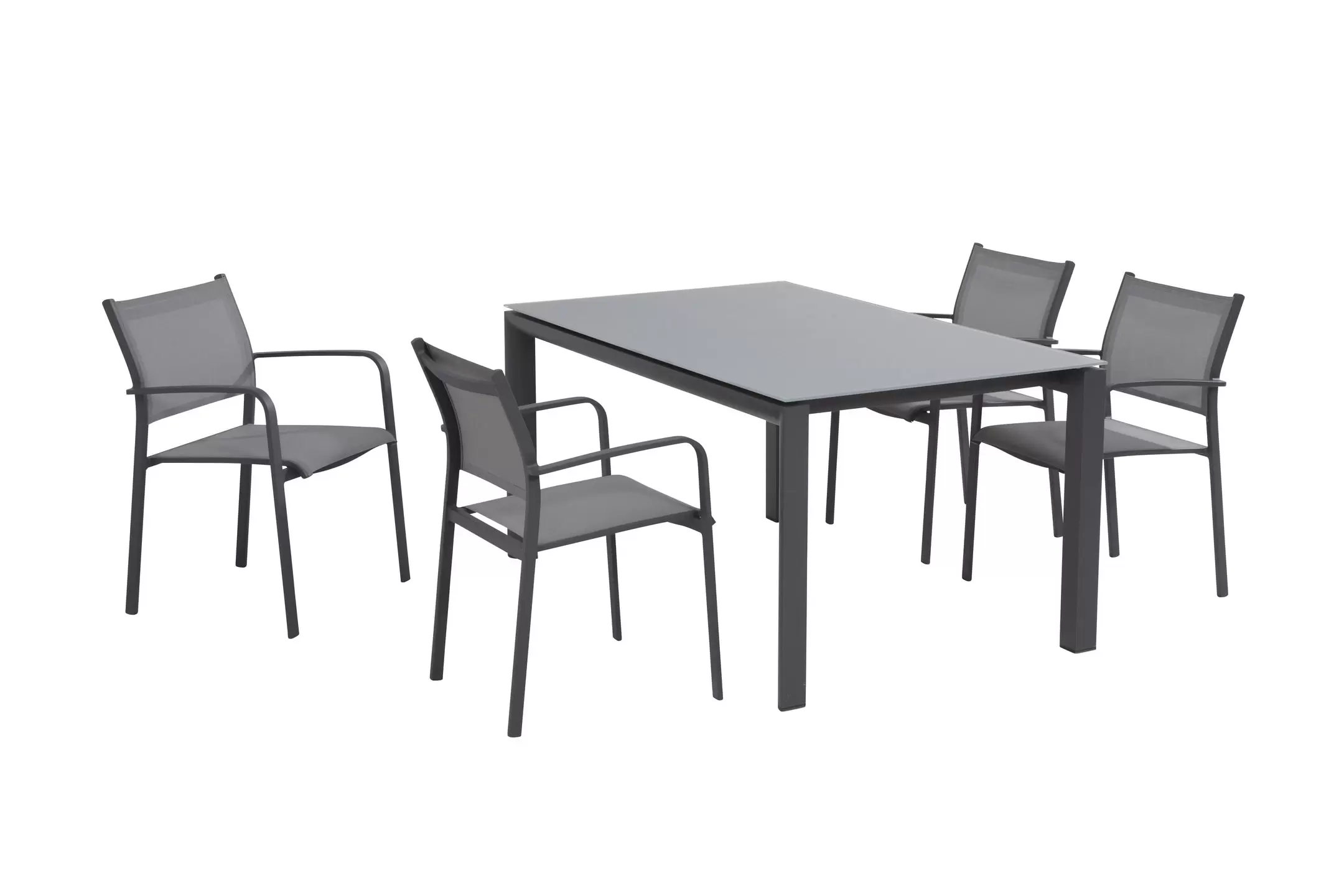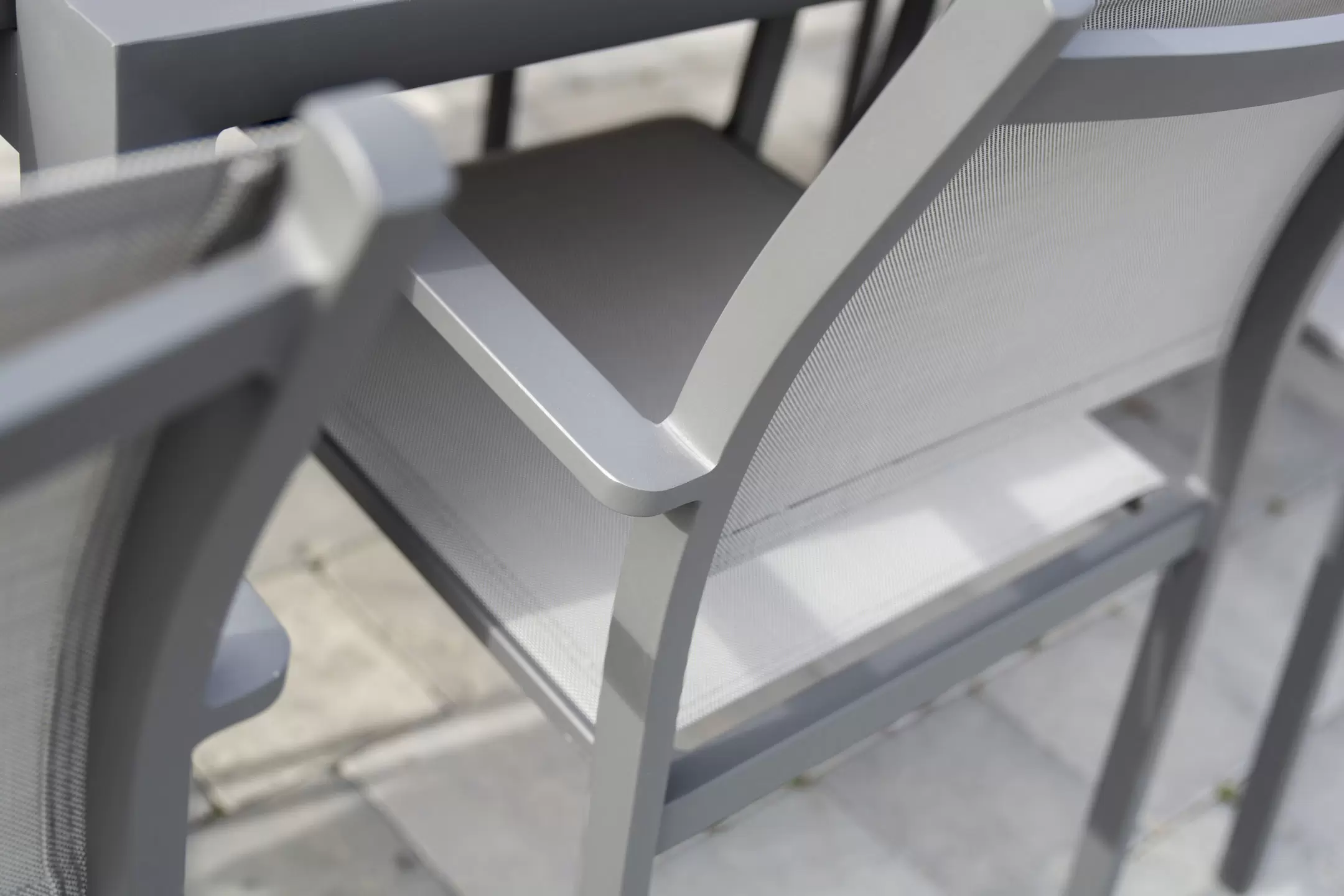 Fotele o konstrukcji aluminiowej z siedziskami z tekstyliny.