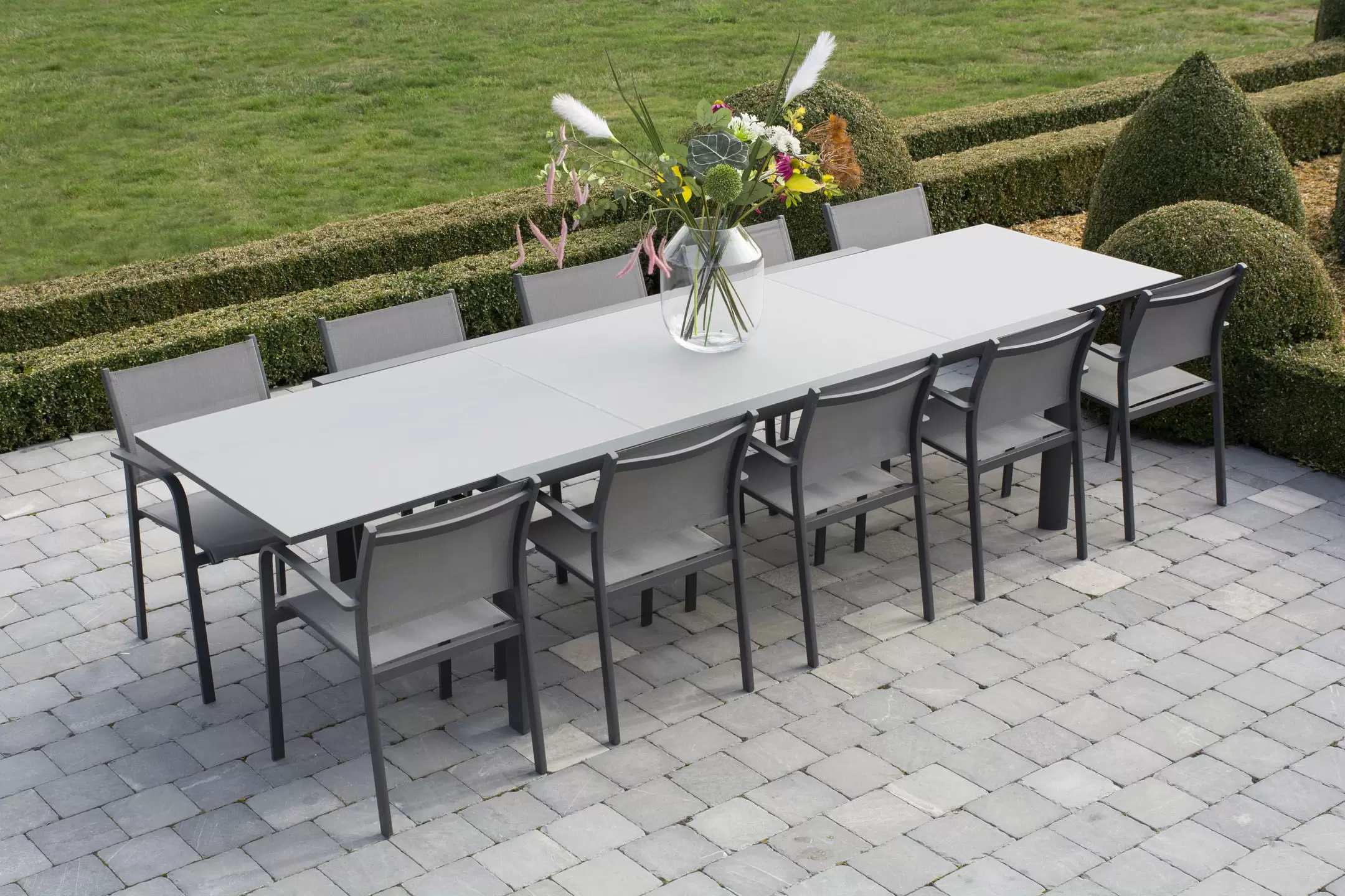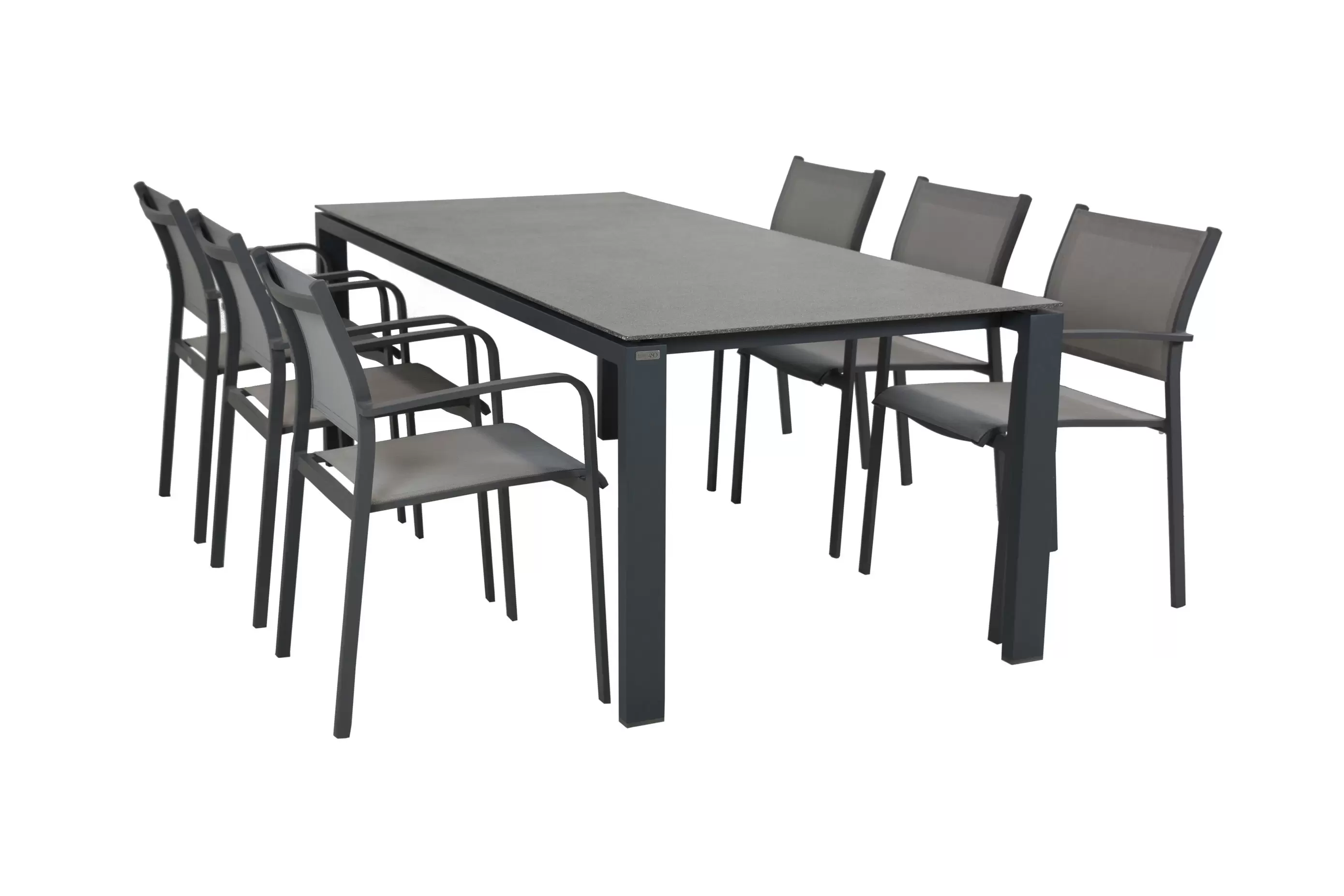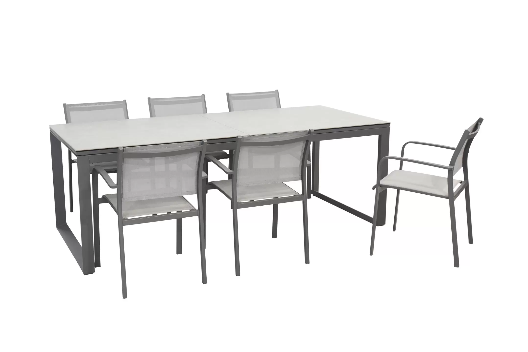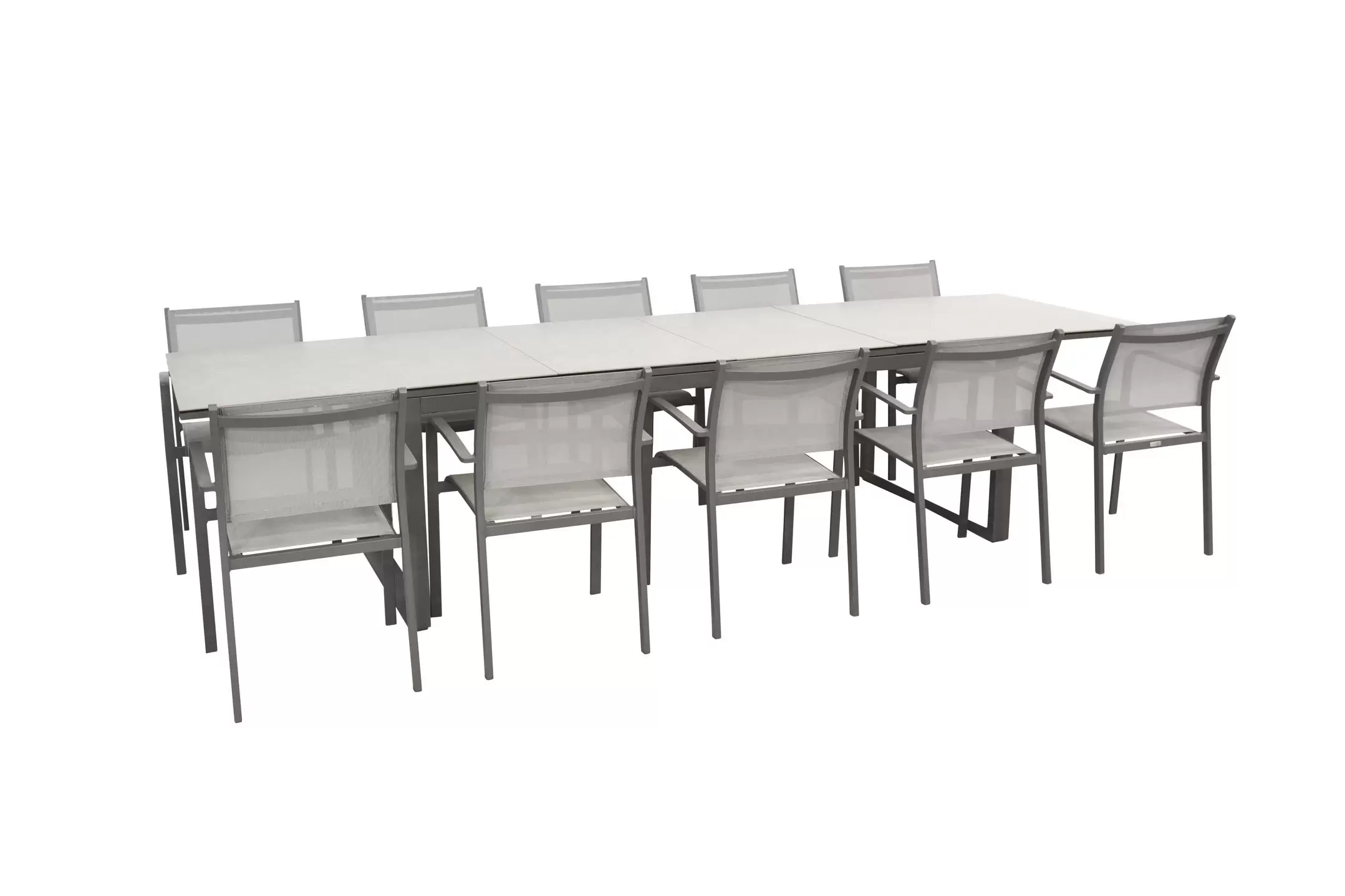 Fotele o konstrukcji aluminiowej z siedziskami z tekstyliny.