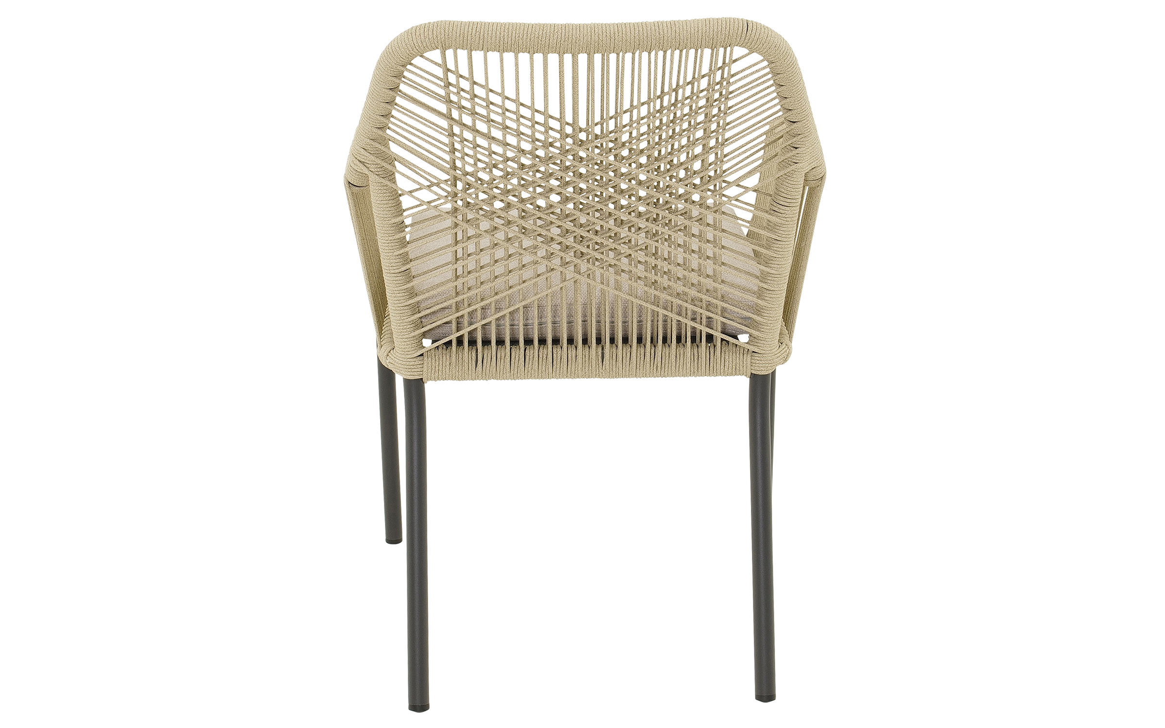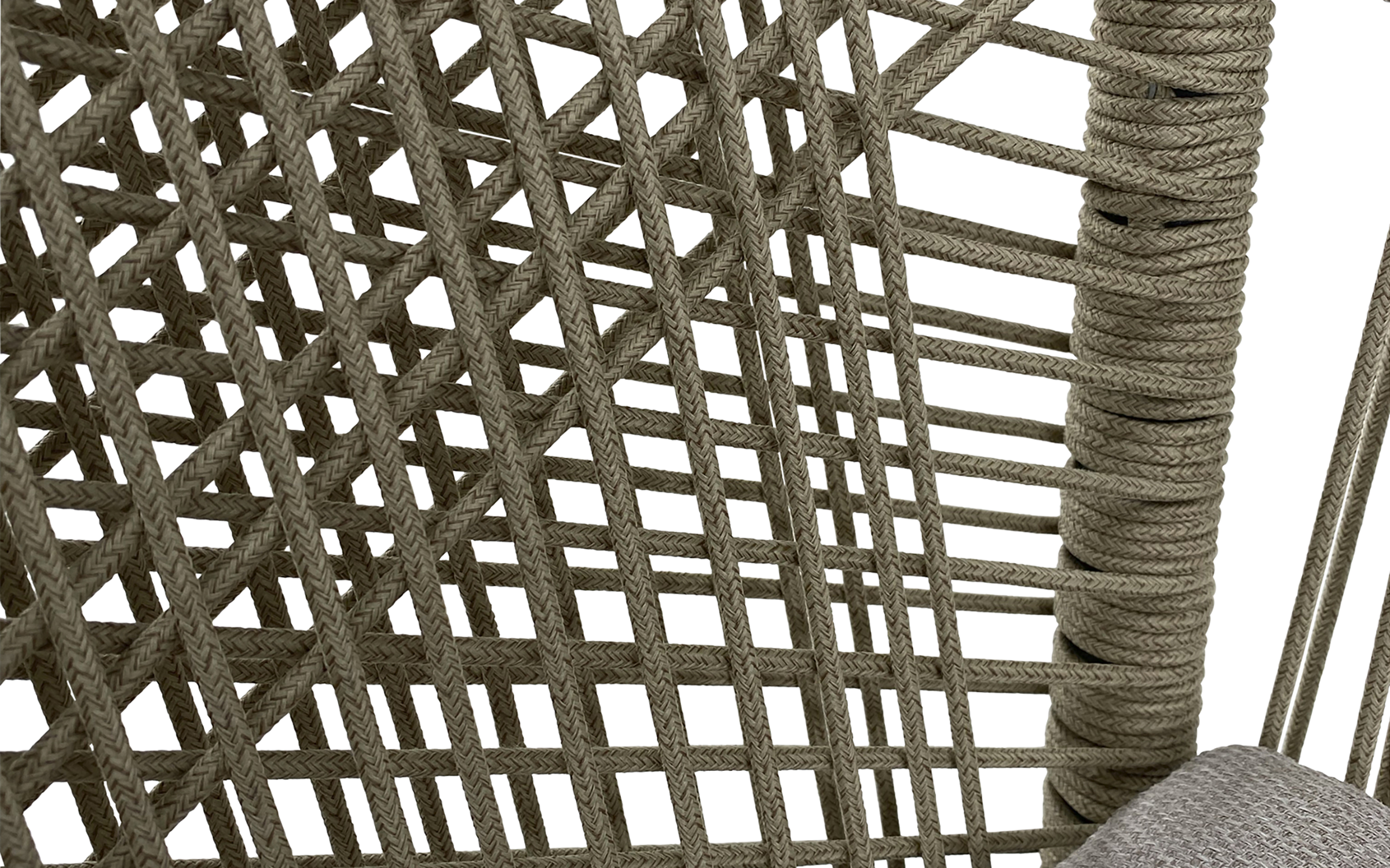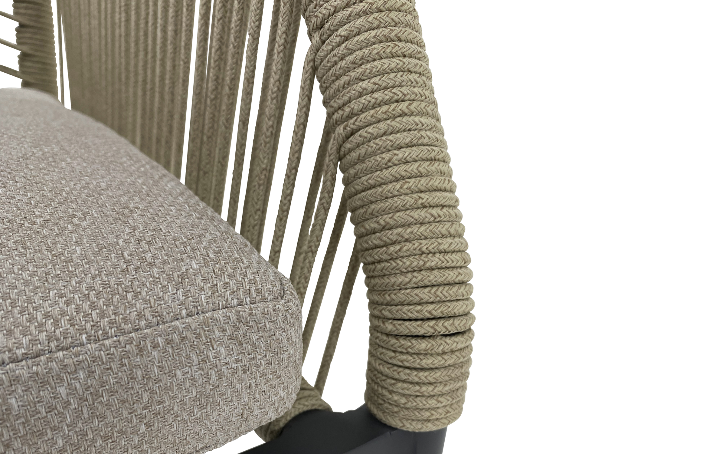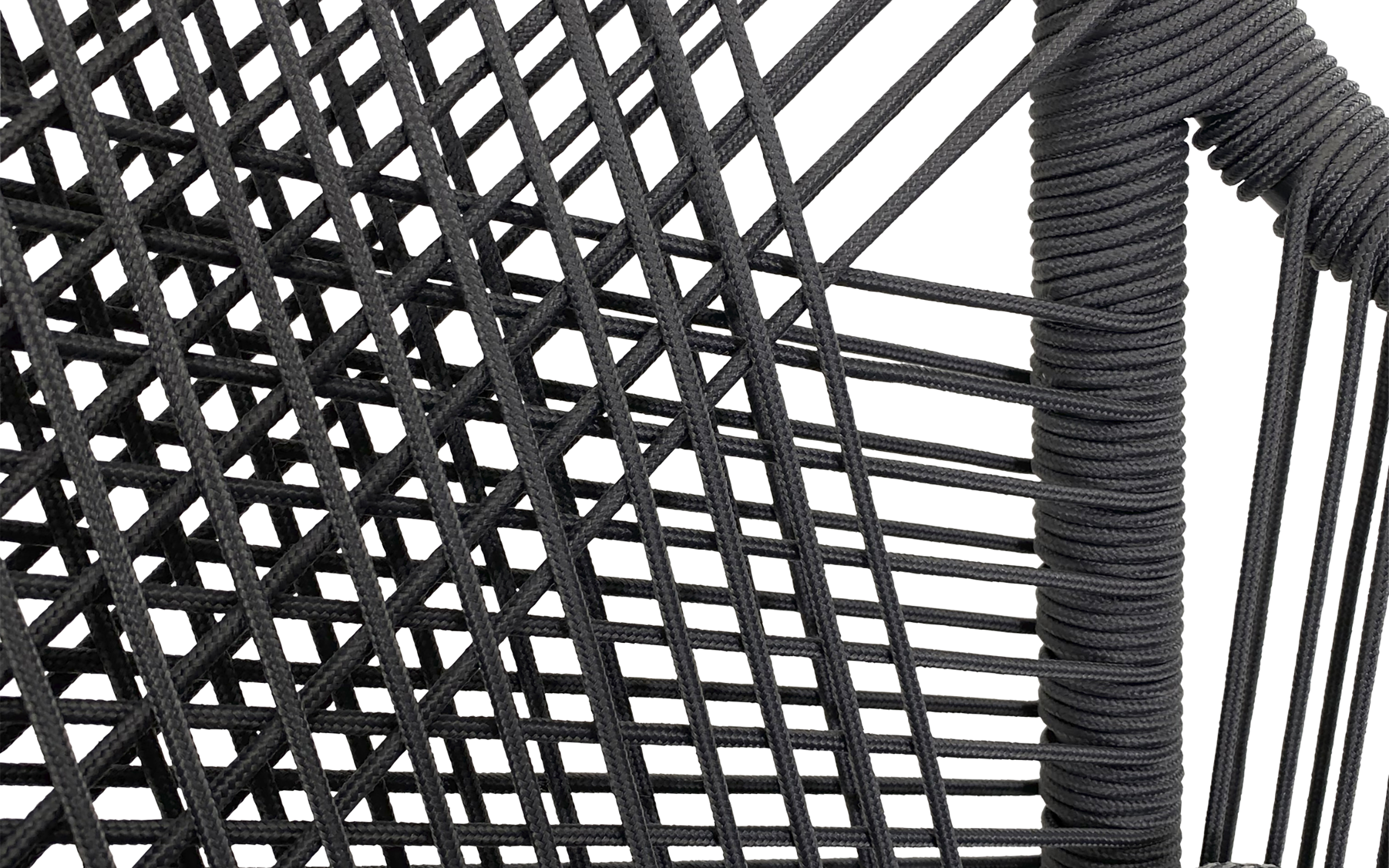 - Komfort: ergonomiczne siedzisko i oparcie oplecione liną polipropylenową