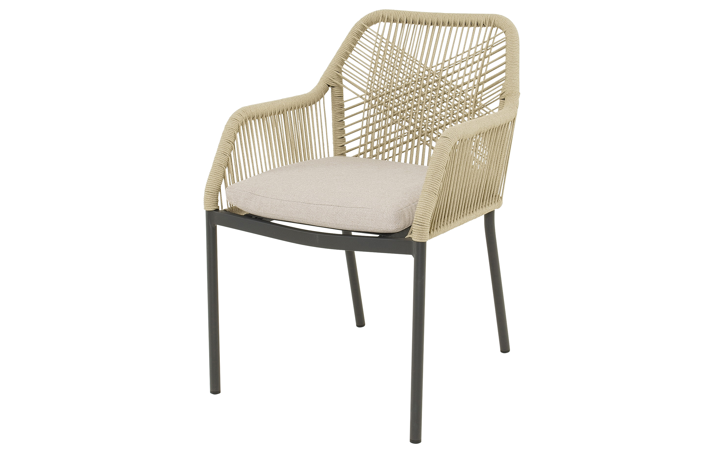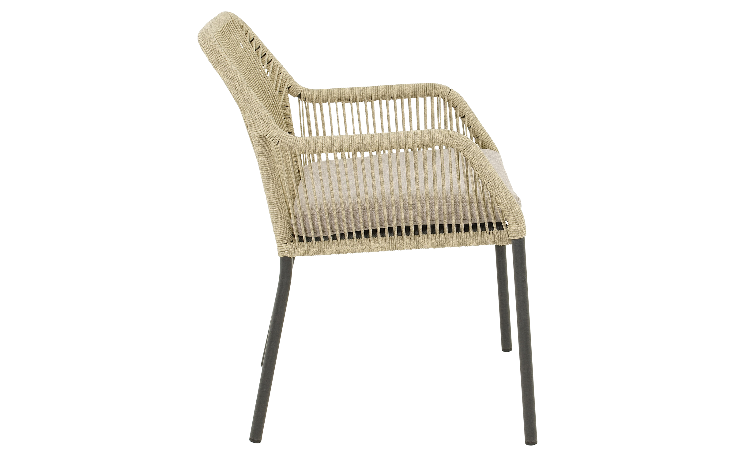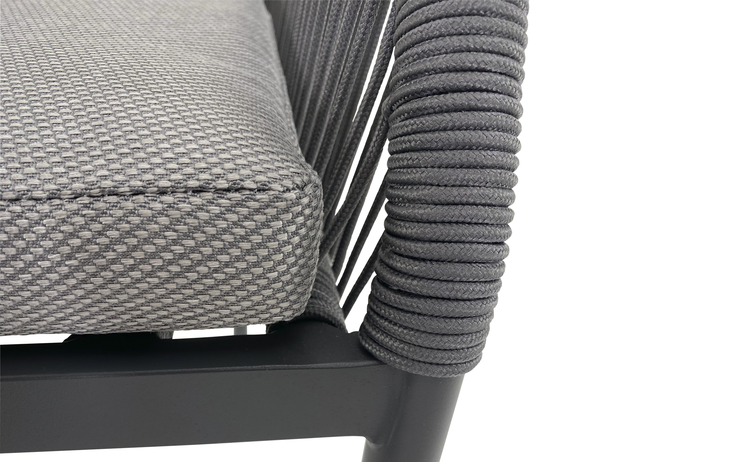 - Komfort: ergonomiczne siedzisko i oparcie oplecione liną polipropylenową