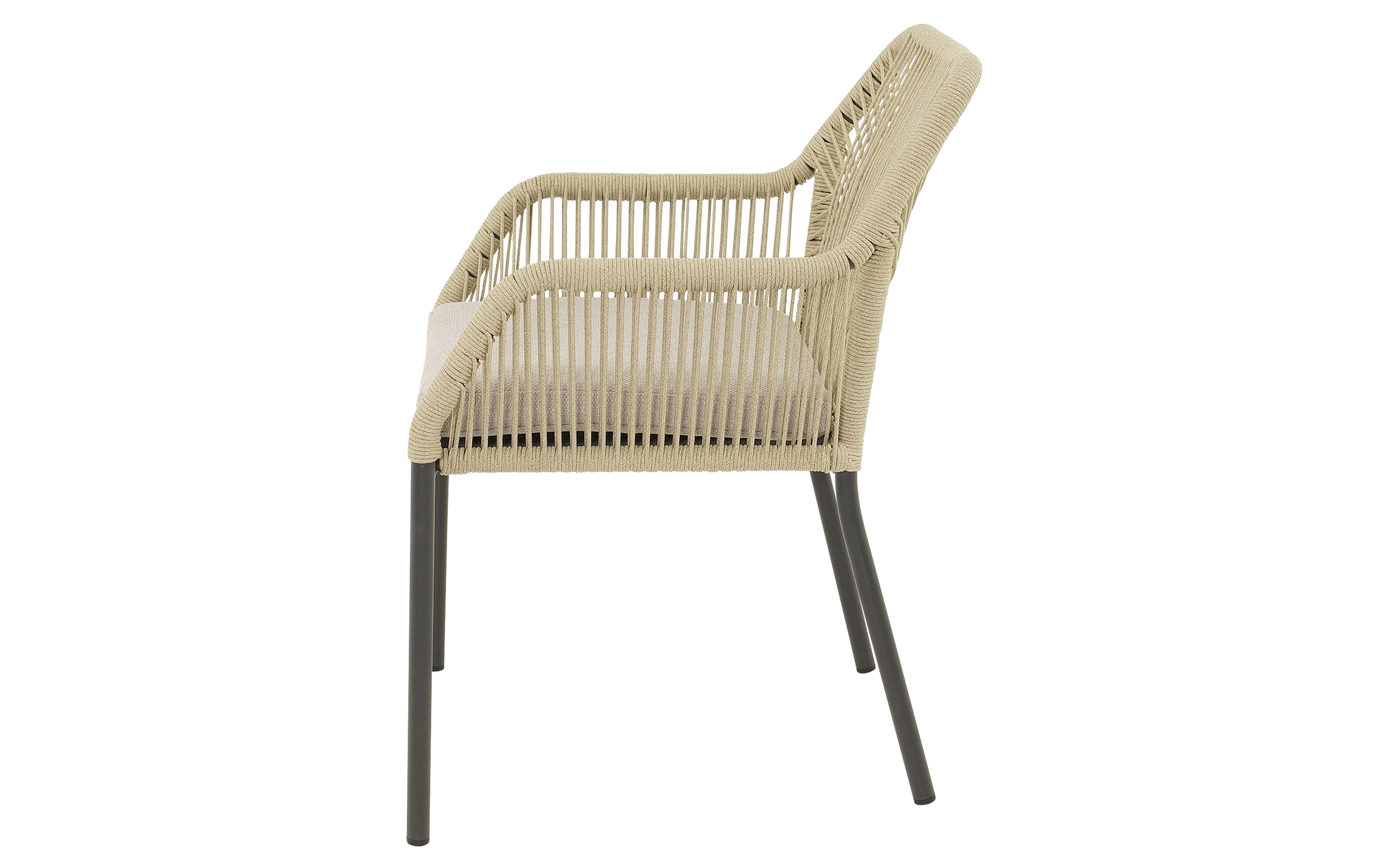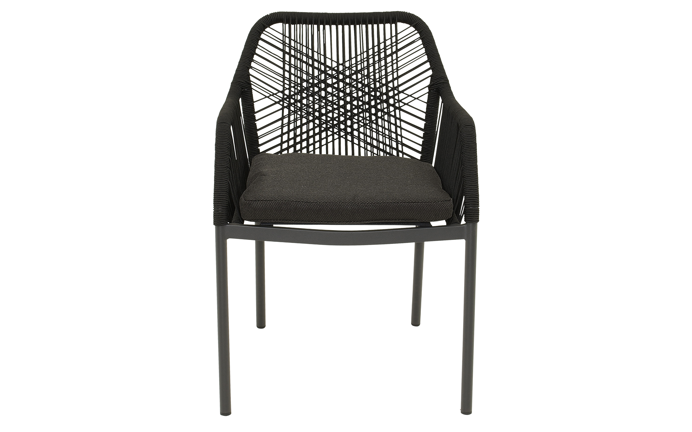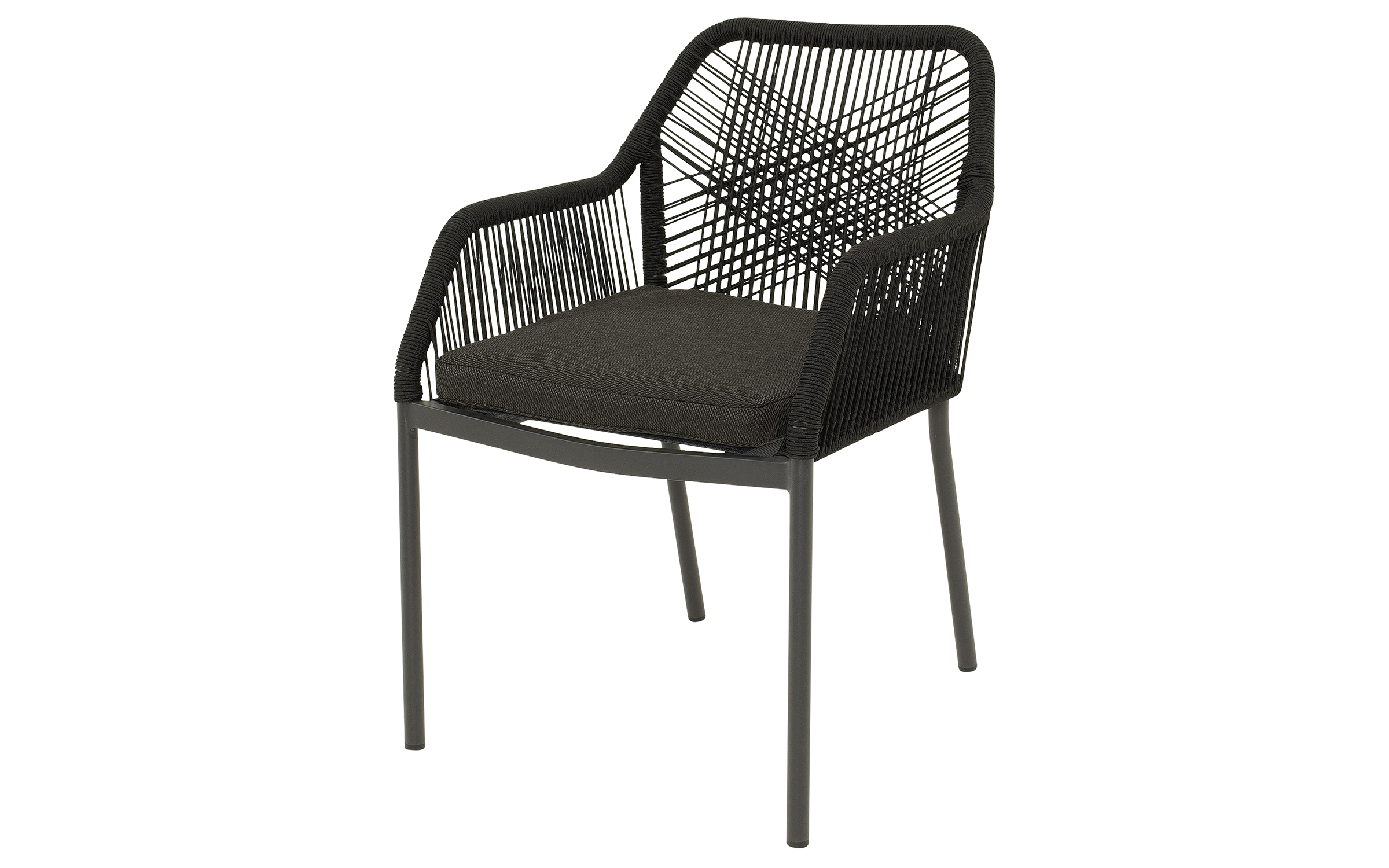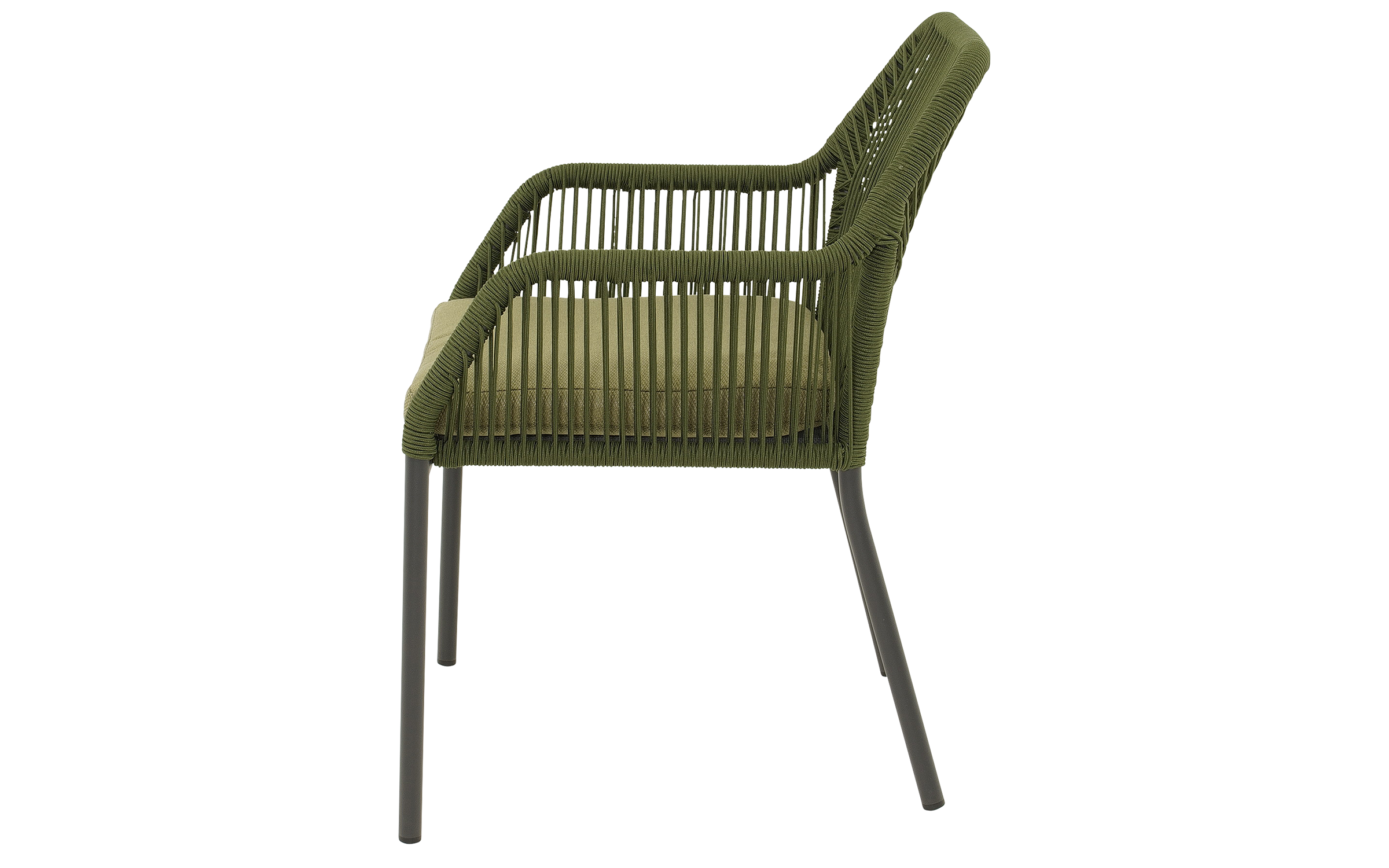 - Komfort: ergonomiczne siedzisko i oparcie oplecione liną polipropylenową