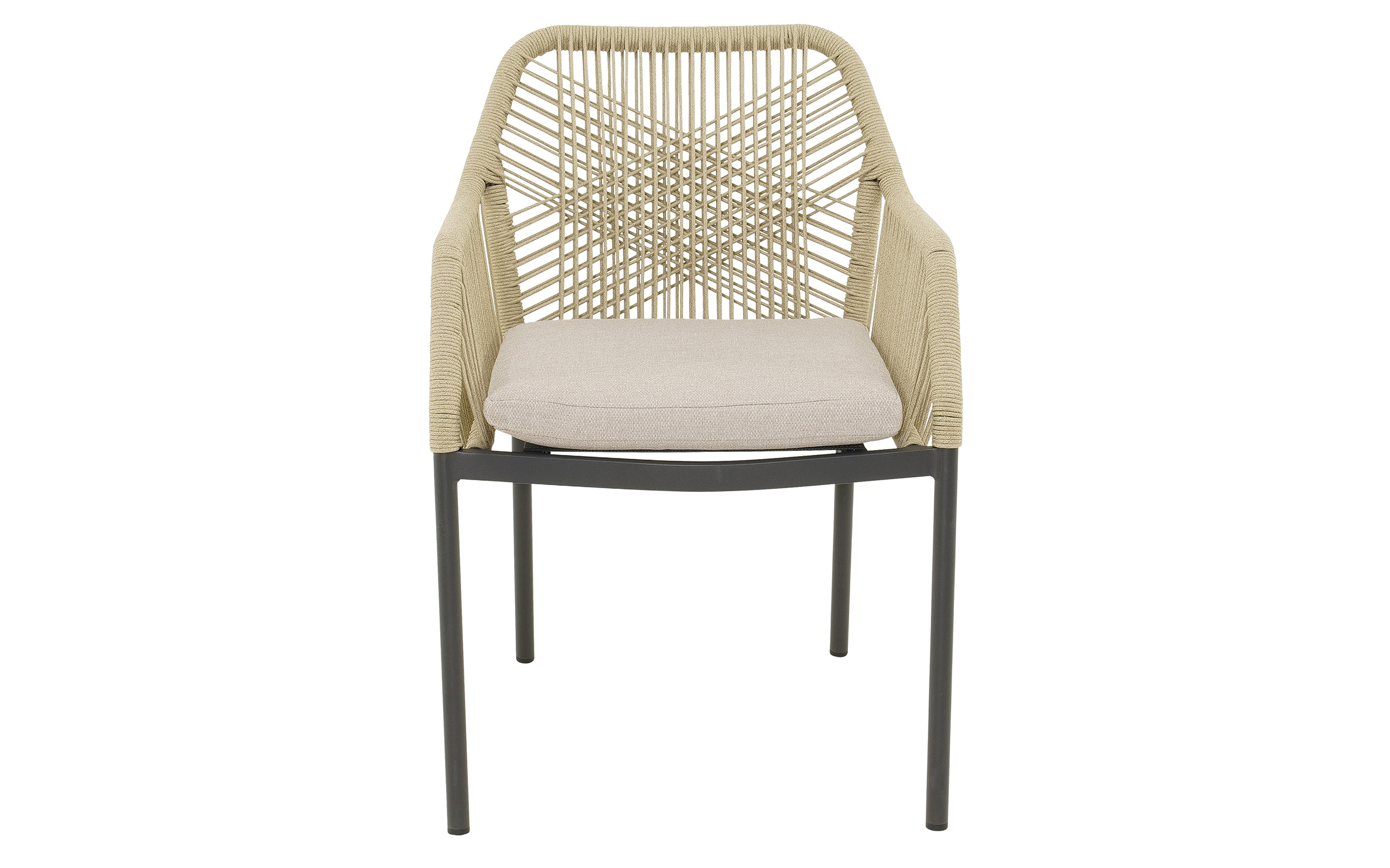 AKITA to krzesło ogrodowe marki Lesli Living, które łączy nowoczesny wygląd z praktyczną funkcjonalnością. Oparcie oplecione liną polipropylenową dostępne w trzech kolorach – szarym, zielonym i żółtym – nadaje meblowi wyjątkowy charakter i zapewnia komfort użytkowania. Aluminiowa rama gwarantuje trwałość i odporność na korozję.