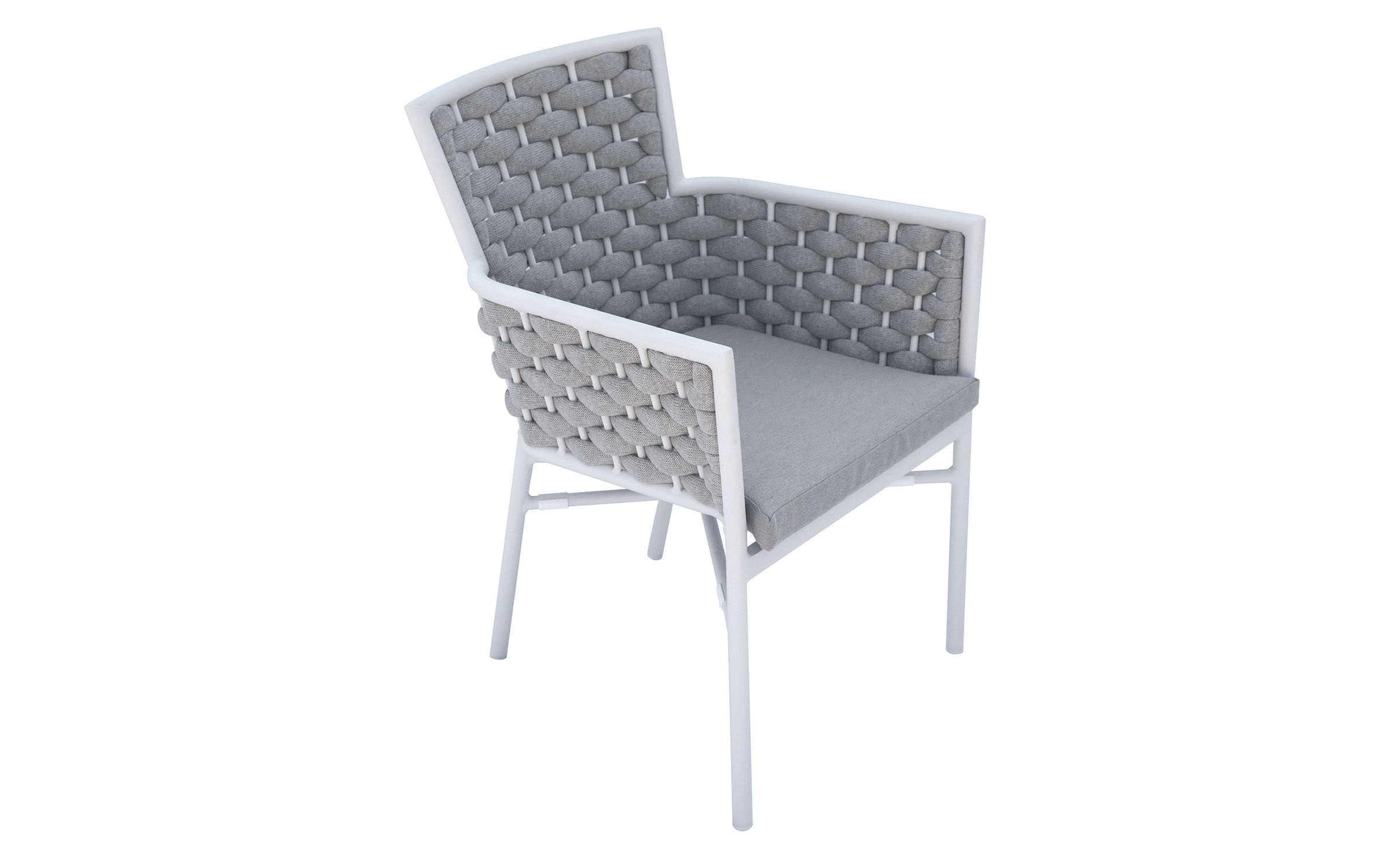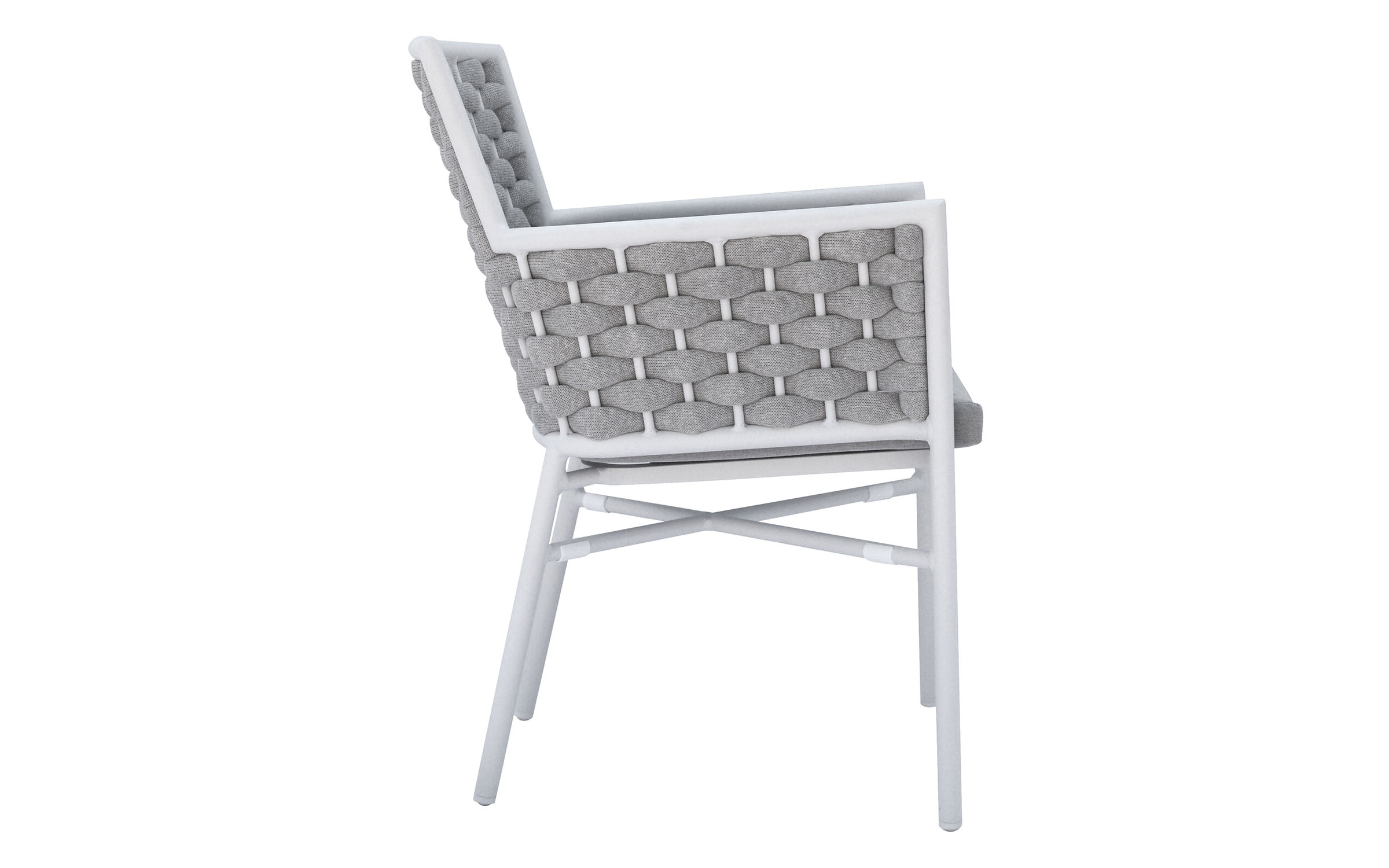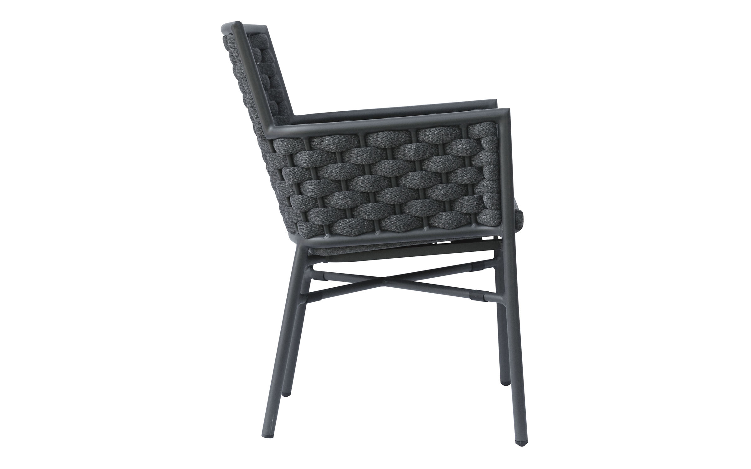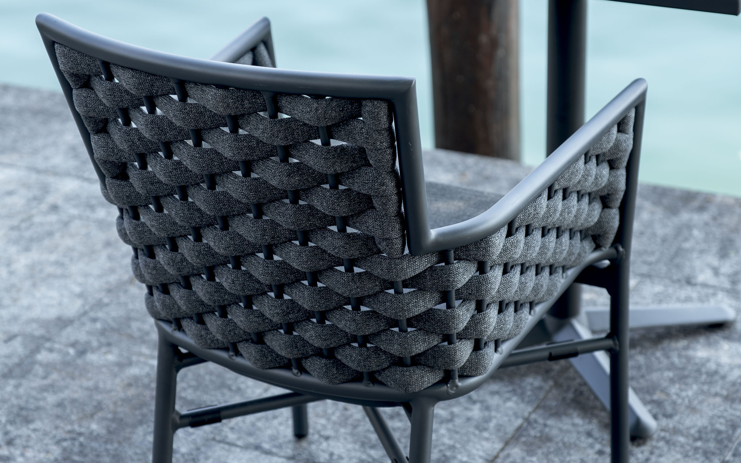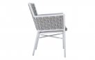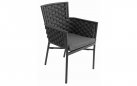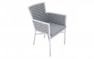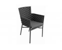 Krzesło sztaplowane do ogródków piwnych wykonane z aluminium z oplotem na bokach i oparciu z miękkich pasów olefinowego materiału z piankowym wypełnieniem.