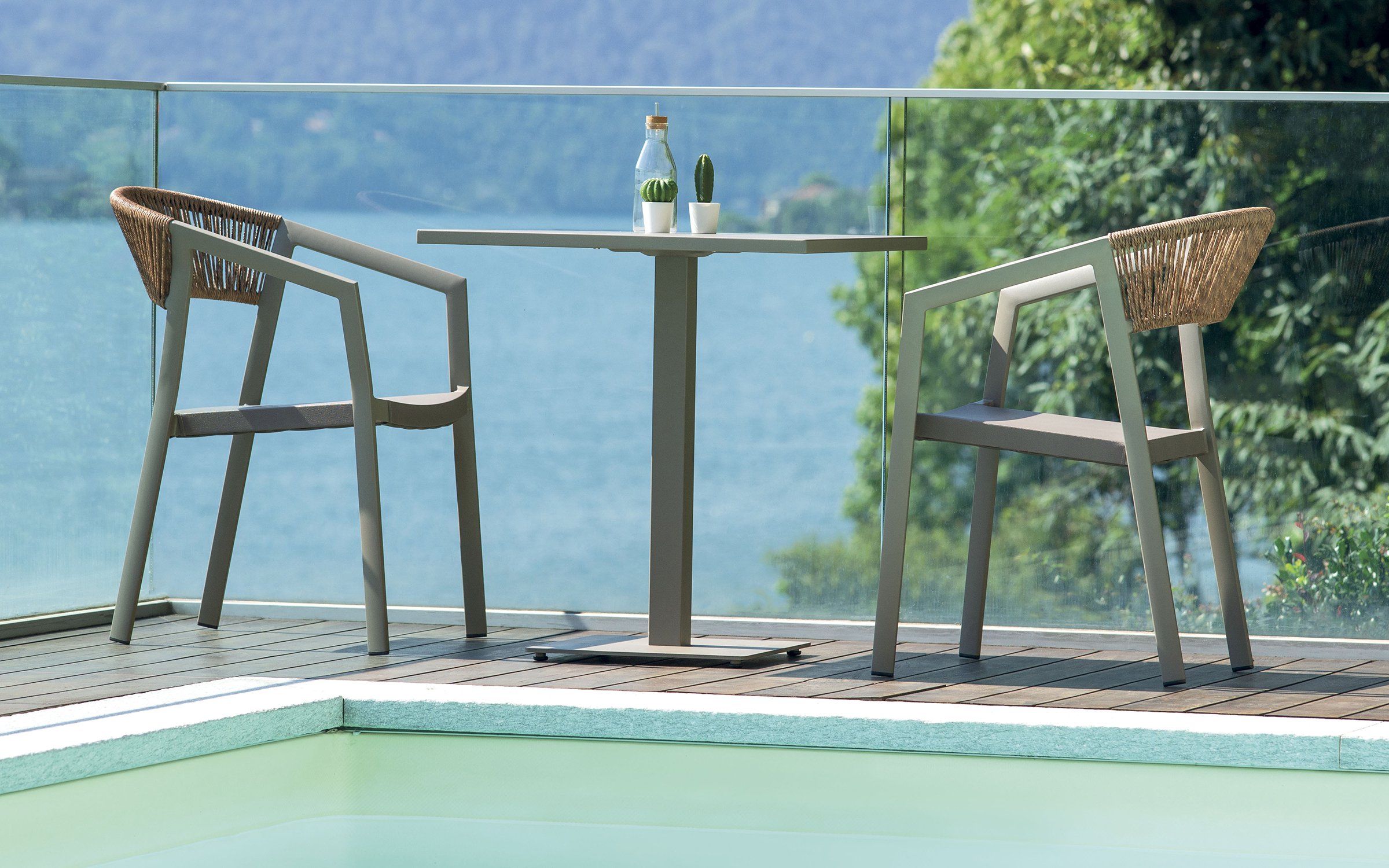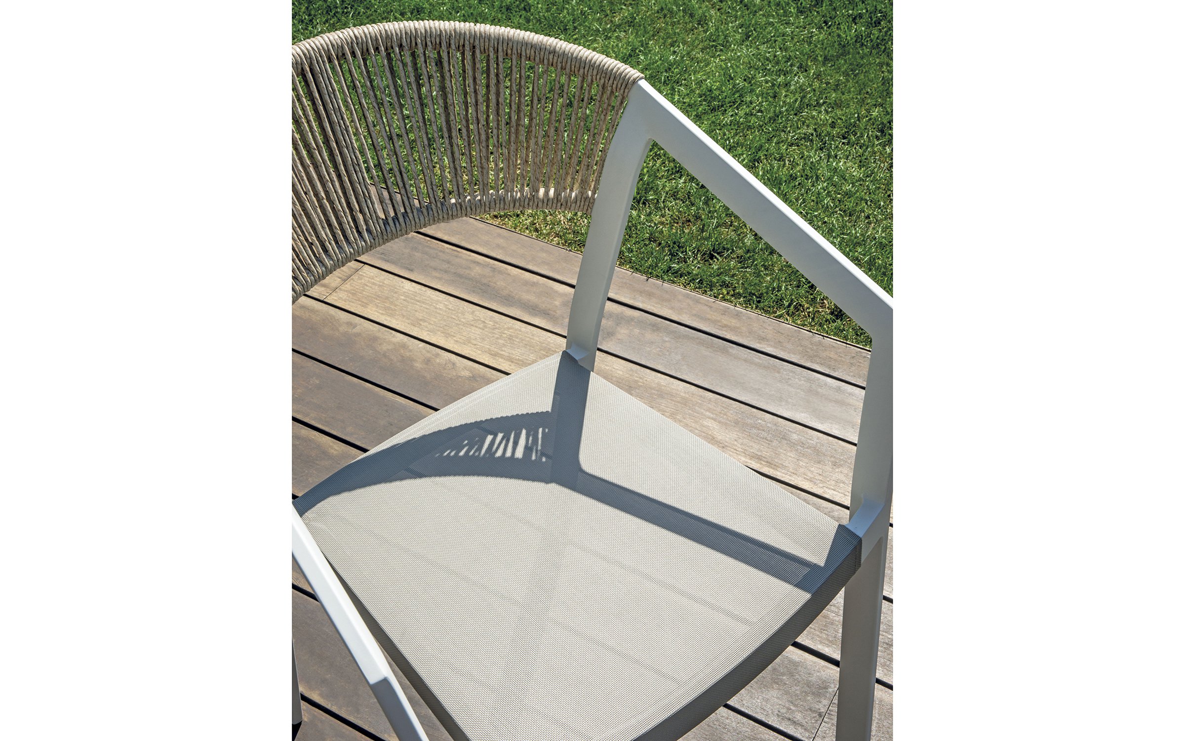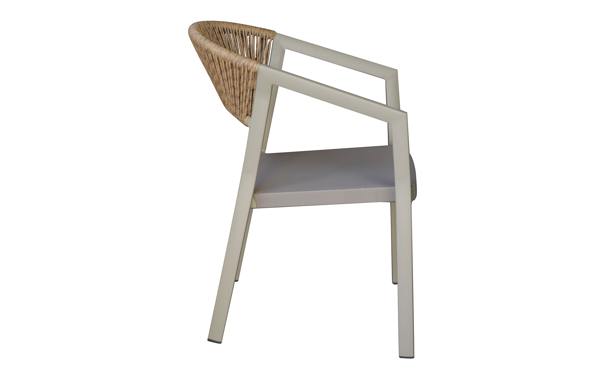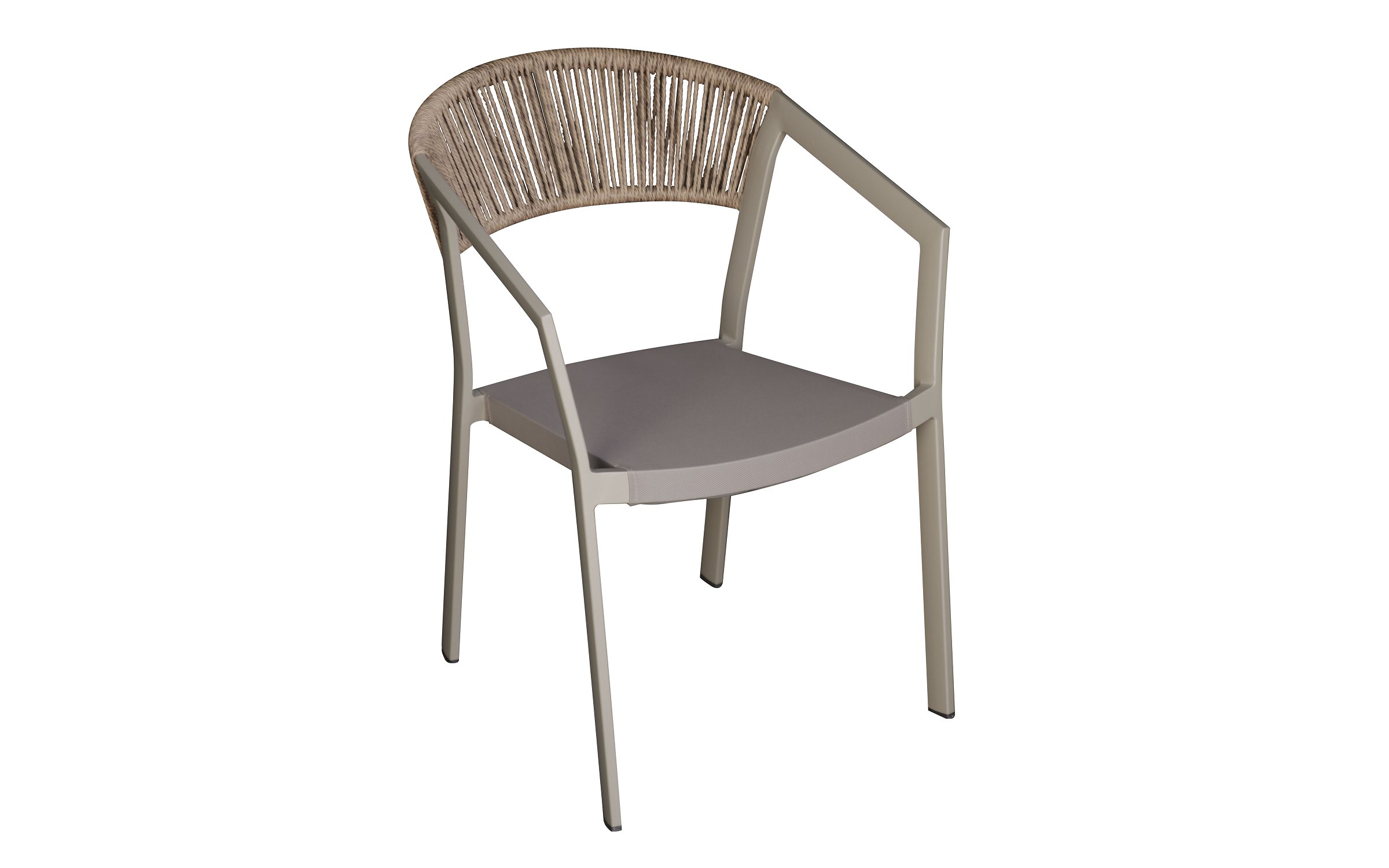Krzesło CAGLIARI to model kontraktowy przeznaczony do użytku zewnętrznego – idealne do ogrodów, tarasów, balkonów oraz przestrzeni horeca. Wykonane z aluminiowej rury Ø32×1,2 mm, z siedziskiem z textilene i oparciem z plecionki technorattanowej typu twist Ø5 mm. Konstrukcja jest sztaplowana, co ułatwia przechowywanie i transport.