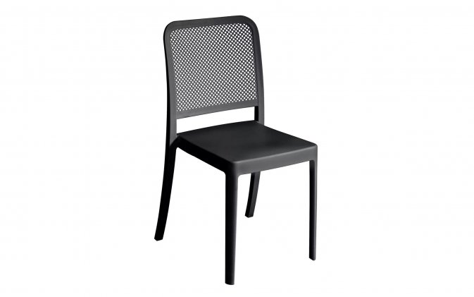 Sztaplowane krzesło wykonane z polipropylenu wzmocnionego włóknem szklanymi. Nowoczesna forma i wygodne siedzisko oraz materiały powodują, że może być użytkowana cały rok na zewnątrz. W całości wykonana z włókna szklanego oraz z żywicy syntetycznej (żywica polipropylenowa z dodatkami zabezpieczającymi przed promieniowaniem UV, barwiona w masie). Sztaplowane.
