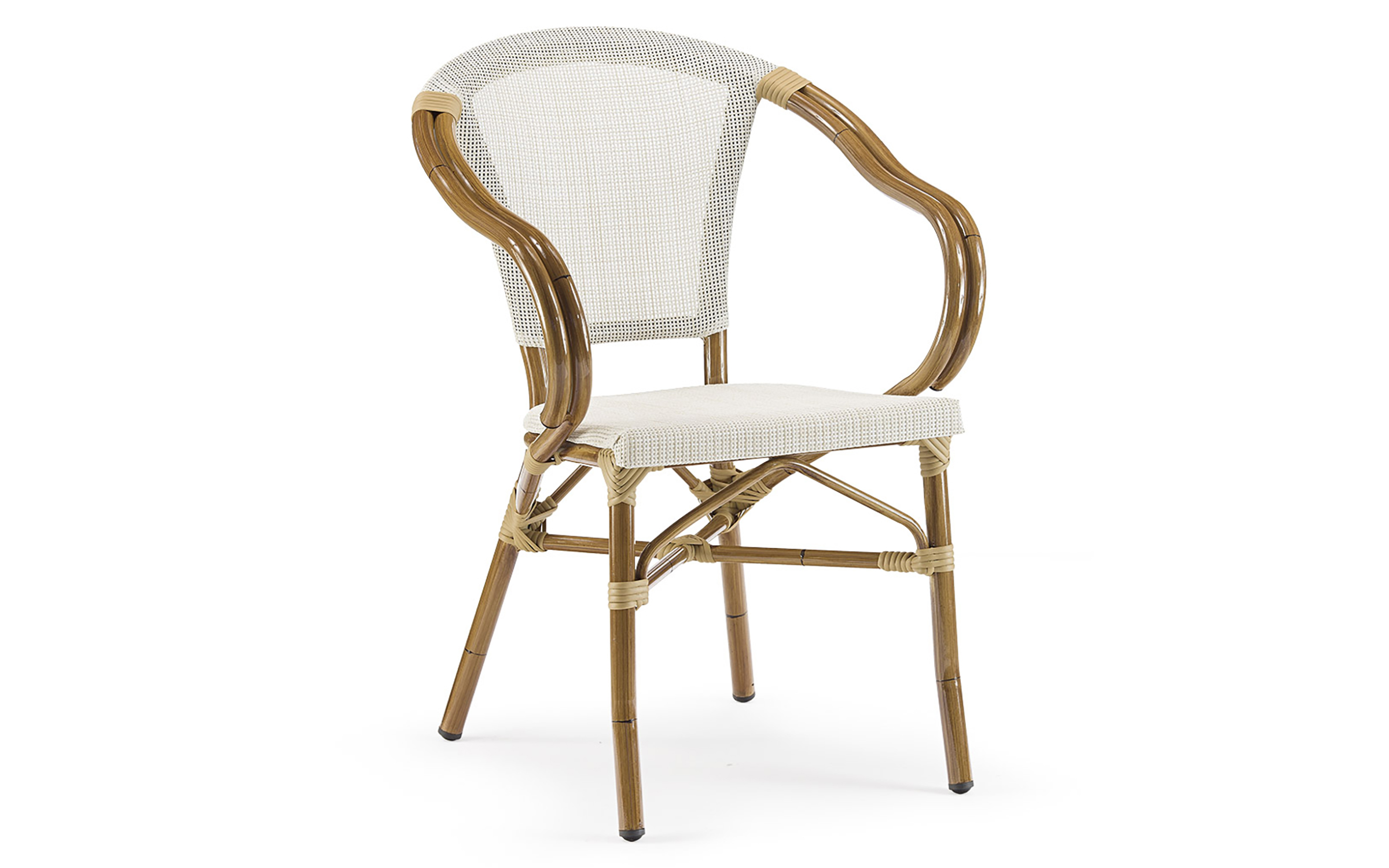 Grattoni GS 950/B – Aluminiowa trwałość w bambusowym wydaniu Model GS 950/B to inteligentna odpowiedź na potrzeby nowoczesnych tarasów. Kluczowym elementem tego fotela jest aluminiowy stelaż, który dzięki specjalnej technice malowania imituje teksturę bambusa, zachowując przy tym lekkość i pełną odporność na korozję. Siedzisko i oparcie wykonano z wysokiej jakości tekstylenu w neutralnym, beżowym kolorze, co gwarantuje przewiewność i łatwość w czyszczeniu. To idealny wybór dla osób szukających mebli w stylu eko, które jednocześnie są praktyczne i dają się wygodnie sztaplować.