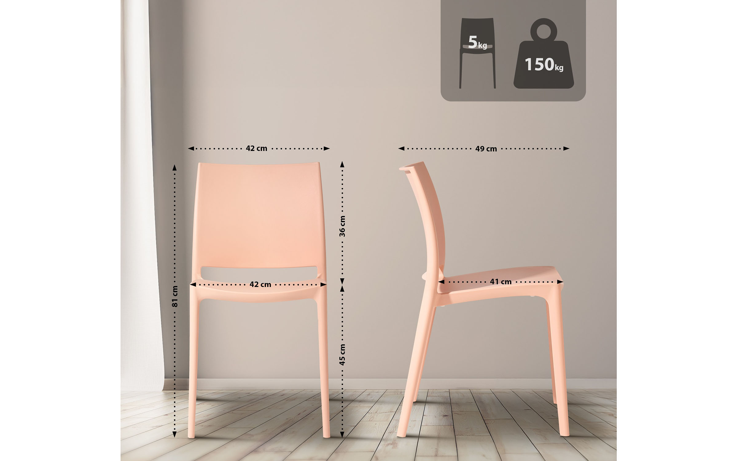 Wykonane z wysokiej jakości tworzywa sztucznego odpornego na promieniowanie UV, krzesła Meton imponują odpornością na warunki atmosferyczne. Oznacza to, że można je stosować nie tylko wewnątrz pomieszczeń, ale także na zewnątrz. Krzesła te świetnie sprawdzą się także jako krzesła ogrodowe, na taras czy balkon.