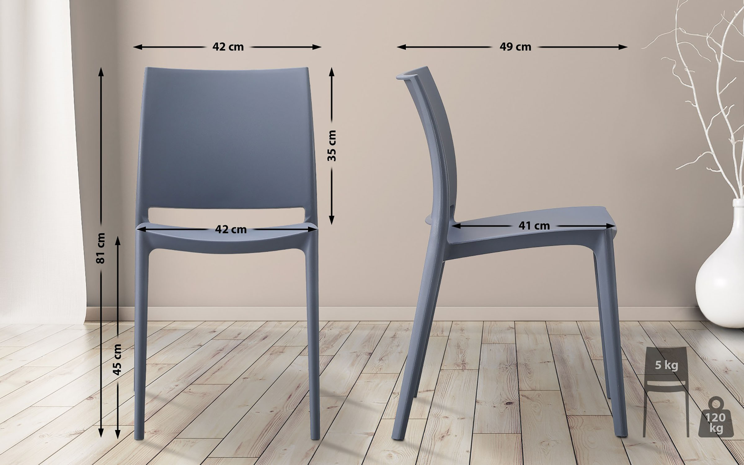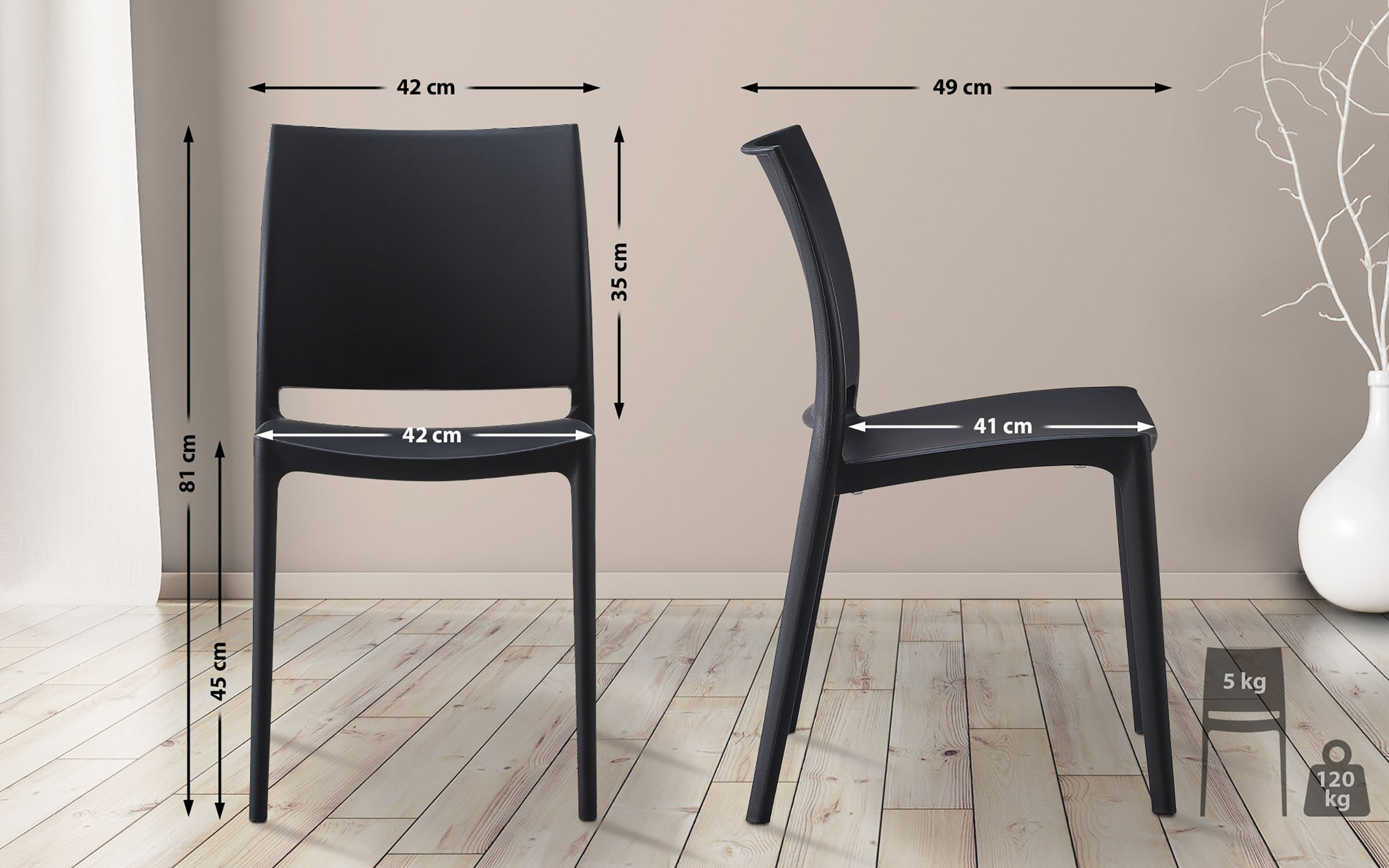 Konstrukcja umożliwiająca układanie w stosy pozwala zaoszczędzić miejsce podczas przechowywania. Dzięki ergonomicznie zakrzywionemu oparciu możesz cieszyć się wysokim komfortem siedzenia, nawet bez tapicerki. Wygląd krzeseł sztaplowanych jest prosty i rygorystyczny. Dlatego ten zestaw 2 sztuk harmonijnie pasuje do każdego otoczenia.