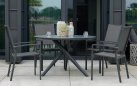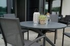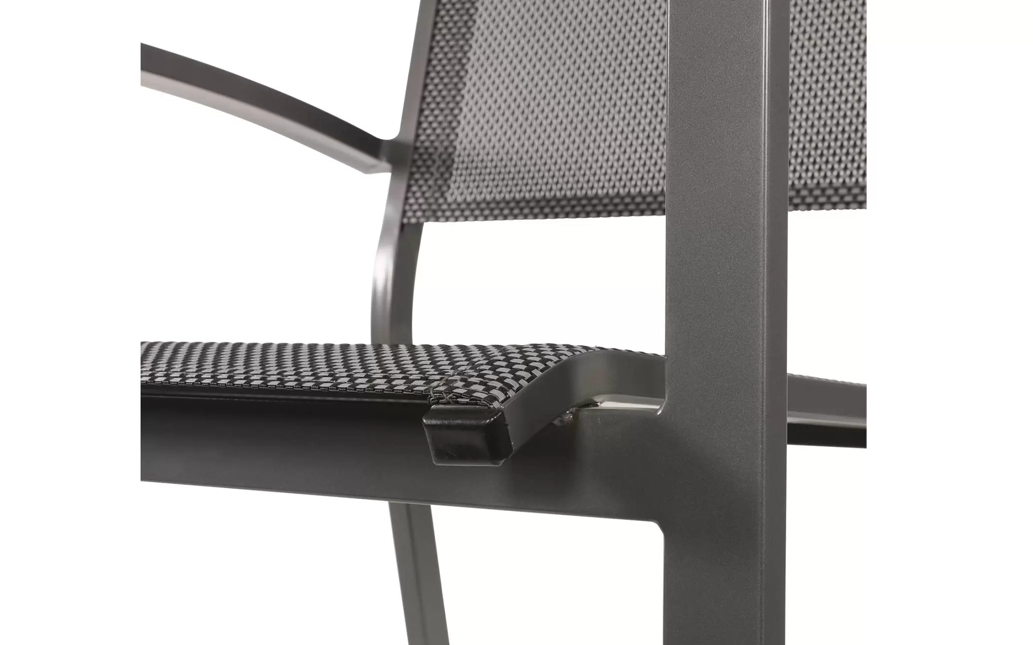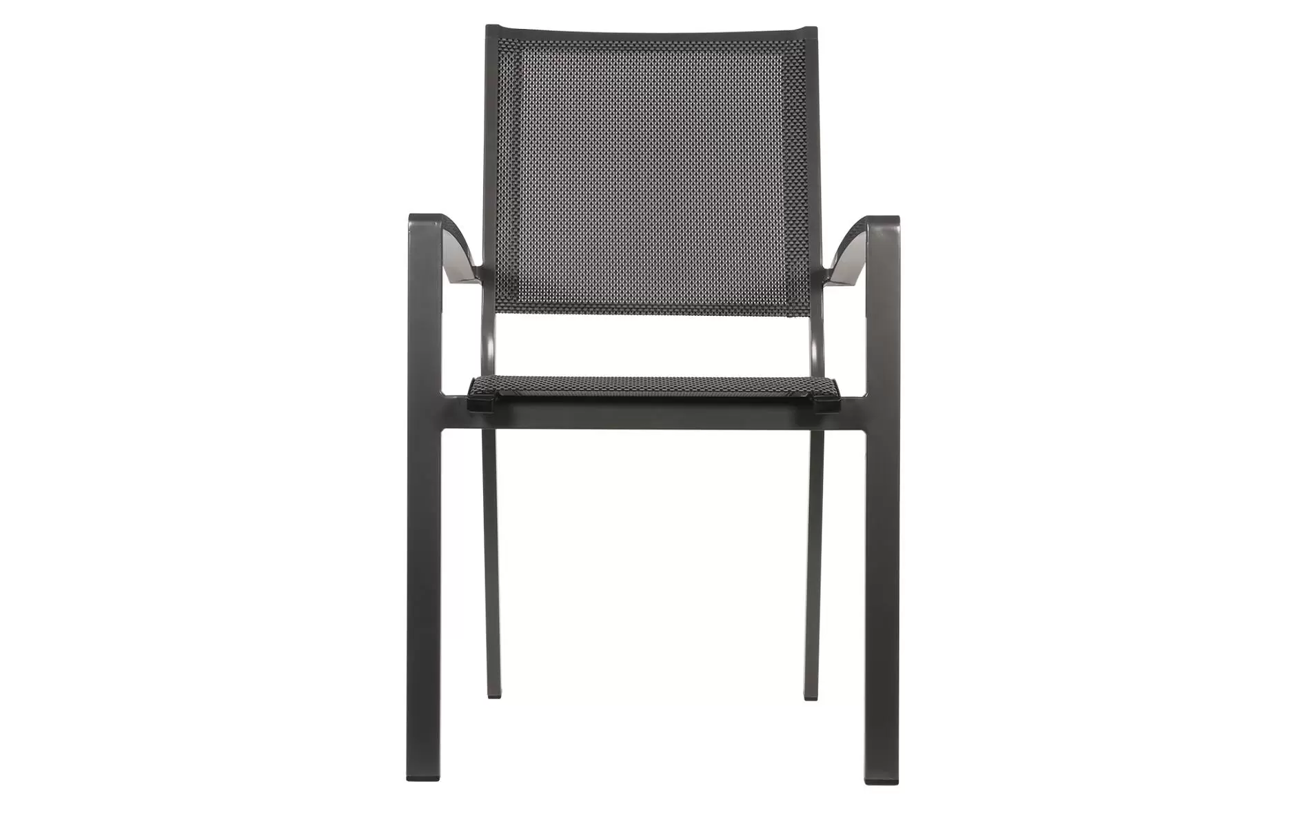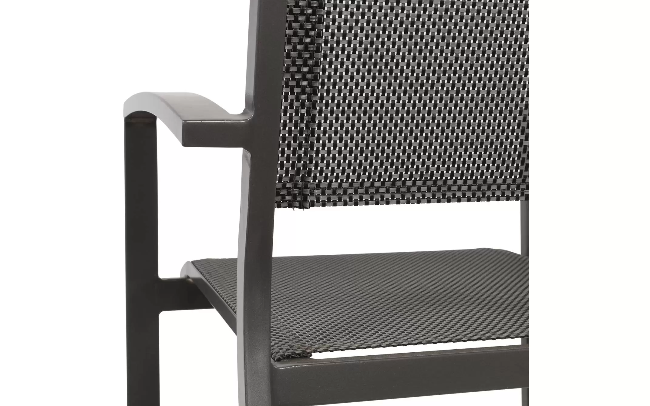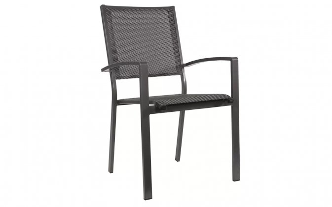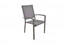 Krzesło ogrodowe sztaplowane z podłokietnikami z aluminium.