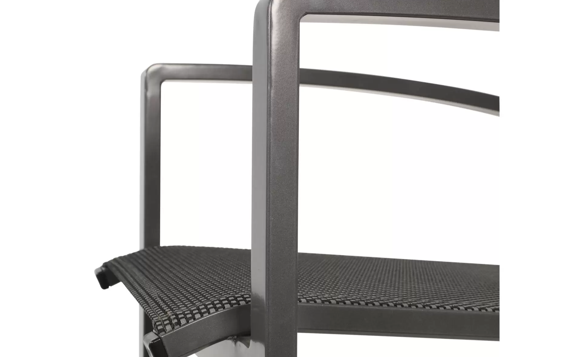 Krzesła aluminiowe z siedziskiem i oparciem z tekstyliny. Wersja podłokietników aluminiowa.