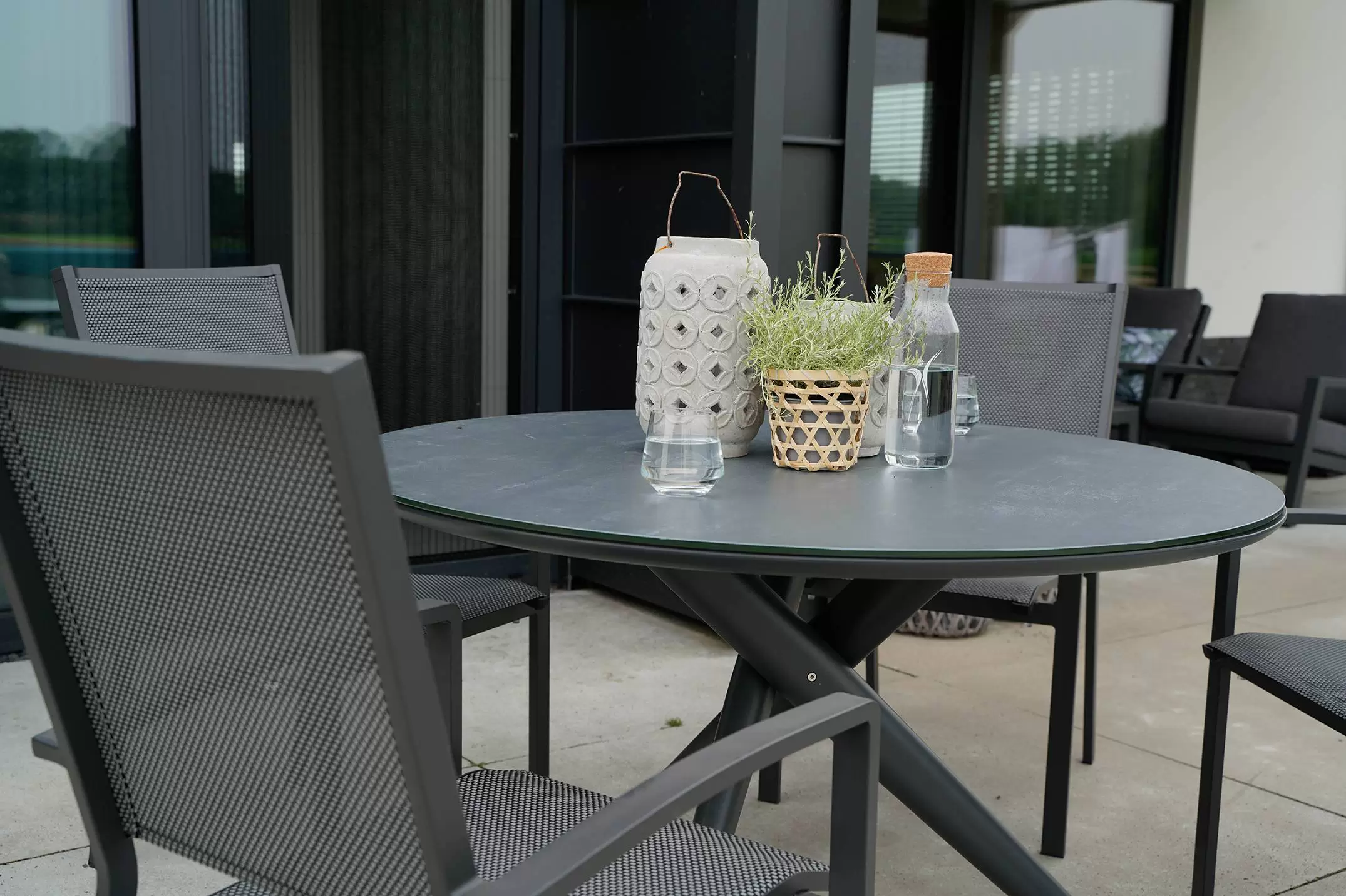 Aluminiowa konstrukcja malowana proszkowo na kolor grafitowy lub taupe.