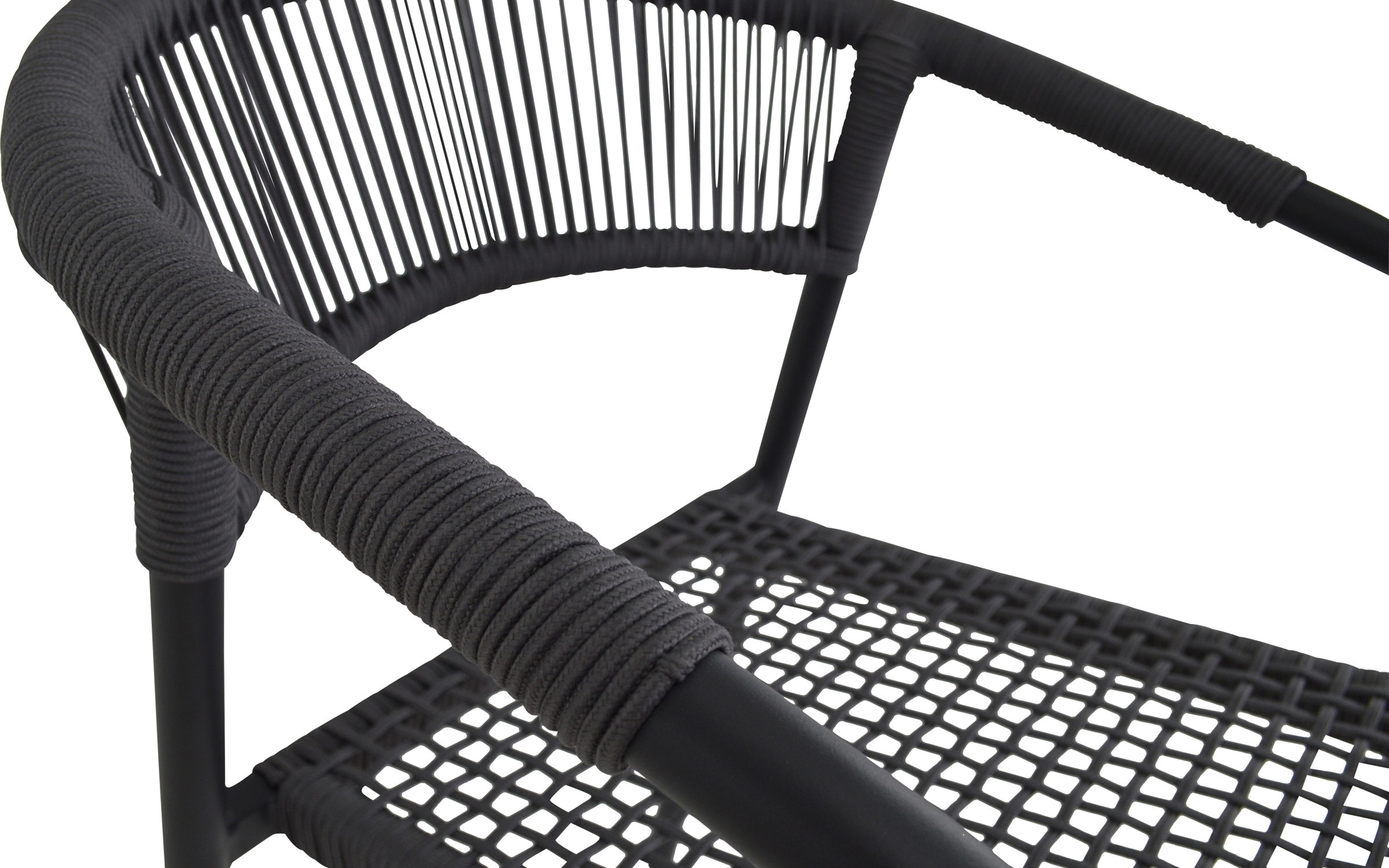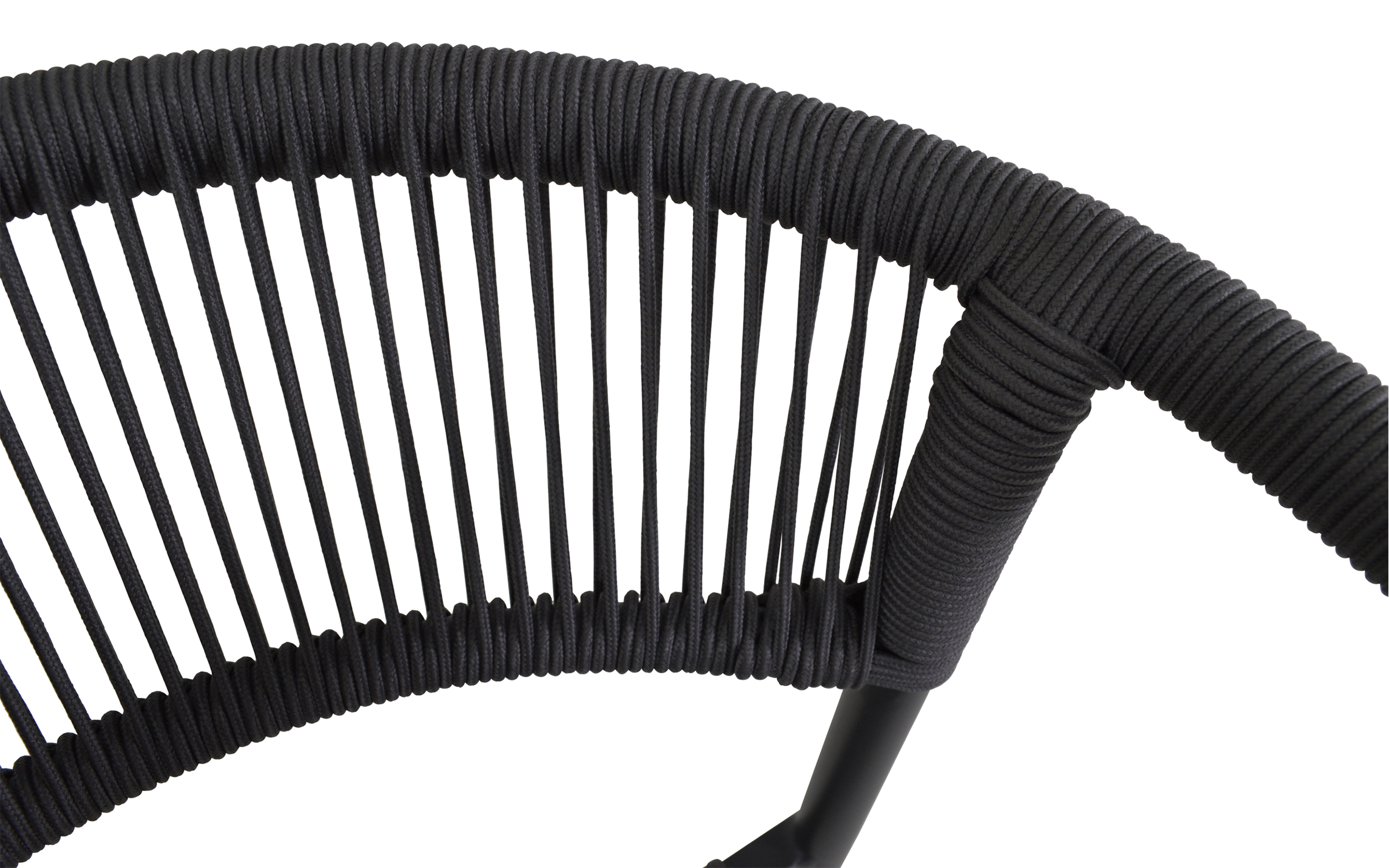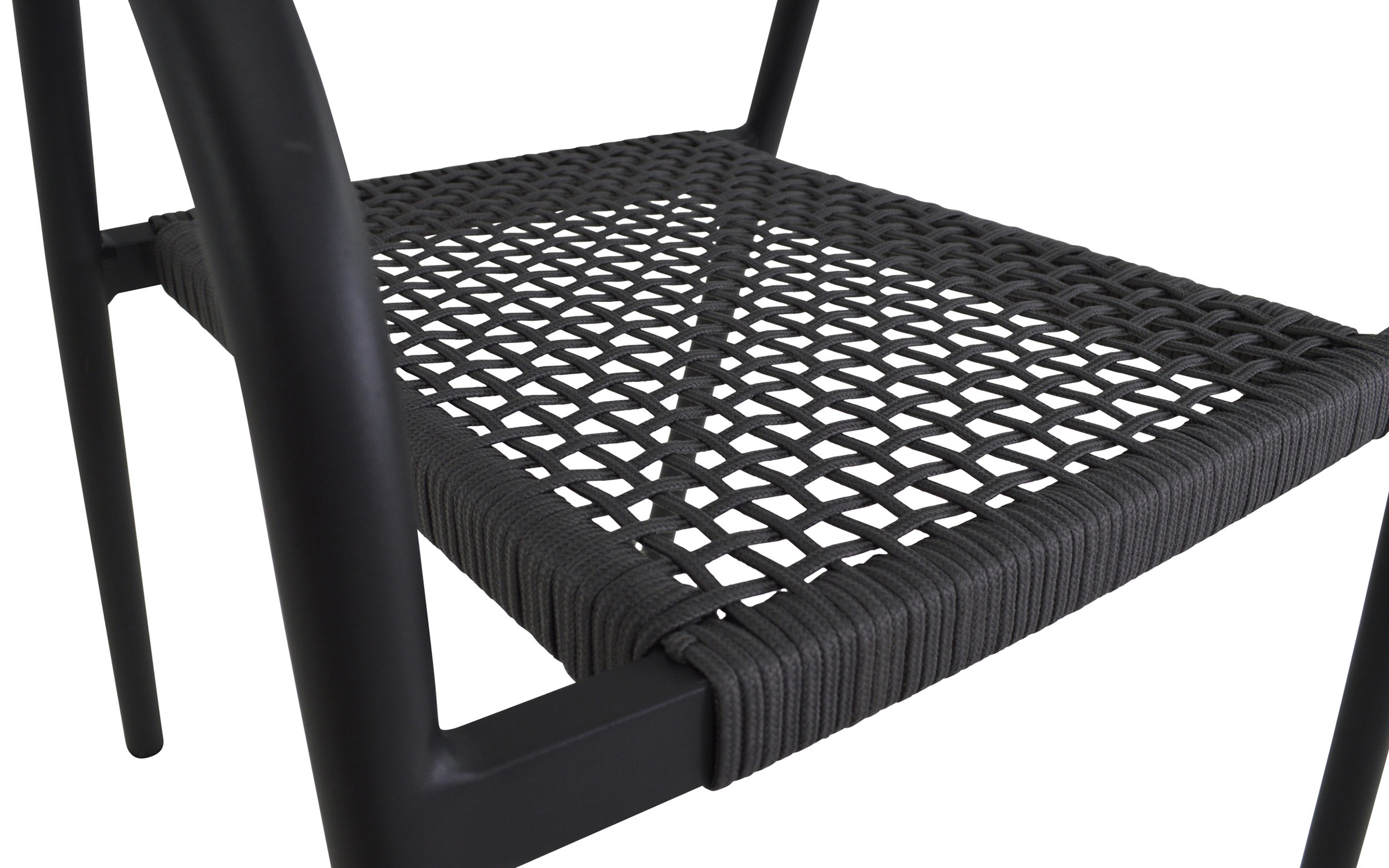 - Komfort: ergonomiczne siedzisko i oparcie oplecione liną polipropylenową