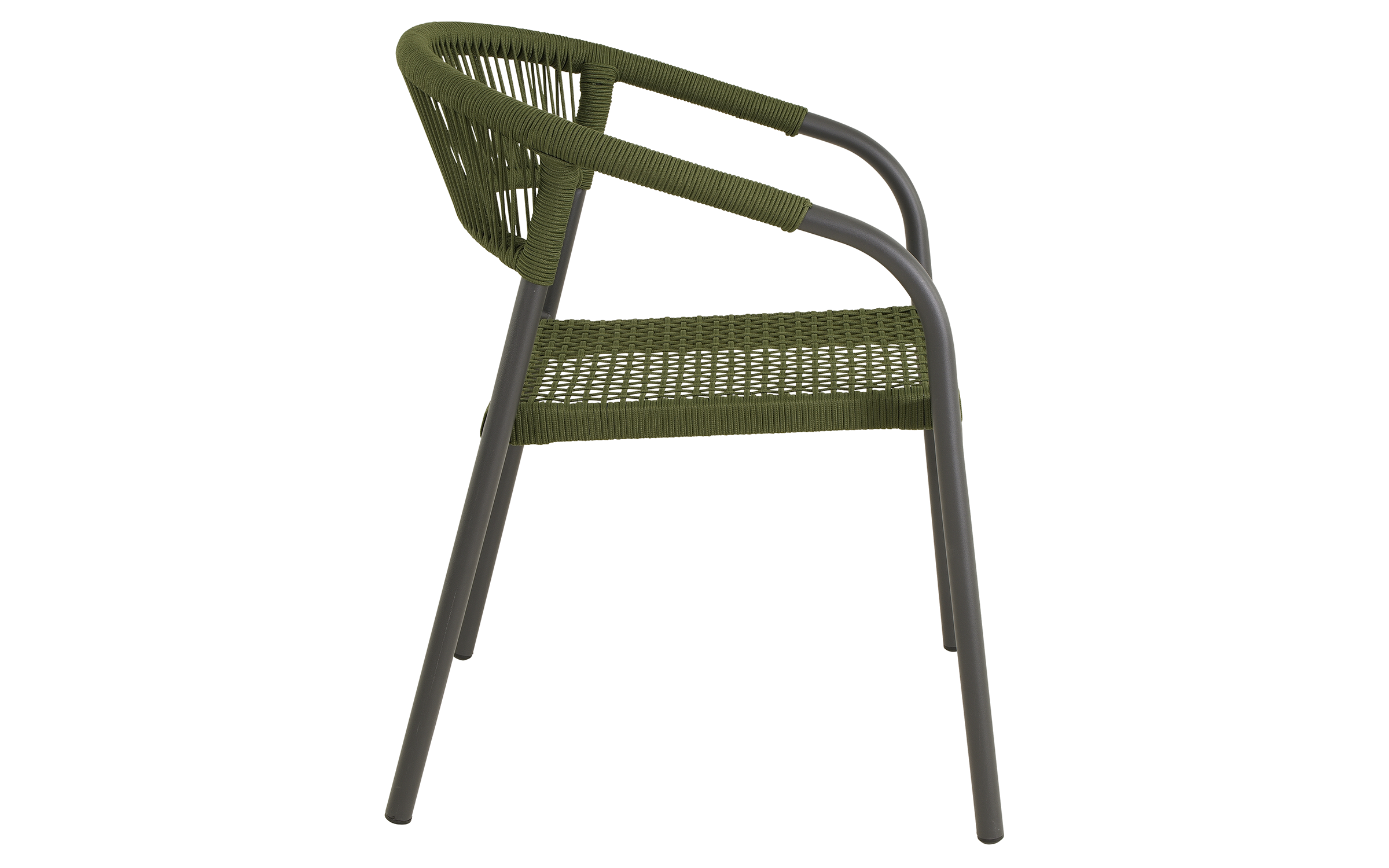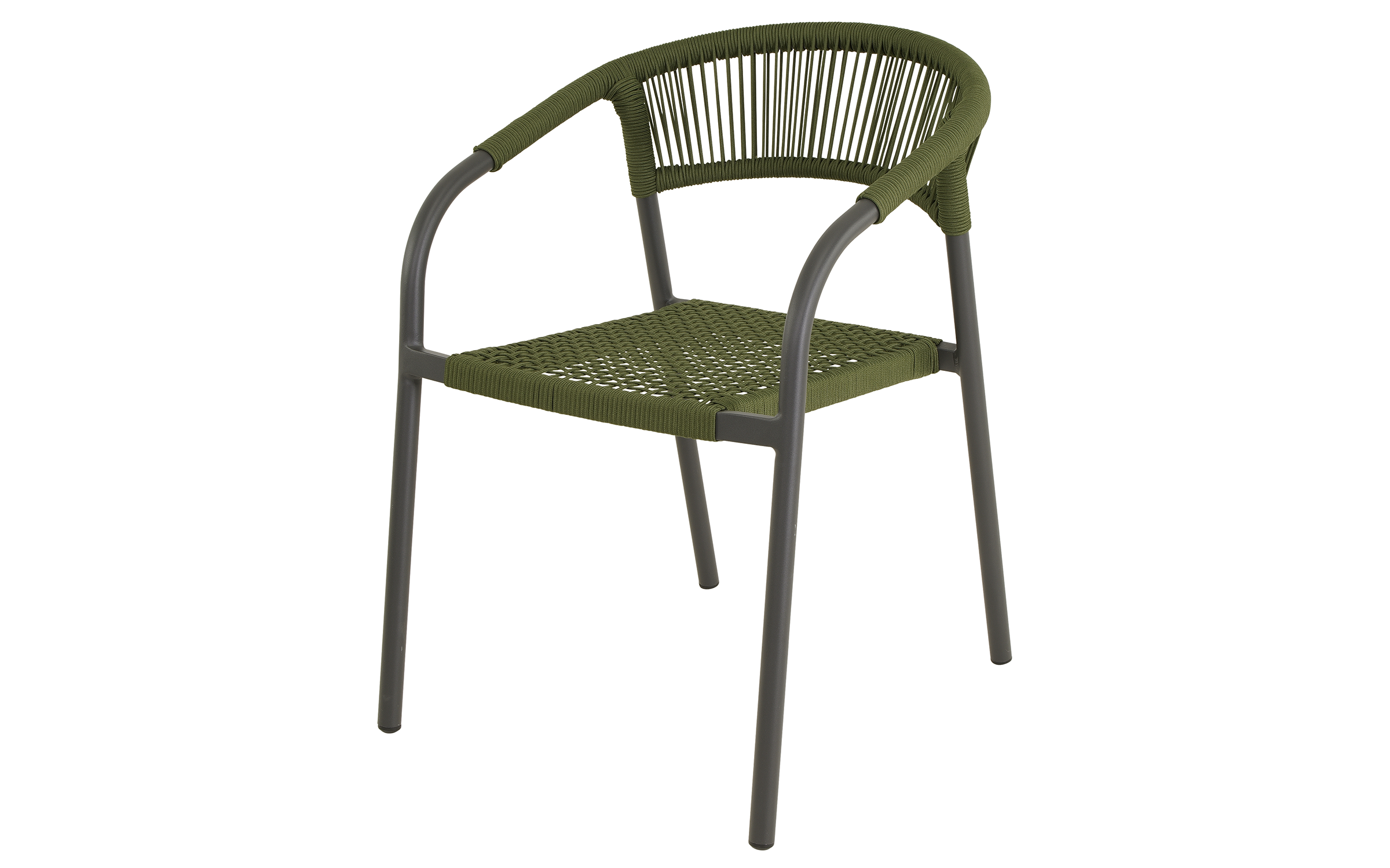 Siedzisko i Oparcie: lina polipropylenowa śr. 4 mm w kolorach szarym, zielonym i beżowym – odporna na warunki atmosferyczne.