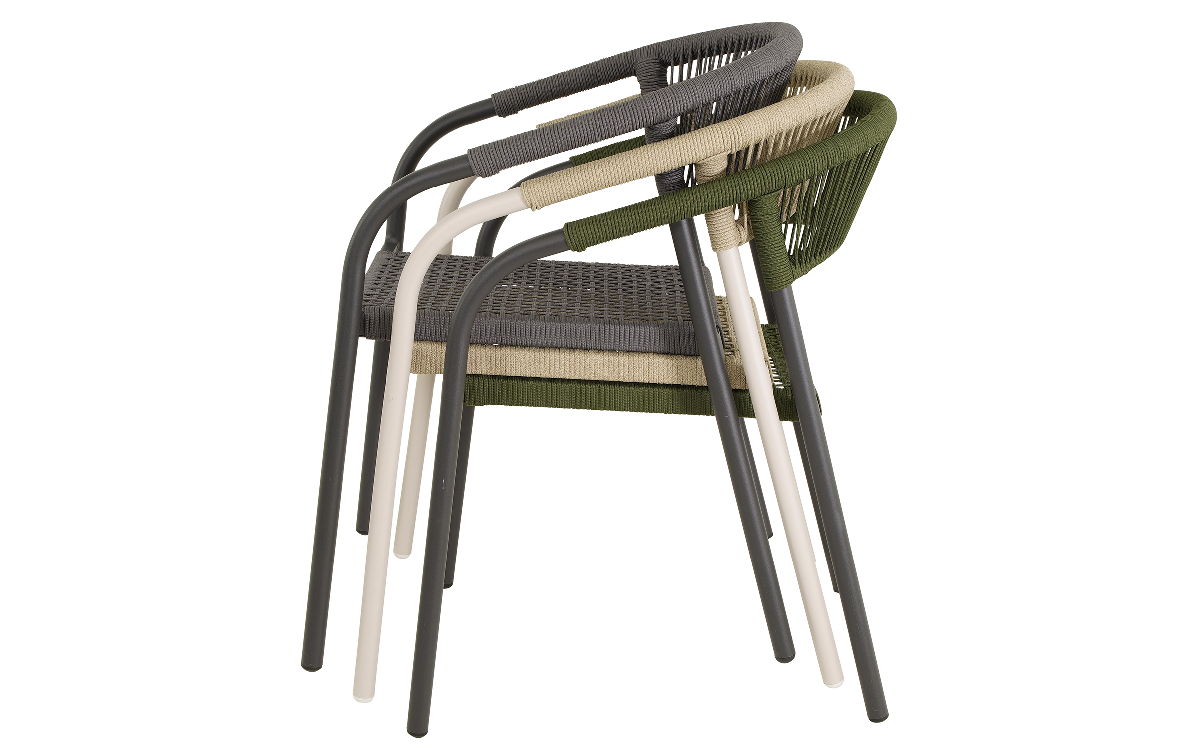 2x NAGANO Krzesło ogrodowe sztaplowane aluminium i lina polipropylenowa