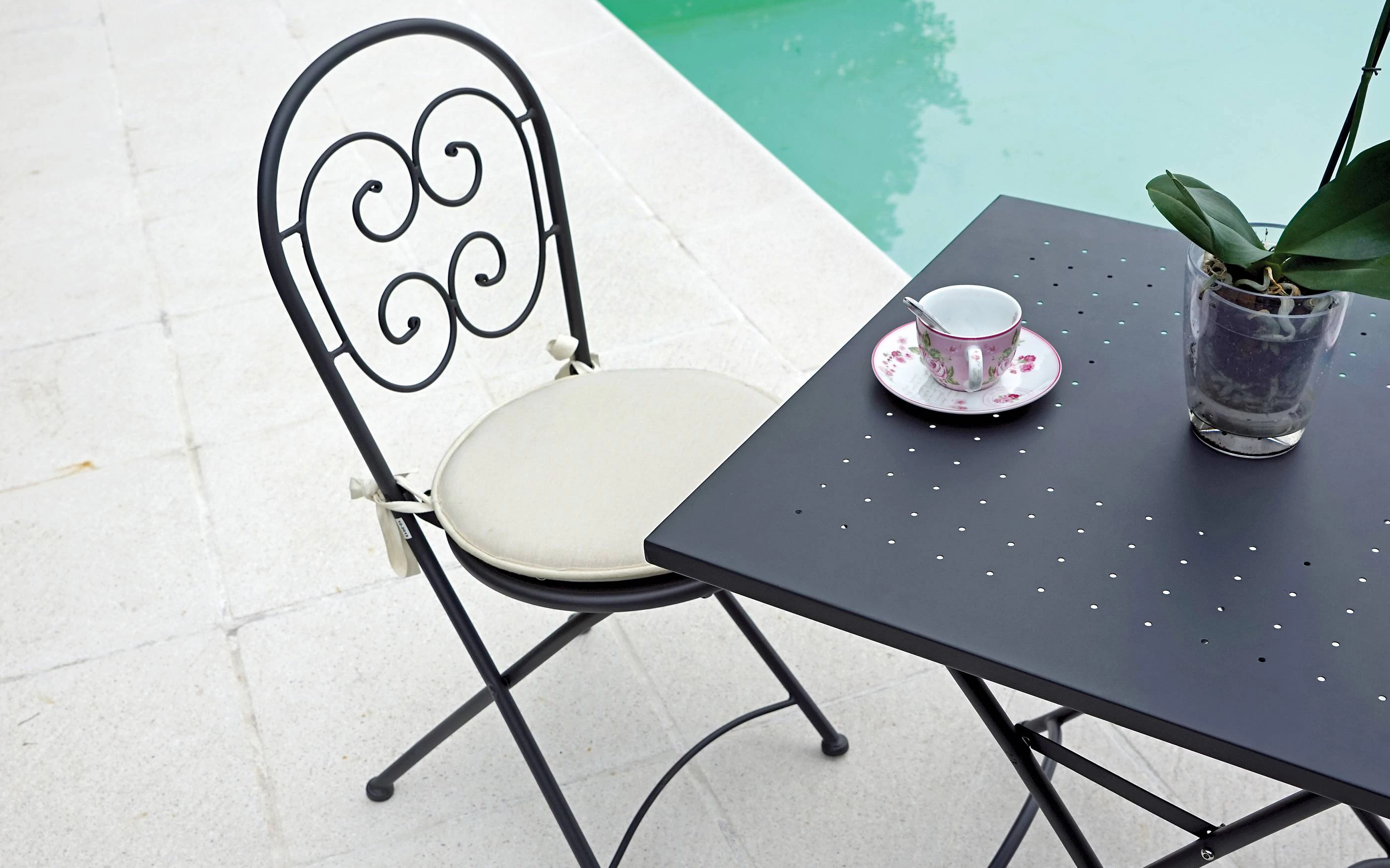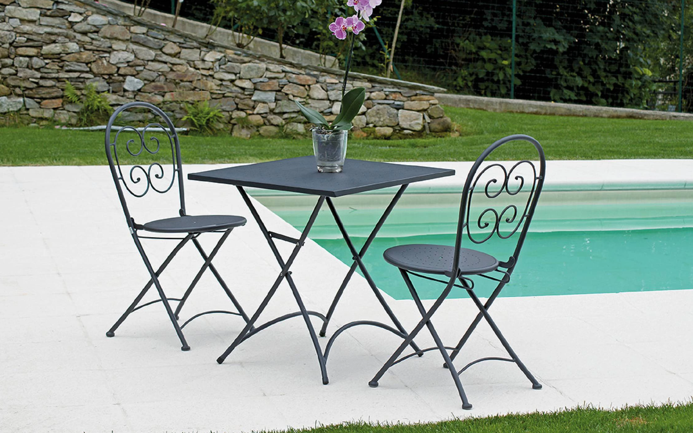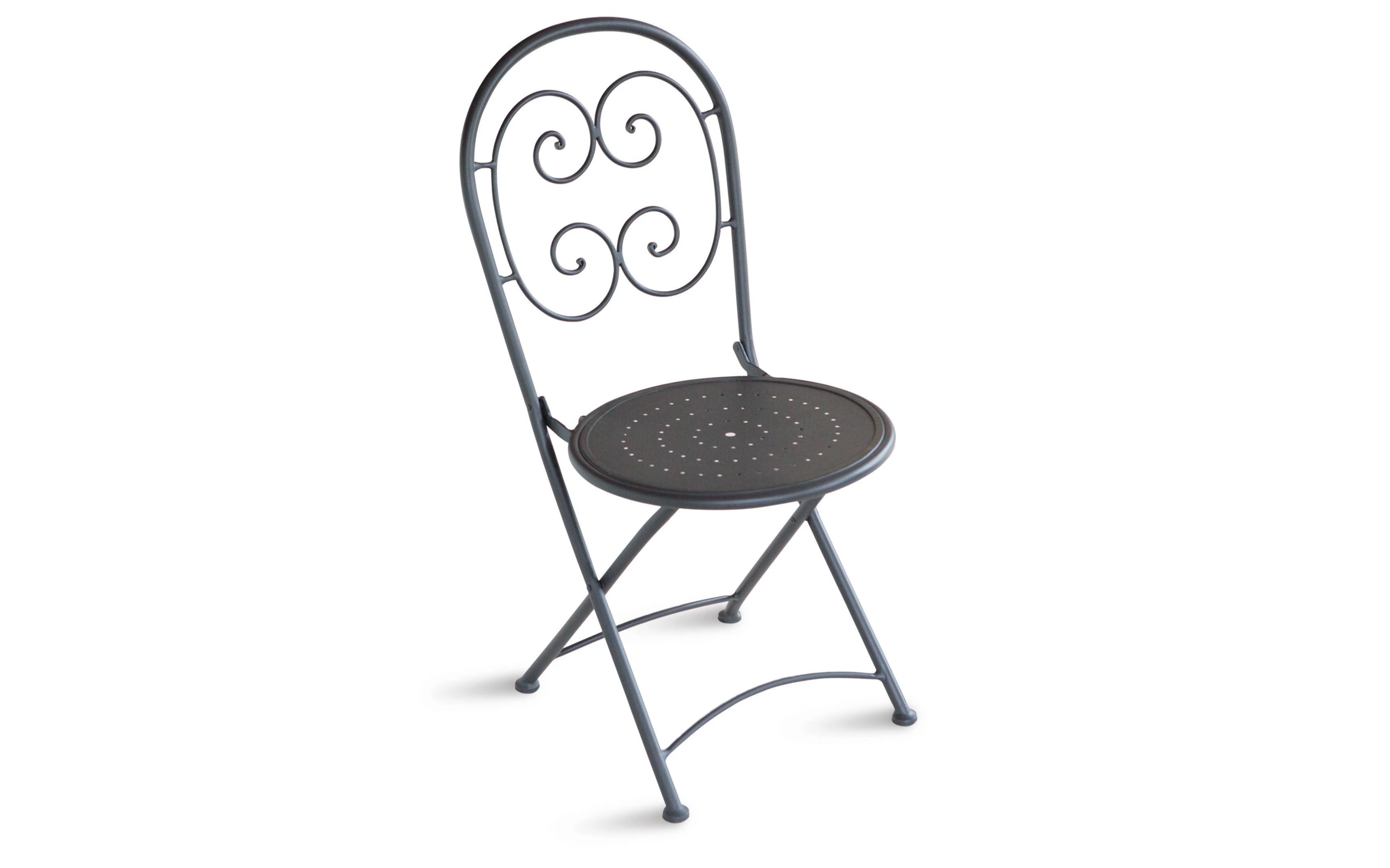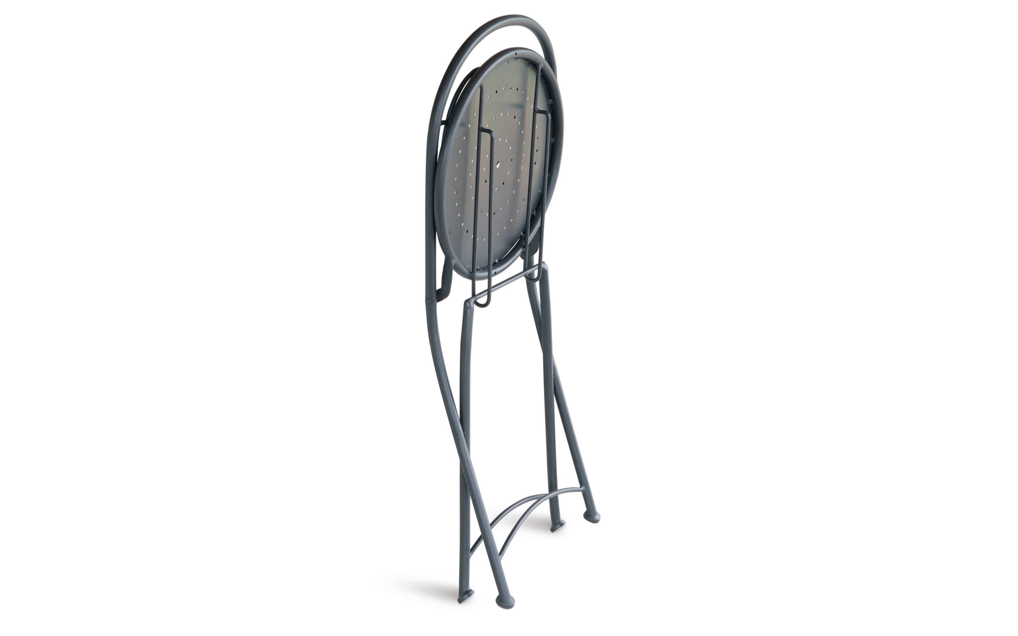 Praktyczne krzesło ogrodowe, wykonane z trwałej stali z powłoką antykorozyjną malowaną proszkowo. Idealne do użytku na tarasie, balkonie lub w ogrodzie. Składana konstrukcja pozwala na łatwe przechowywanie i transport. Kolor antracytowy pasuje do nowoczesnych aranżacji zewnętrznych.