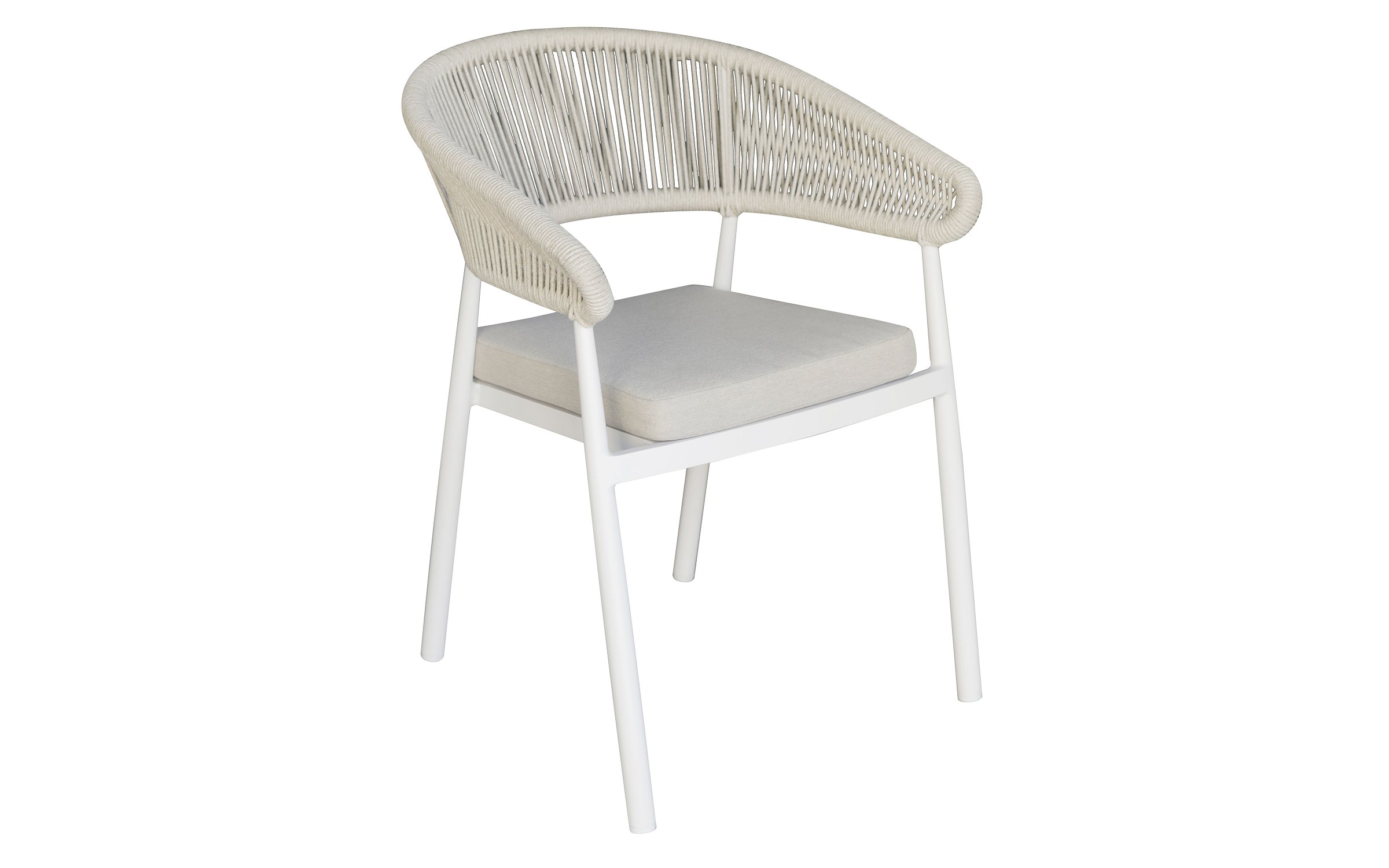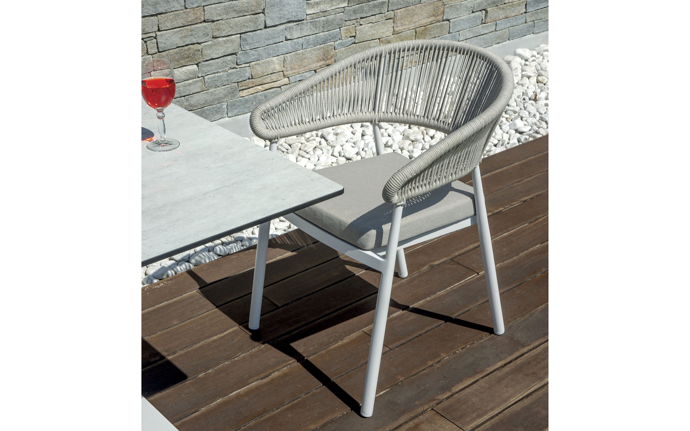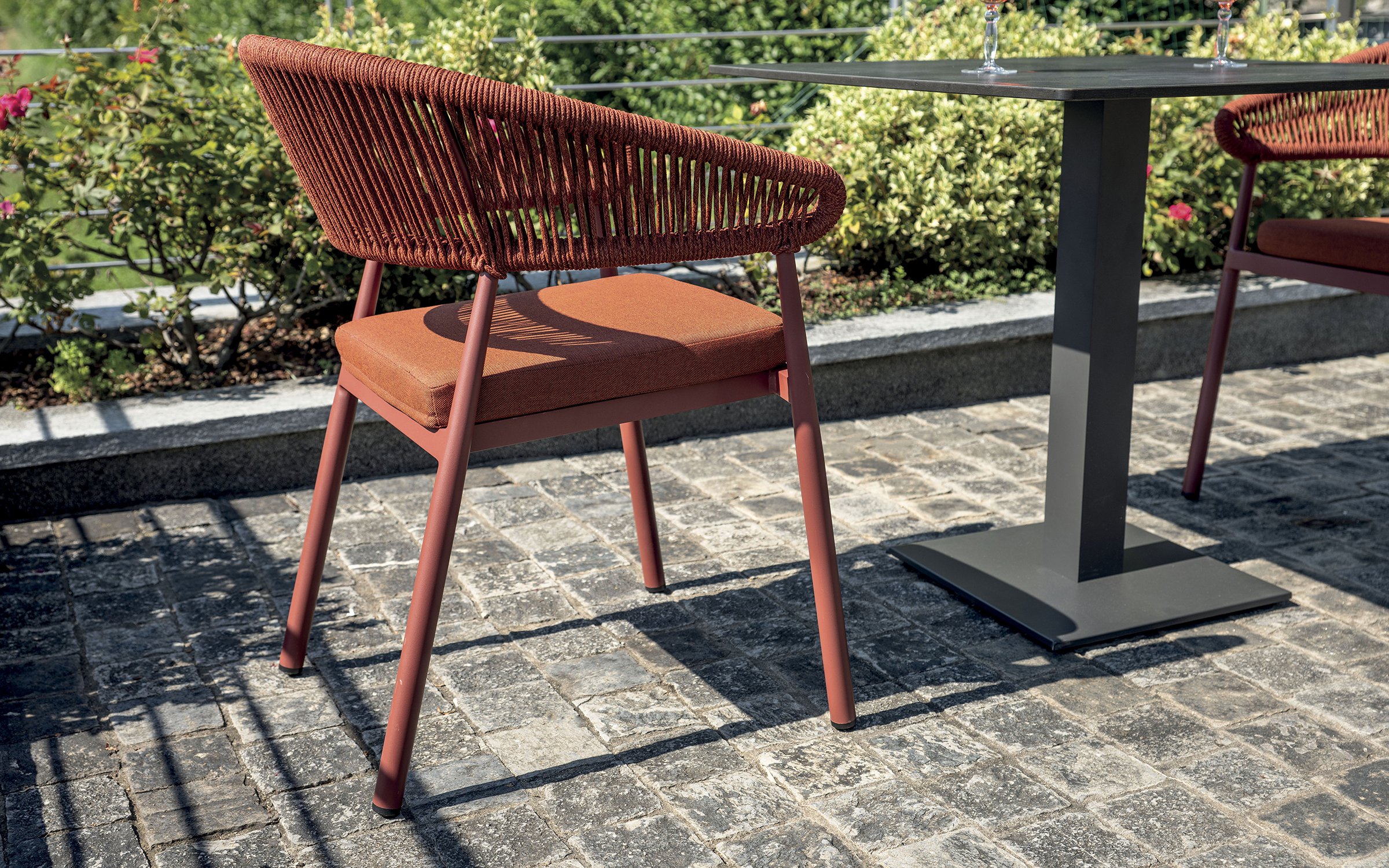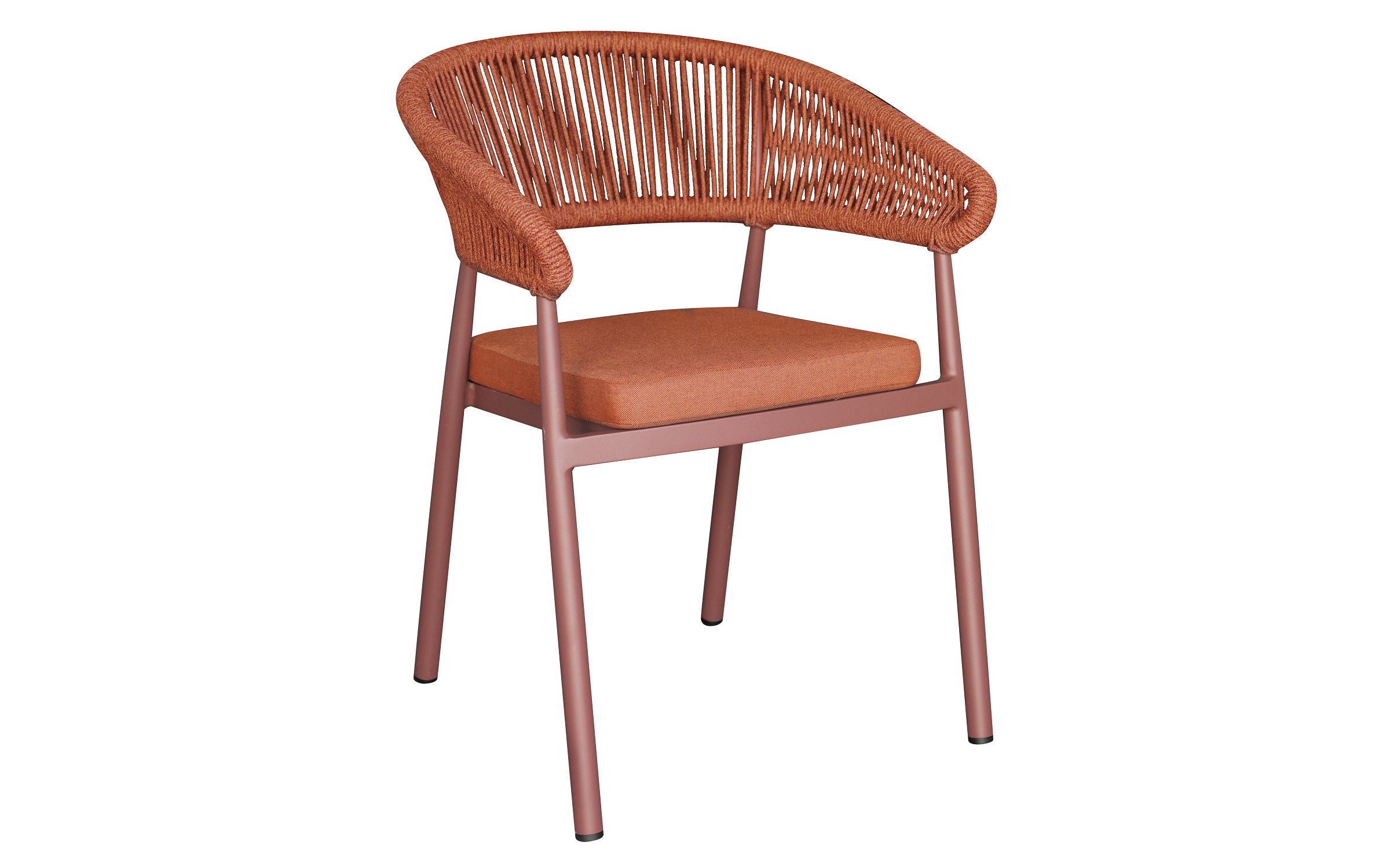 Krzesło PERUGIA to model kontraktowy przeznaczony do użytku zewnętrznego – idealne do ogrodów, tarasów, balkonów oraz przestrzeni horeca. Wykonane z aluminiowej rury Ø32×1,2 mm, z oparciem z liny syntetycznej oraz siedziskiem z aluminiowych listew z poduszką. Konstrukcja jest sztaplowana, co ułatwia przechowywanie i transport.