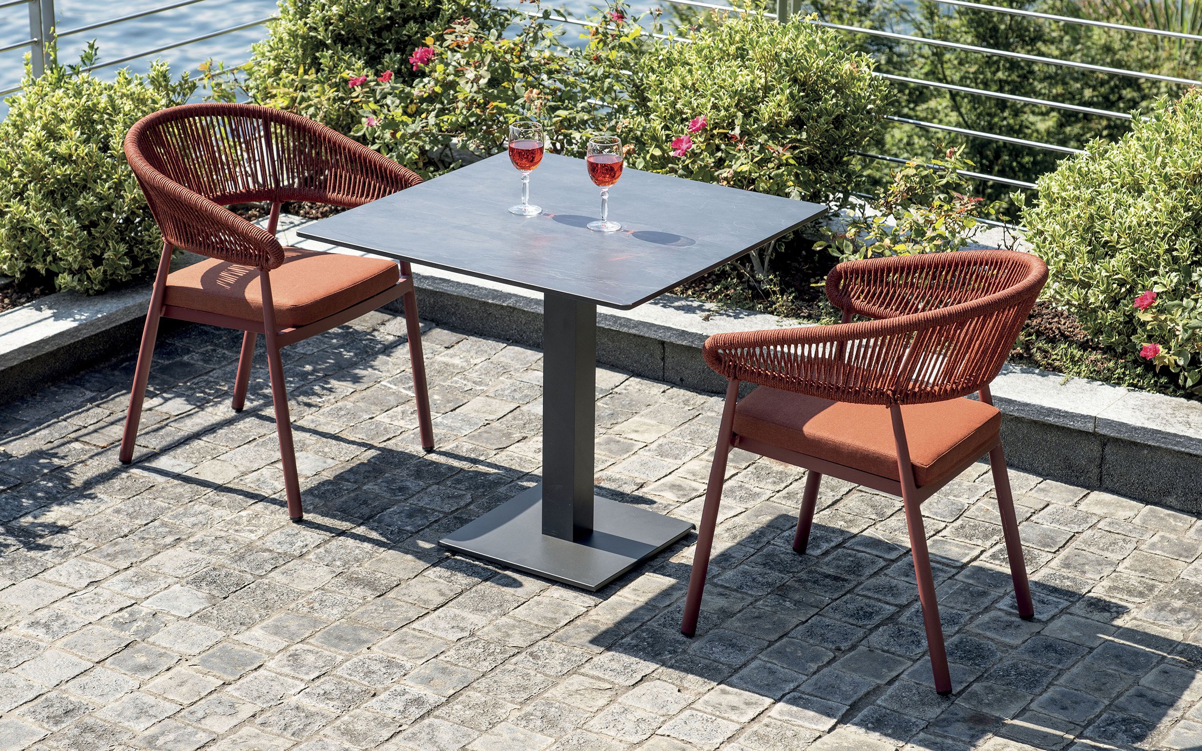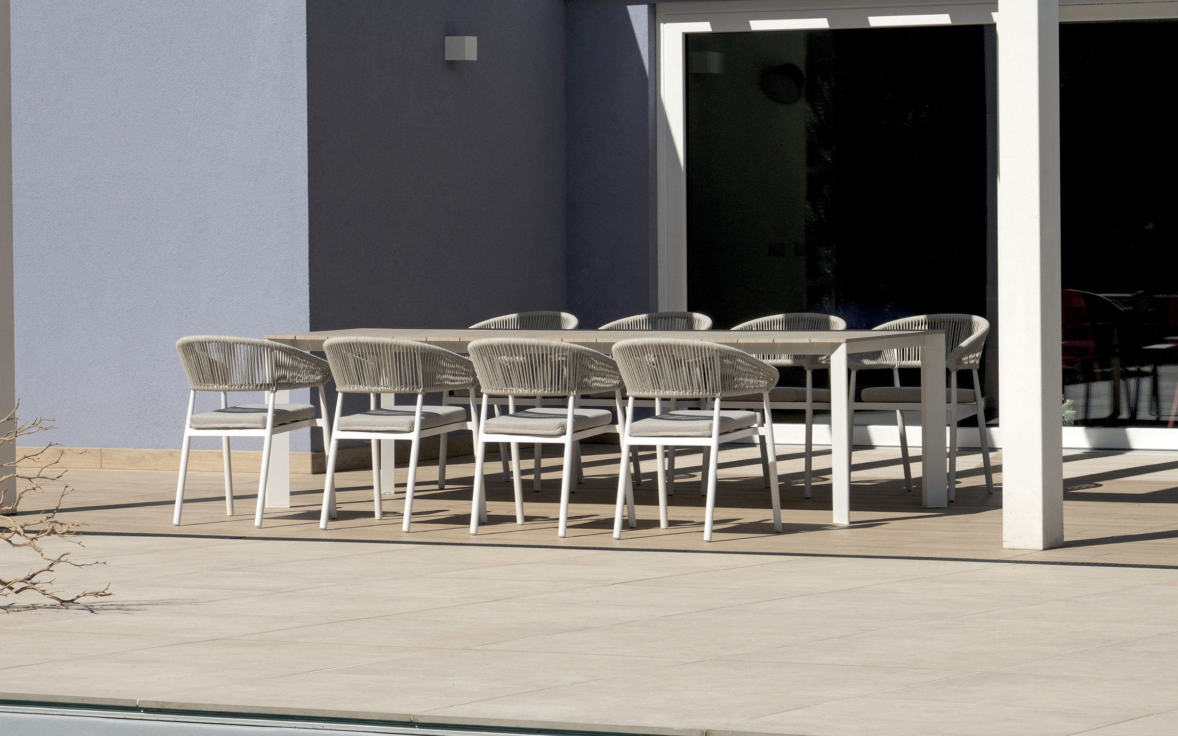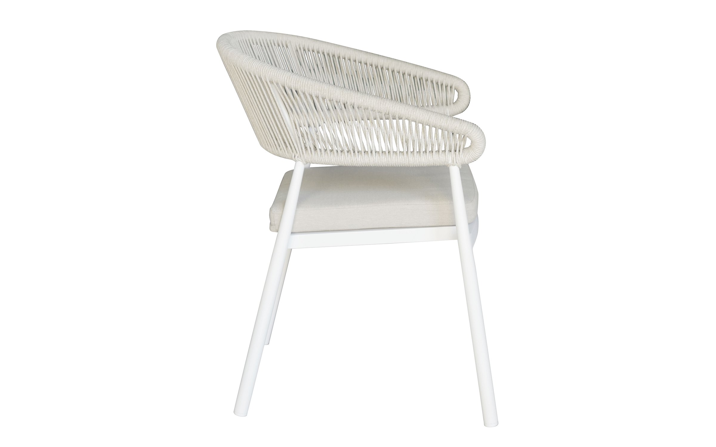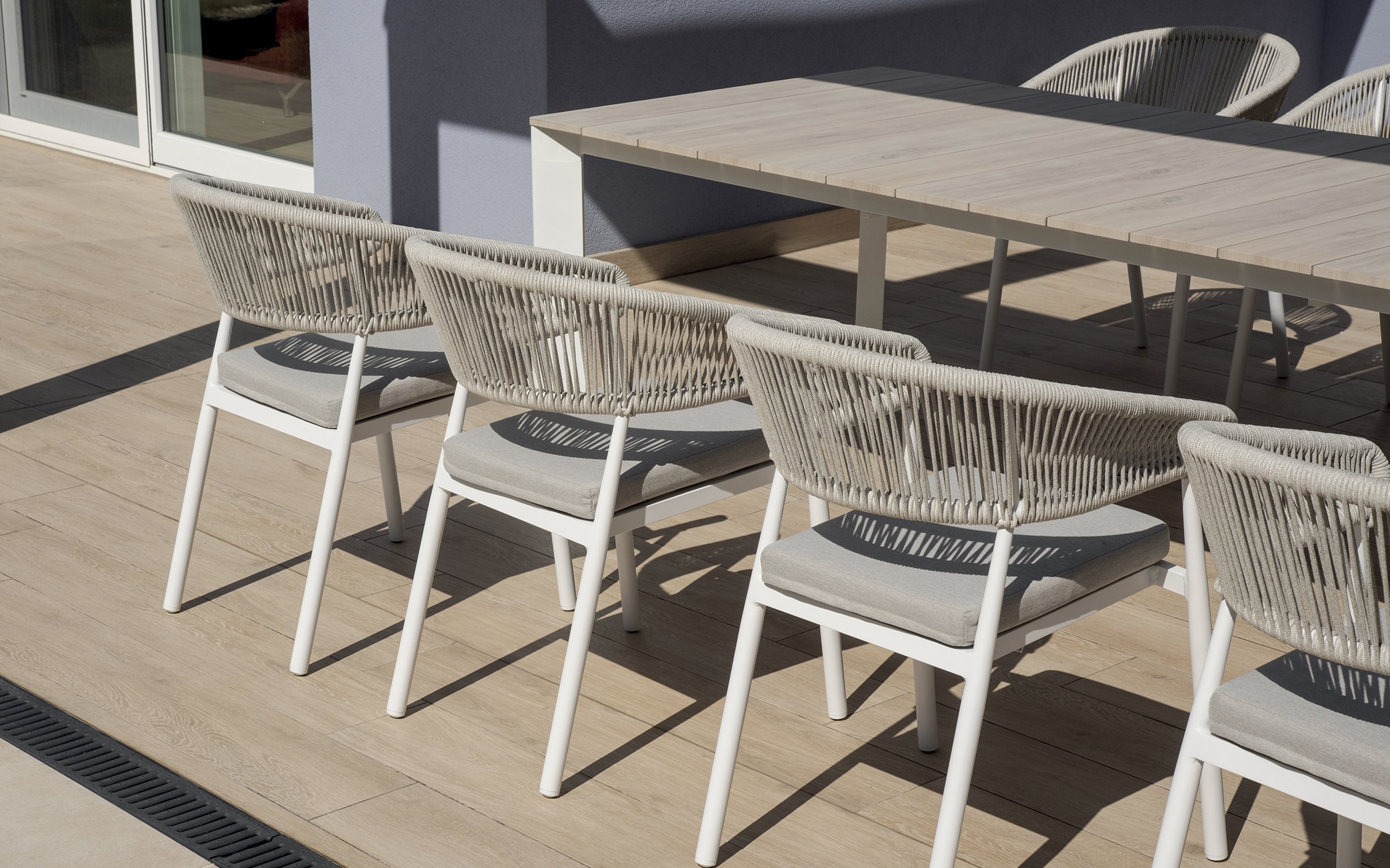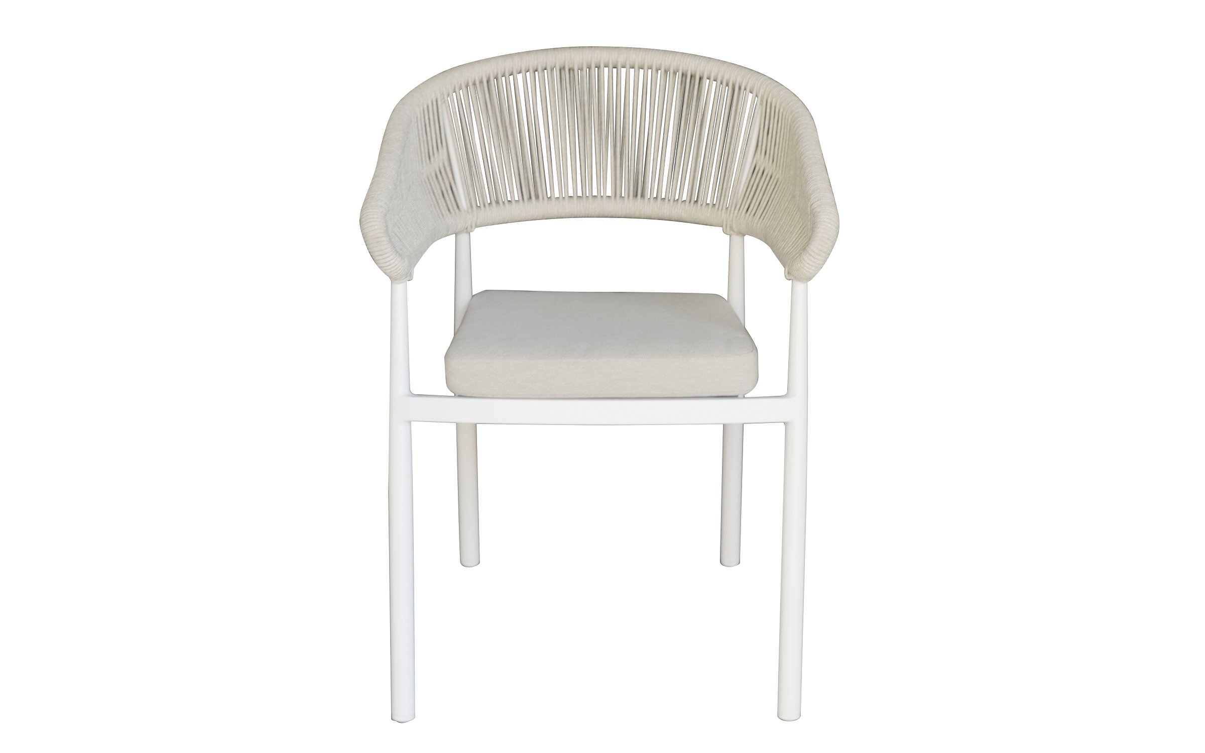 Krzesło PERUGIA to model kontraktowy przeznaczony do użytku zewnętrznego – idealne do ogrodów, tarasów, balkonów oraz przestrzeni horeca. Wykonane z aluminiowej rury Ø32×1,2 mm, z oparciem z liny syntetycznej oraz siedziskiem z aluminiowych listew z poduszką. Konstrukcja jest sztaplowana, co ułatwia przechowywanie i transport.