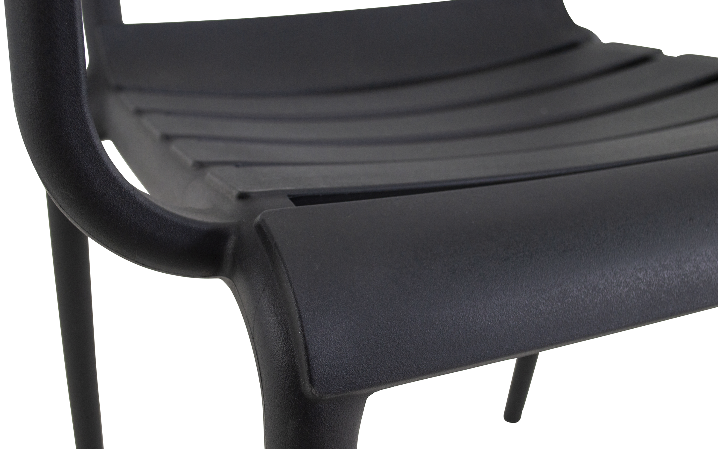 Konstrukcja: stabilna, sztaplowana, z otworami w siedzisku i oparciu umożliwiającymi odpływ wody.