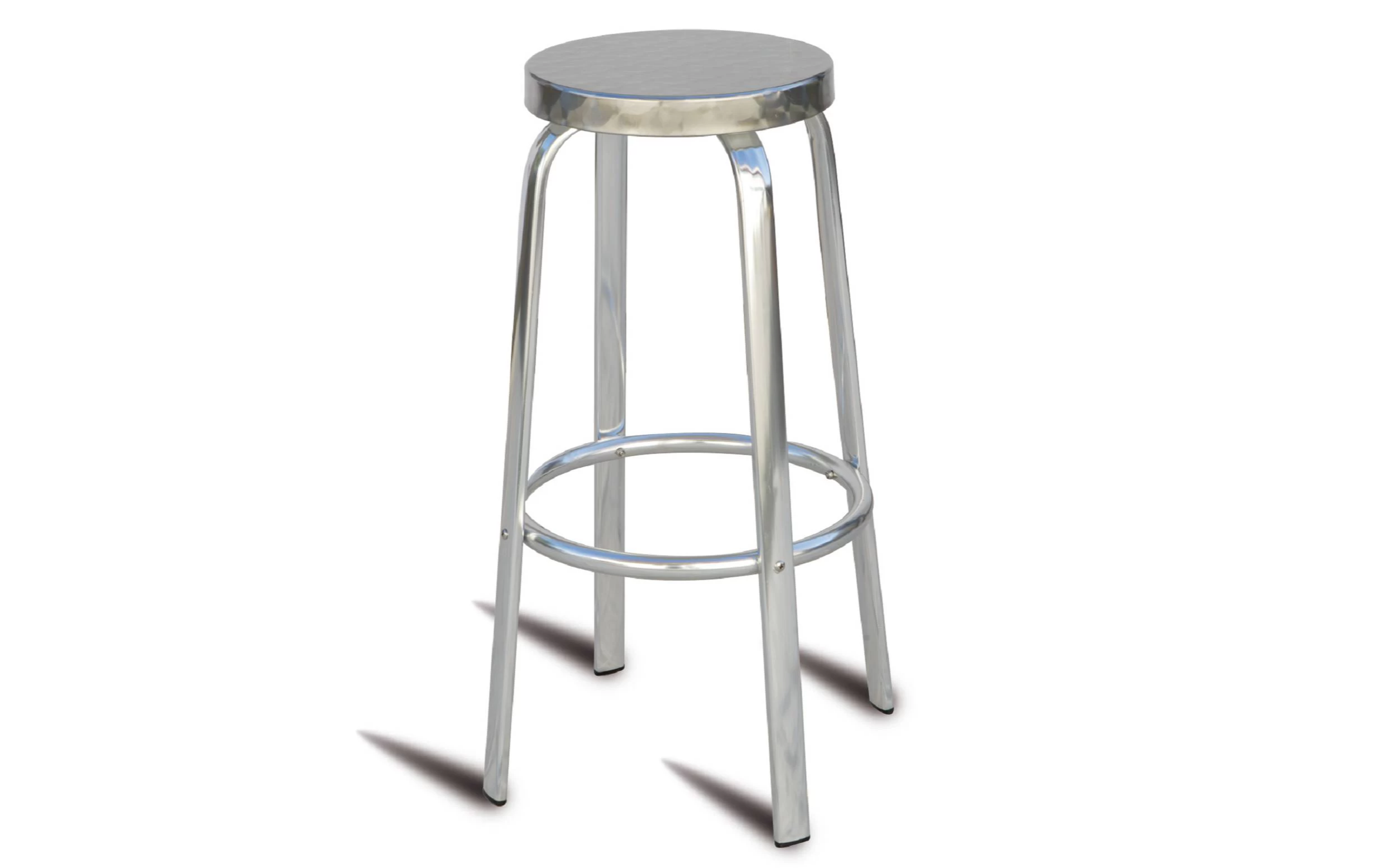 Stołek barowy bistro wykonany z aluminium (gr. blachy 1,2 mm). Siedzisko z zaokrągloną krawędzią.