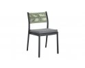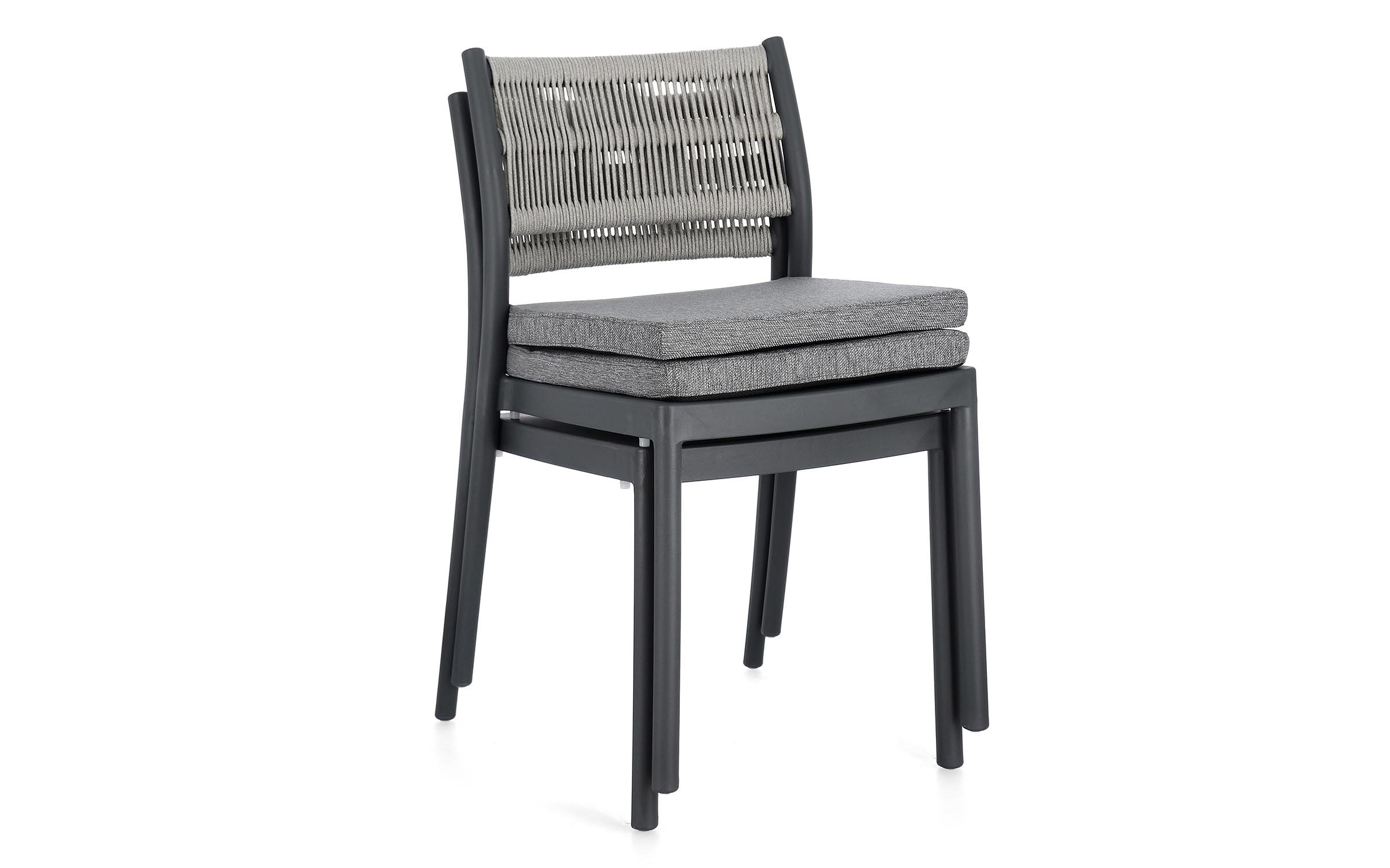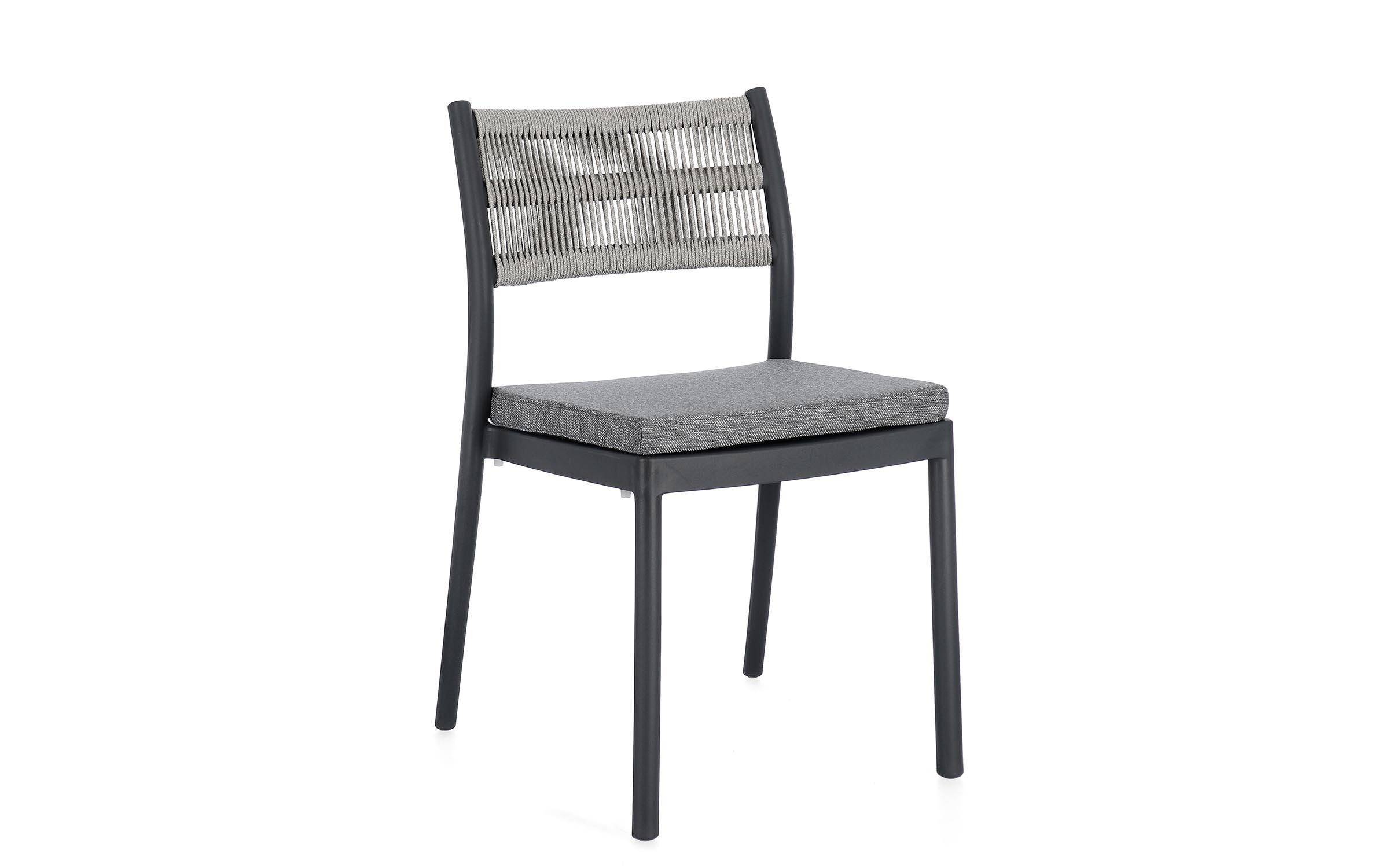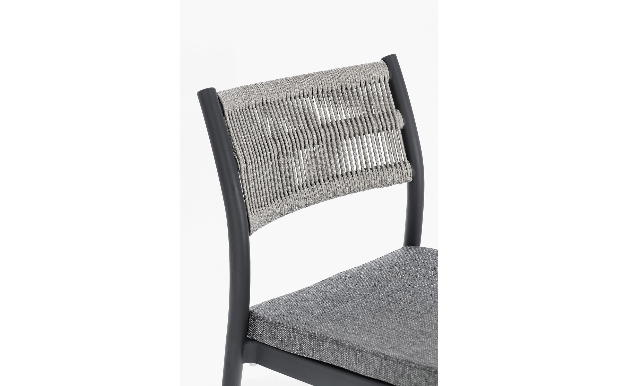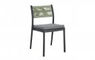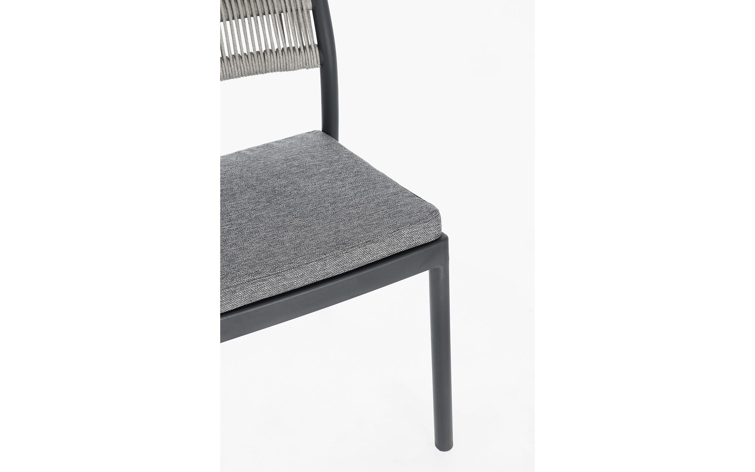 Aluminiowe krzesło na taras w kolorze białym z możliwością sztaplowania. Oparcie oplecione liną.