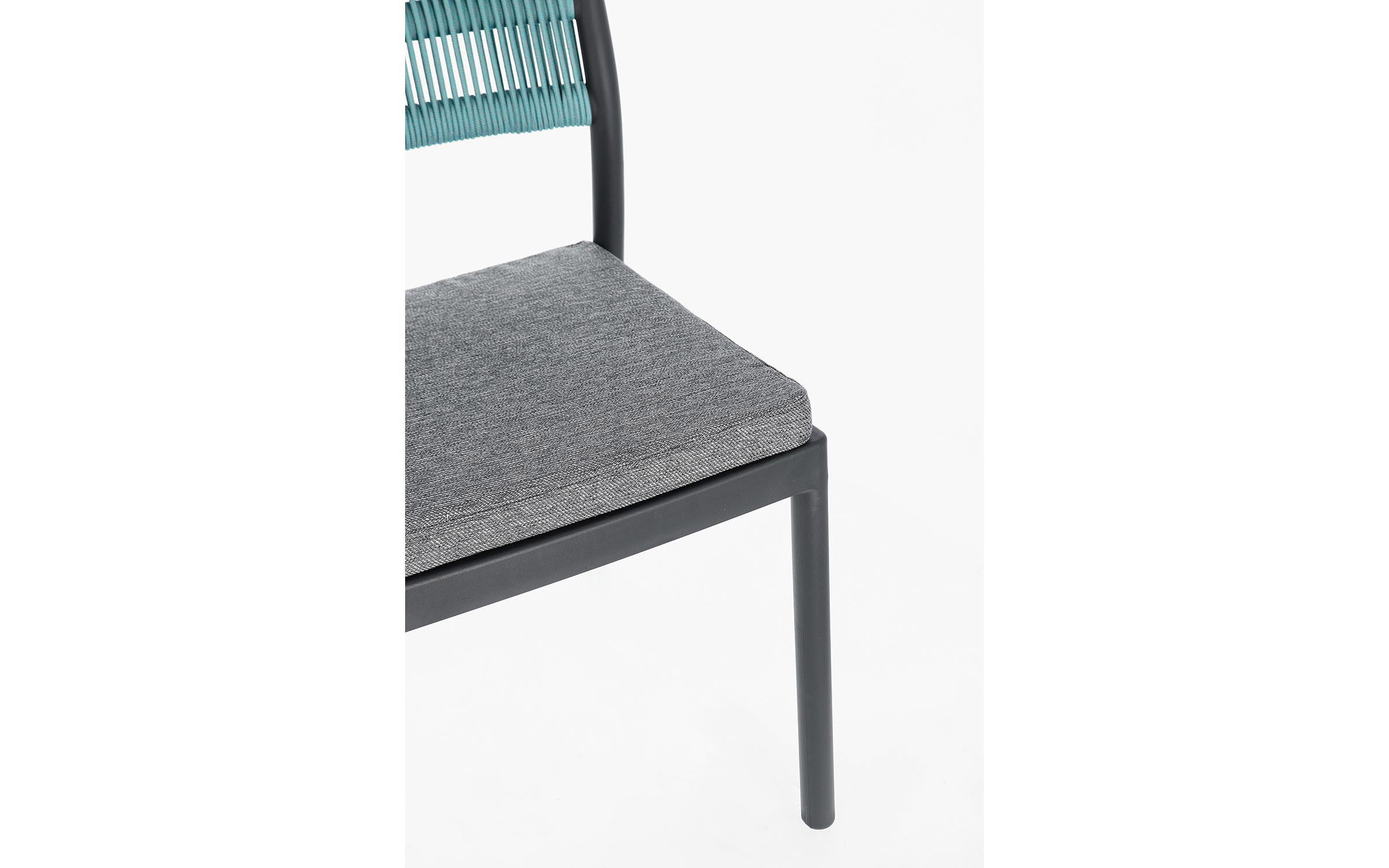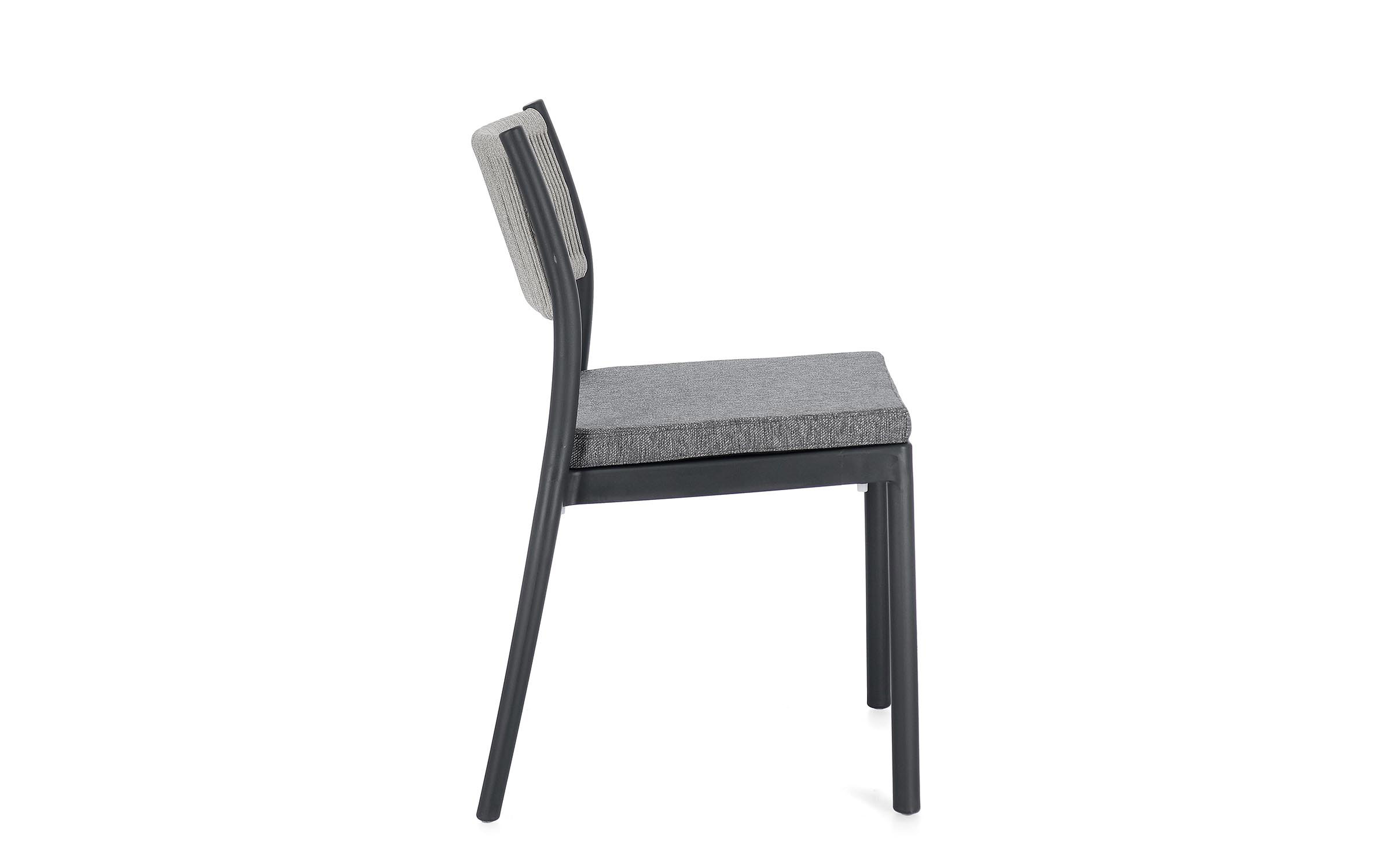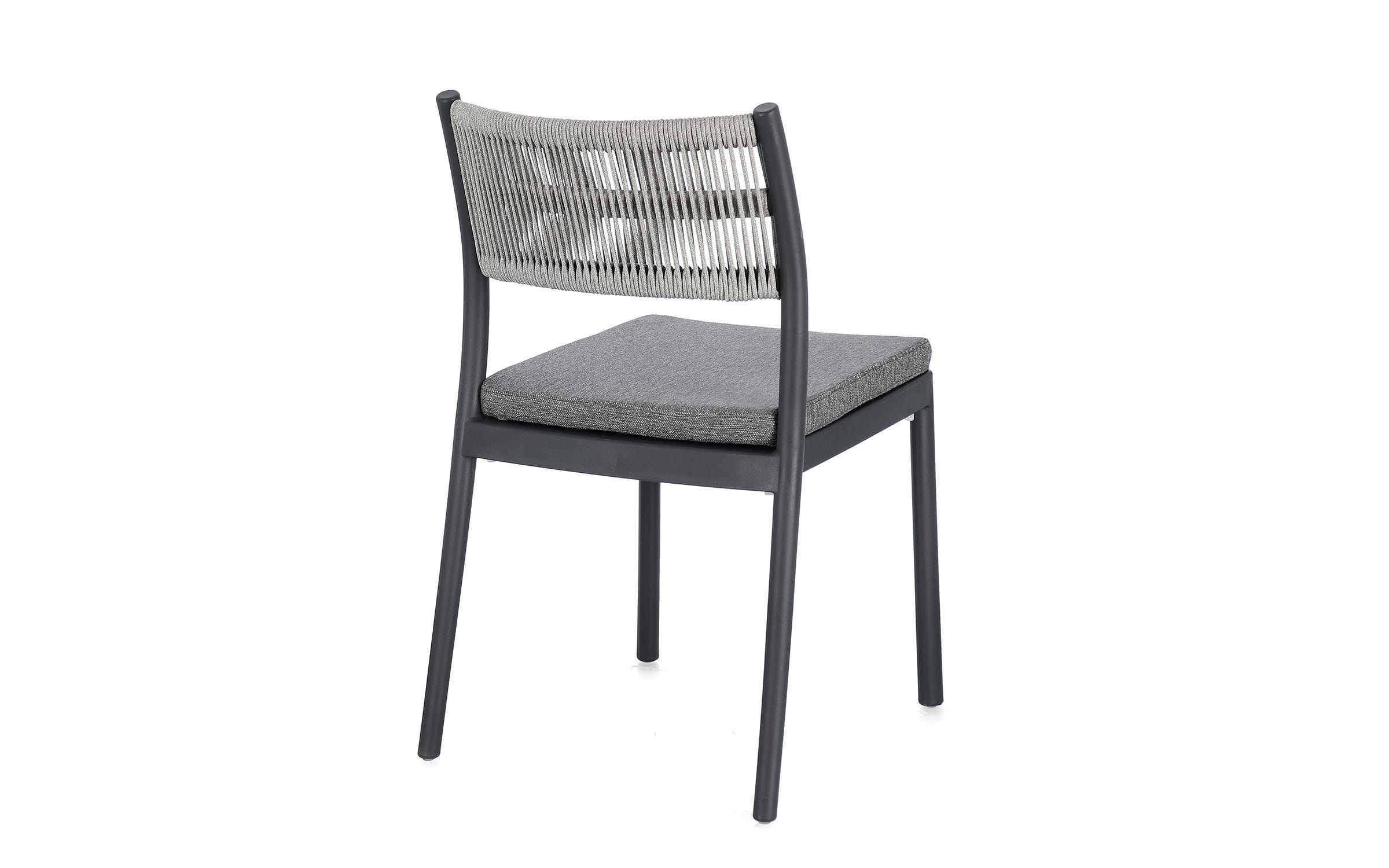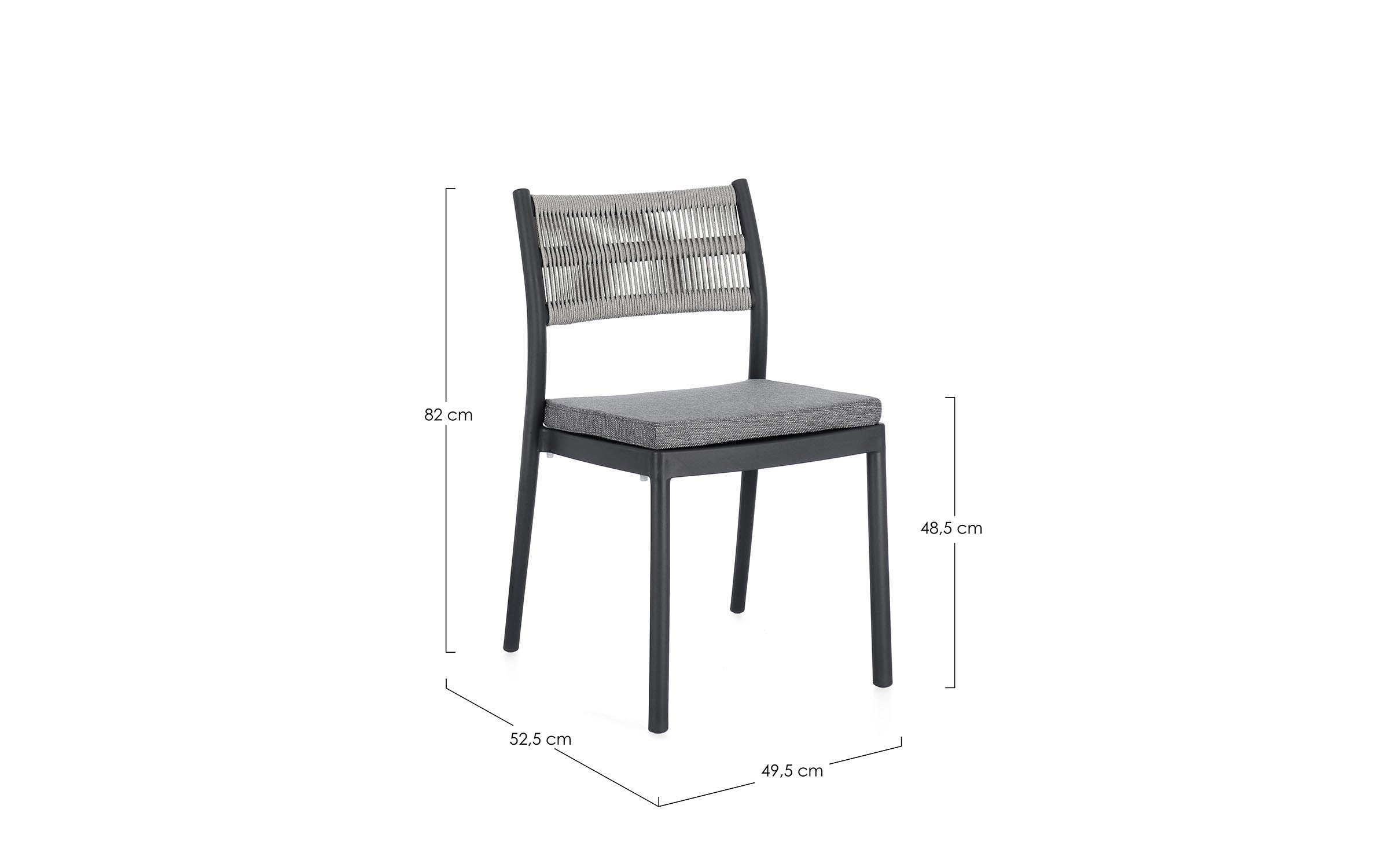 Aluminiowe krzesło na taras w kolorze białym z możliwością sztaplowania. Oparcie oplecione liną.
