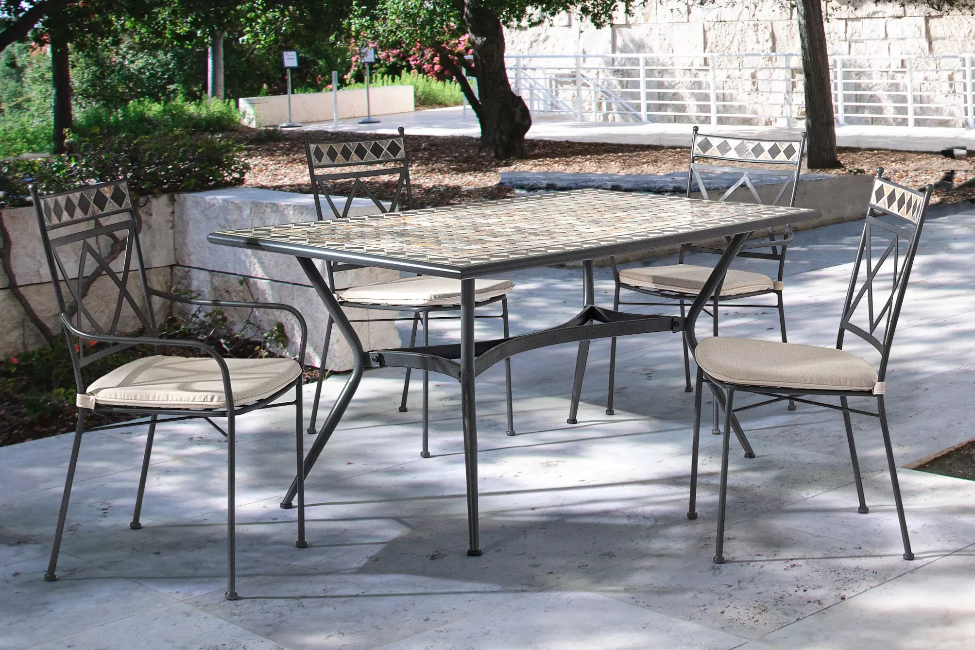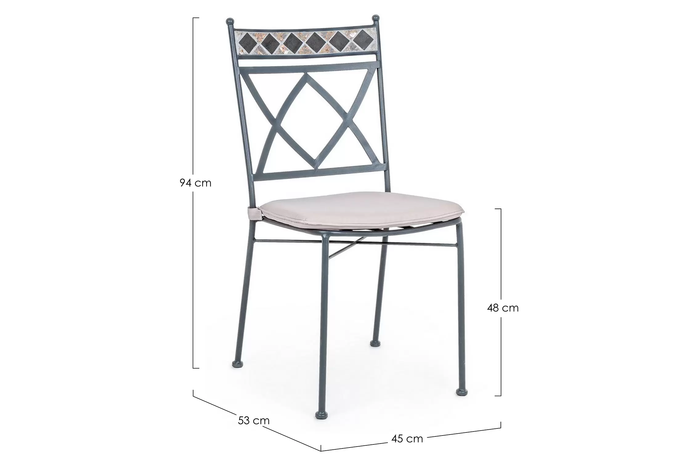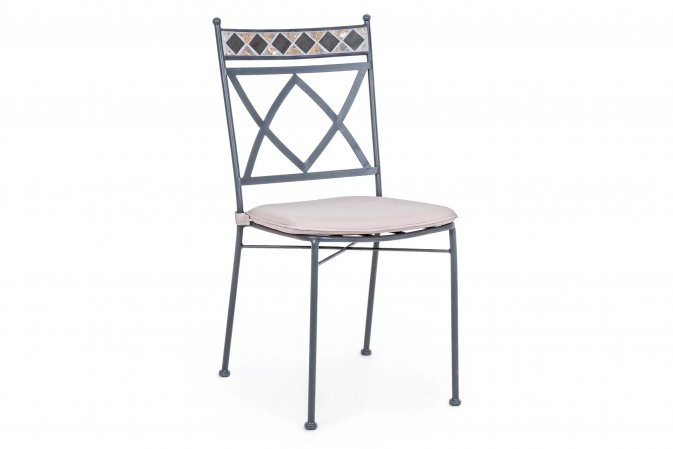 Konstrukcja stalowa malowana proszkowo. Oparcie z ceramicznym ornamentem.