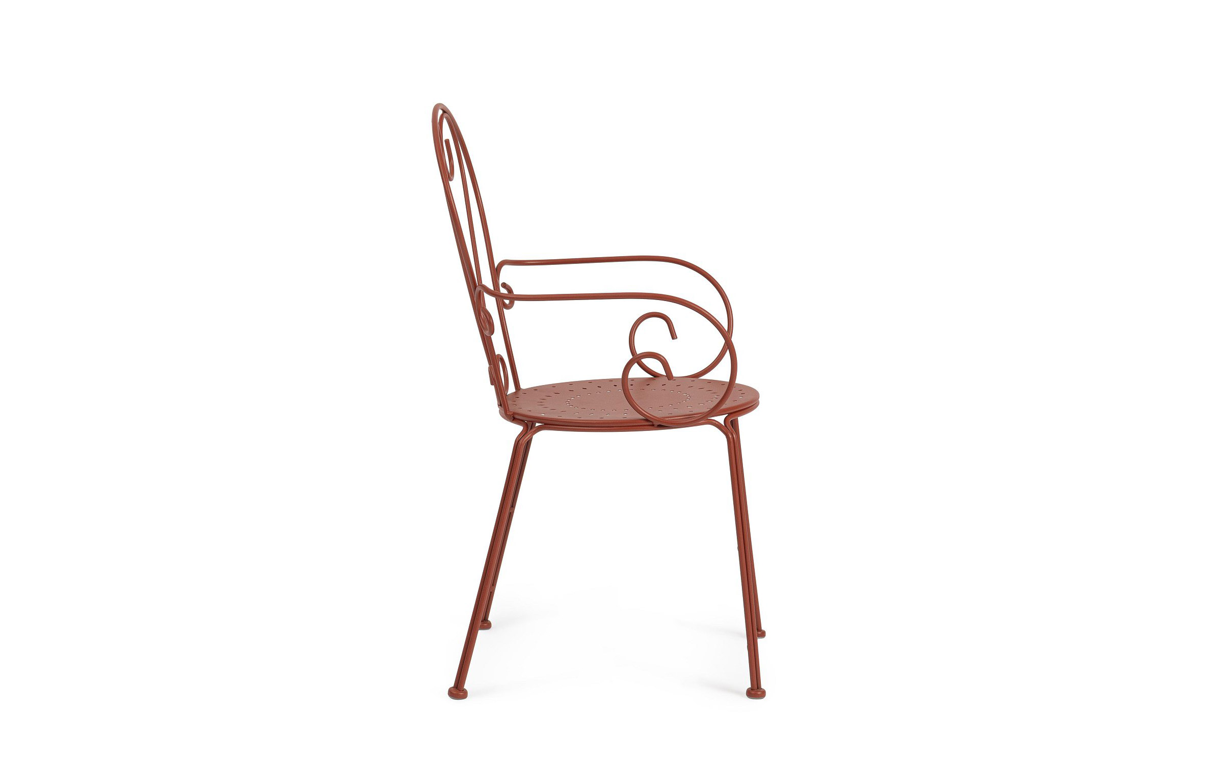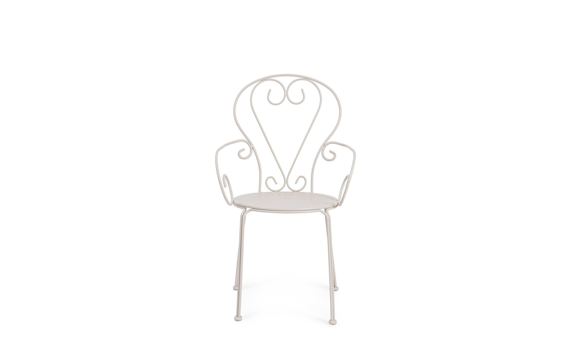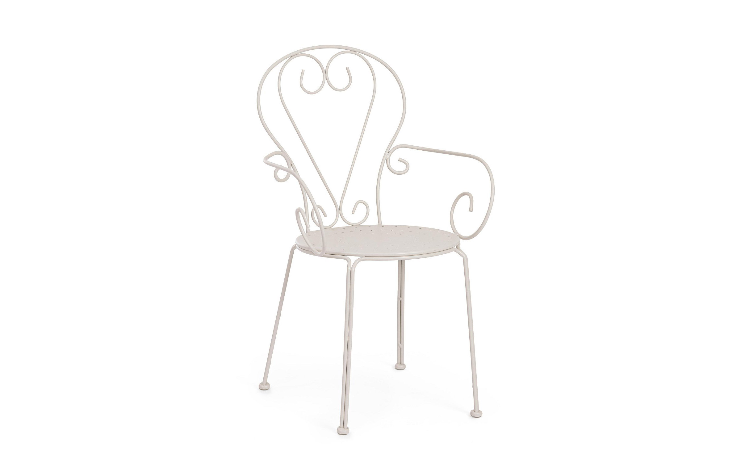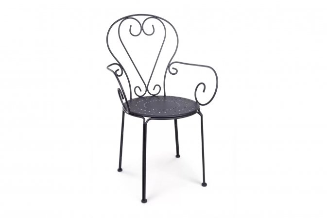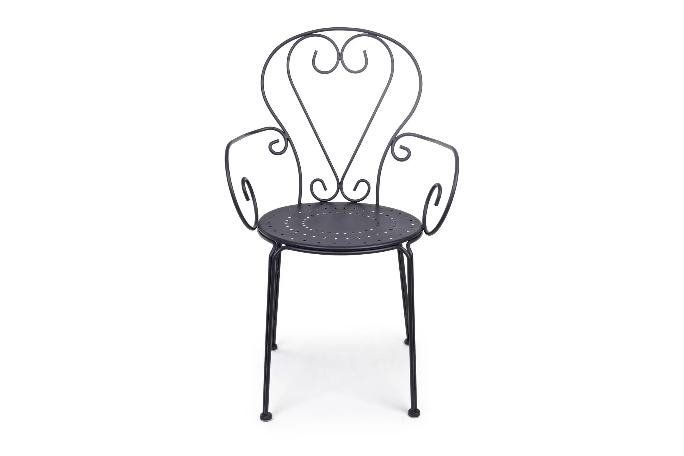 Stalowe krzesło z podłokietnikami z pełnych prętów stalowych z powloką matową e-coating.