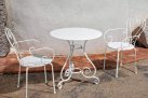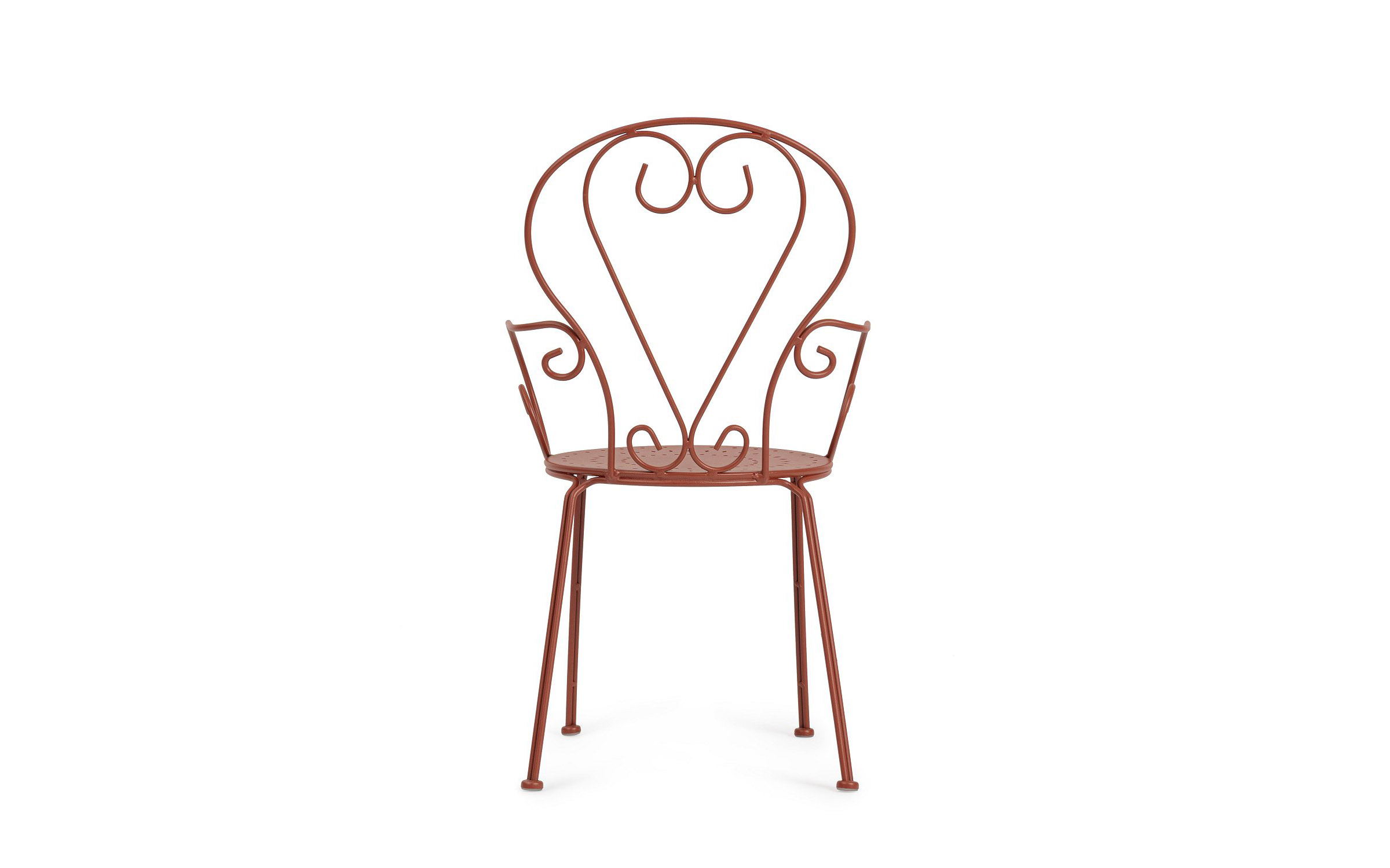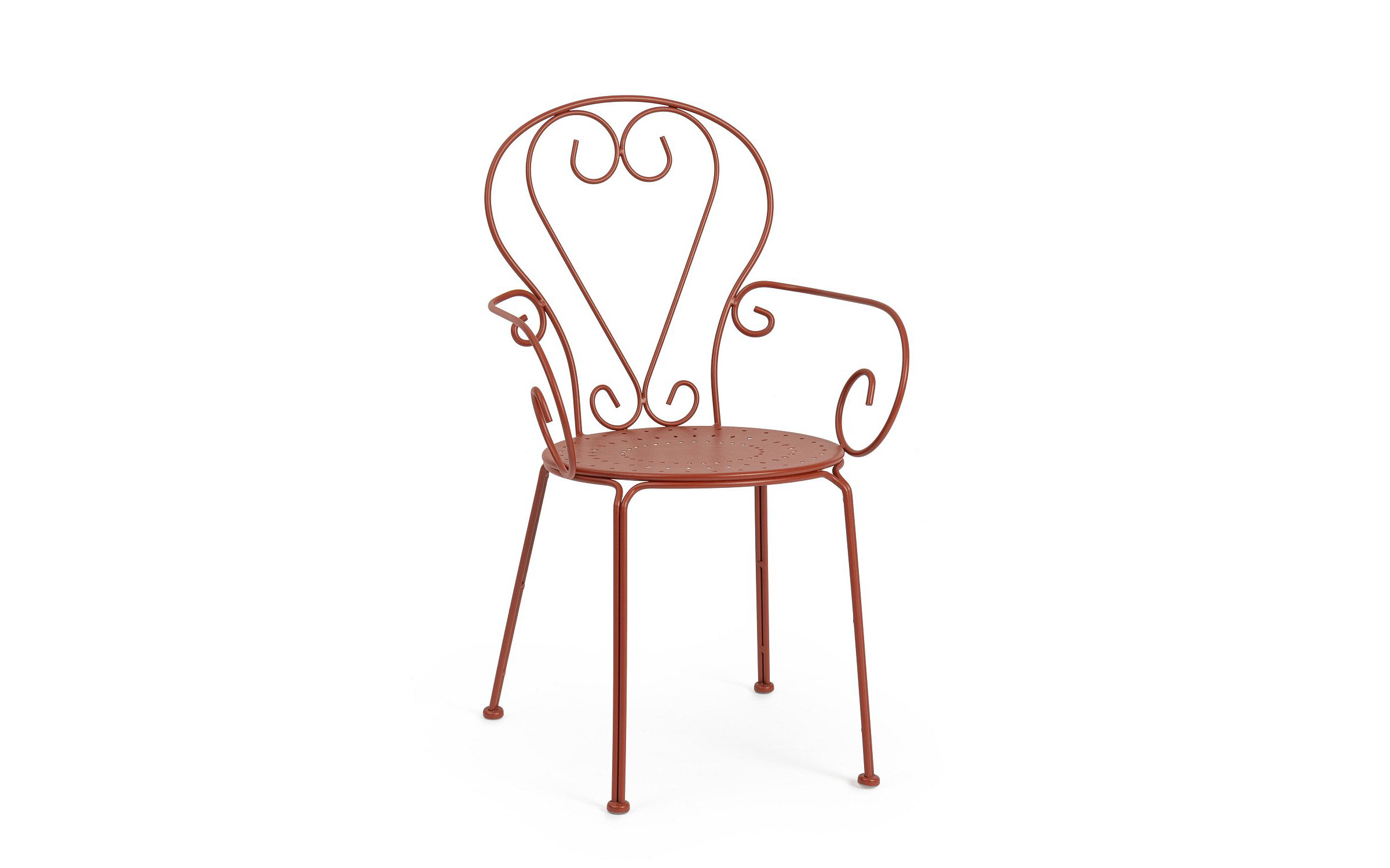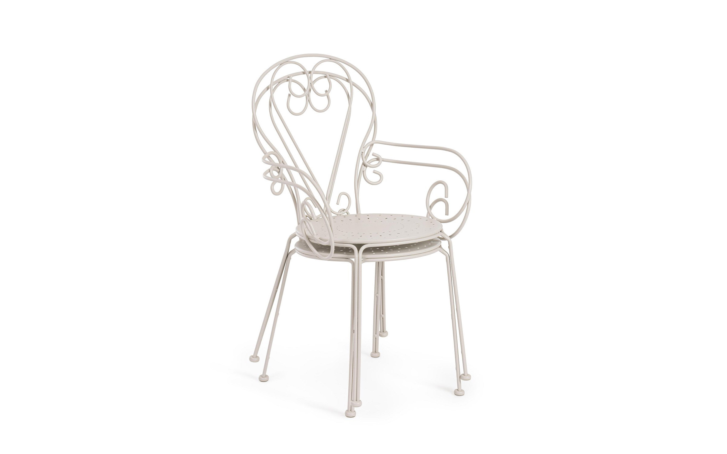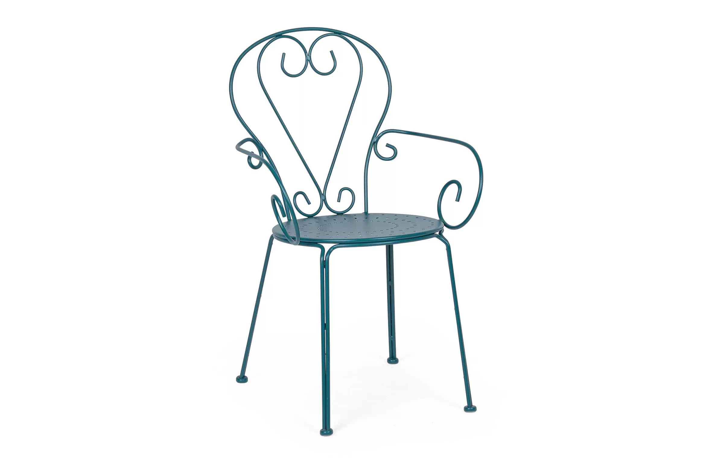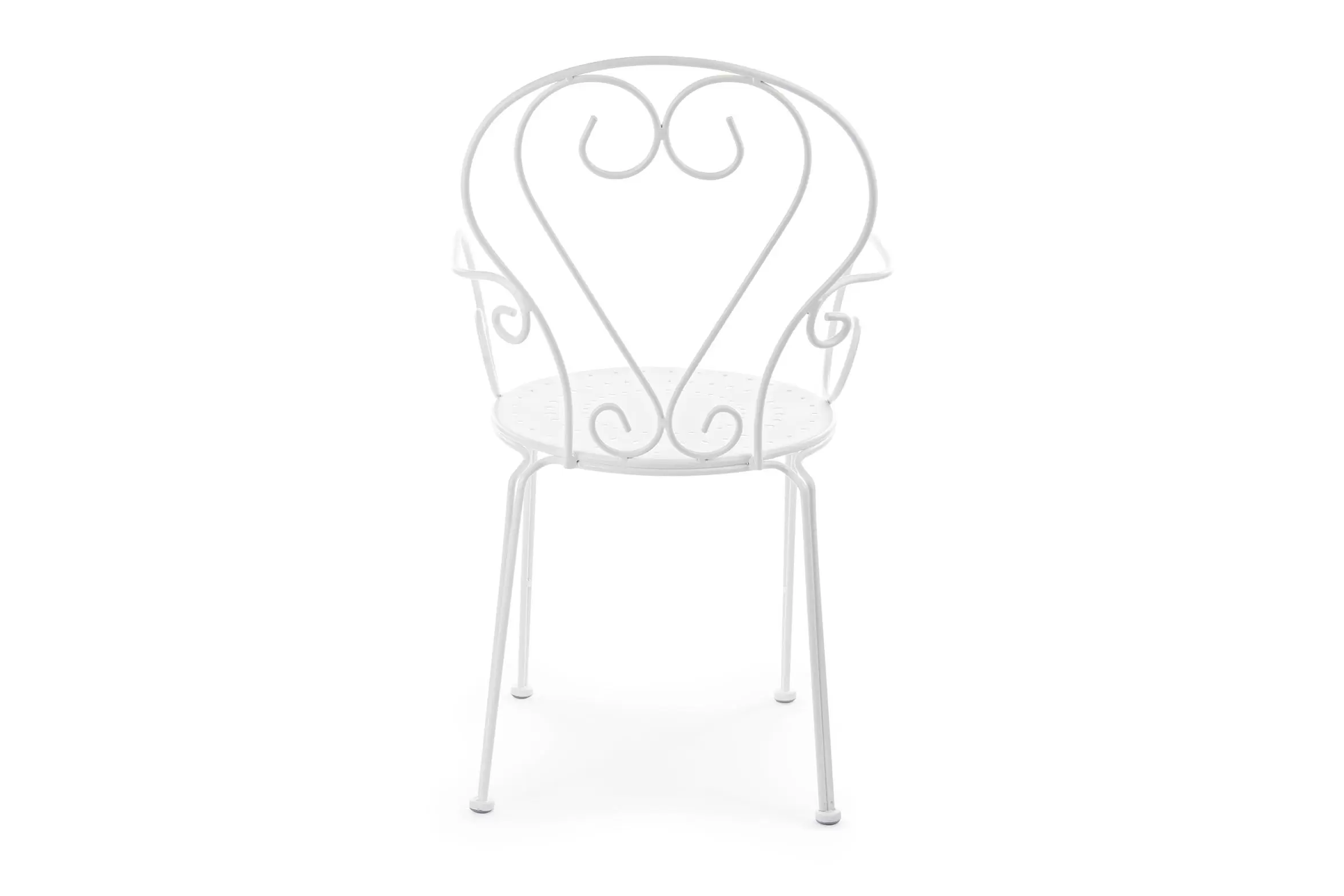 Stalowe krzesło z podłokietnikami z pełnych prętów stalowych z powloką matową e-coating.