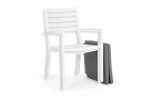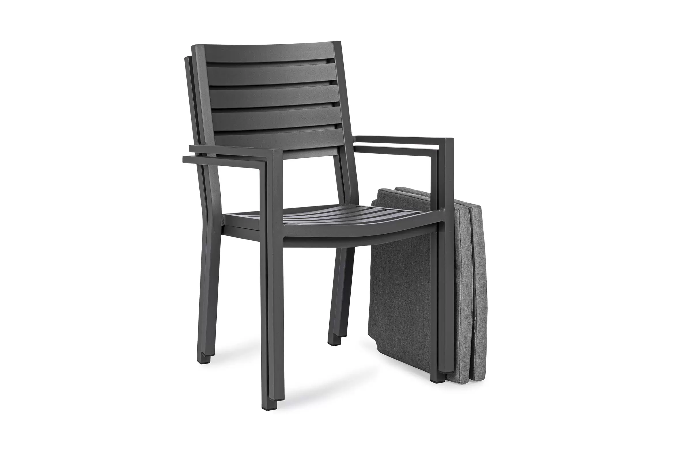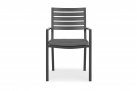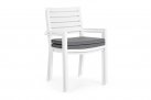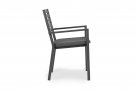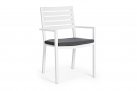 Lekkie aluminiowe krzesło z podłokietnikami z poduszką na siedzisku. Sztaplowane.