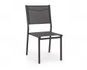 Lekkie aluminiowe krzesło z siedziskiem i oparciem z tekstyliny. Sztaplowane.