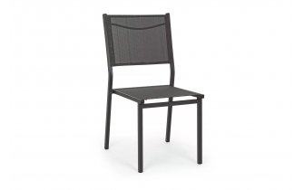 Lekkie aluminiowe krzesło z siedziskiem i oparciem z tekstyliny. Sztaplowane.
