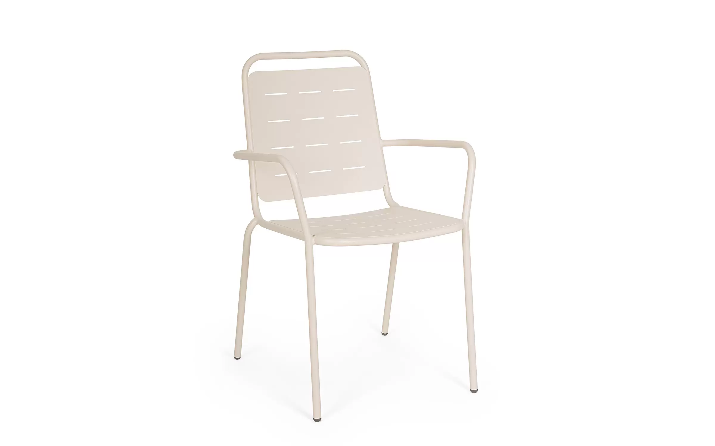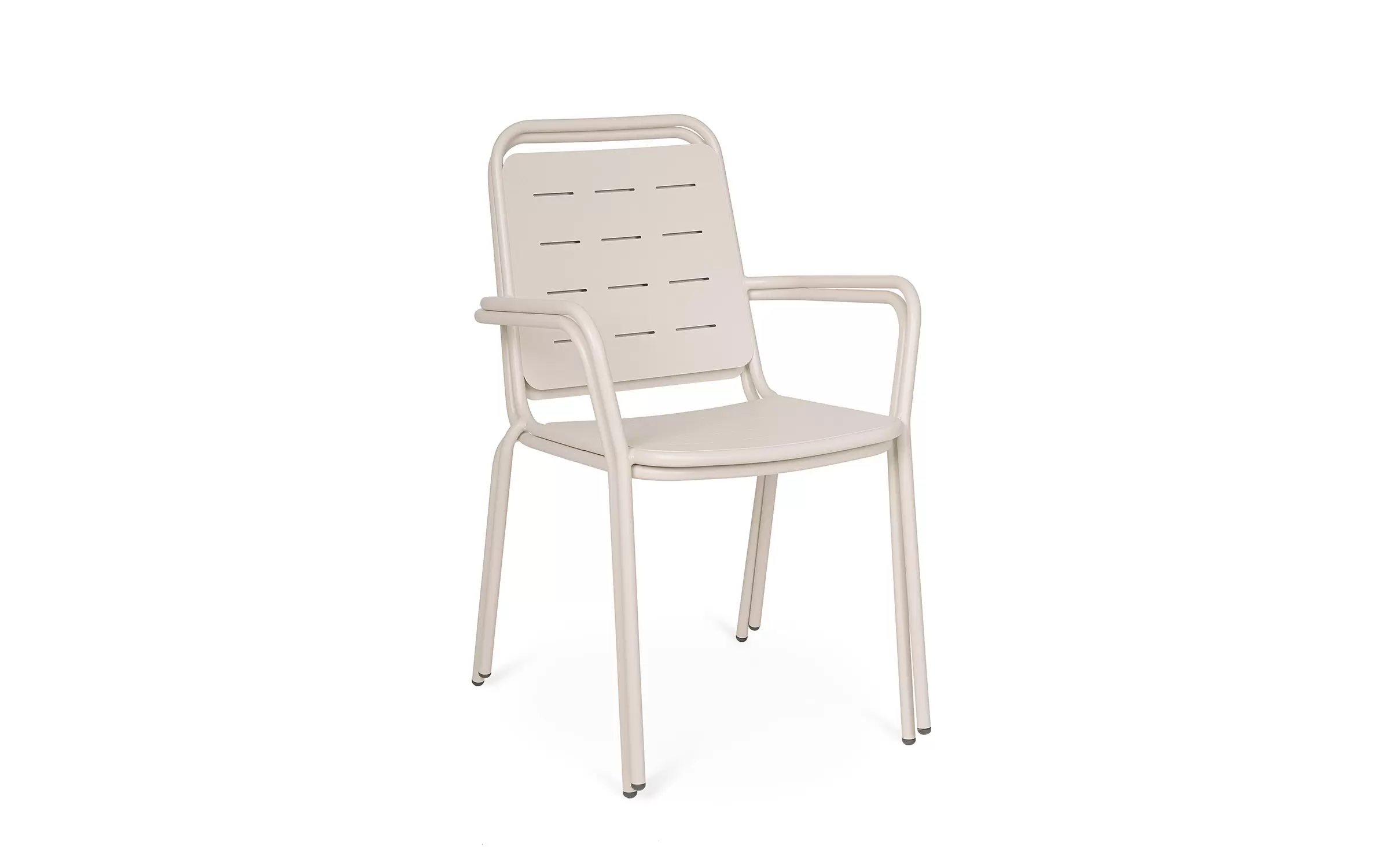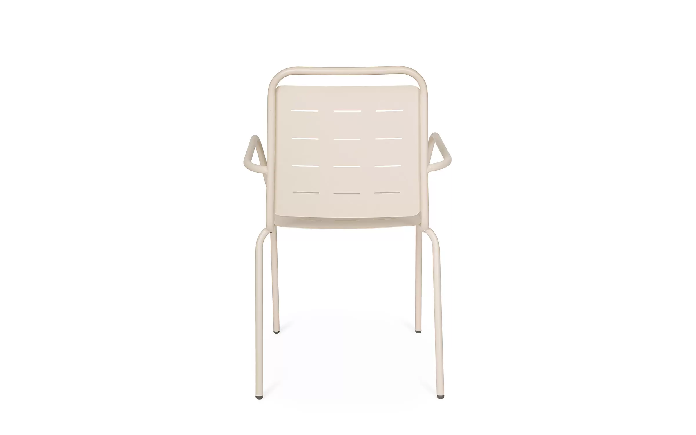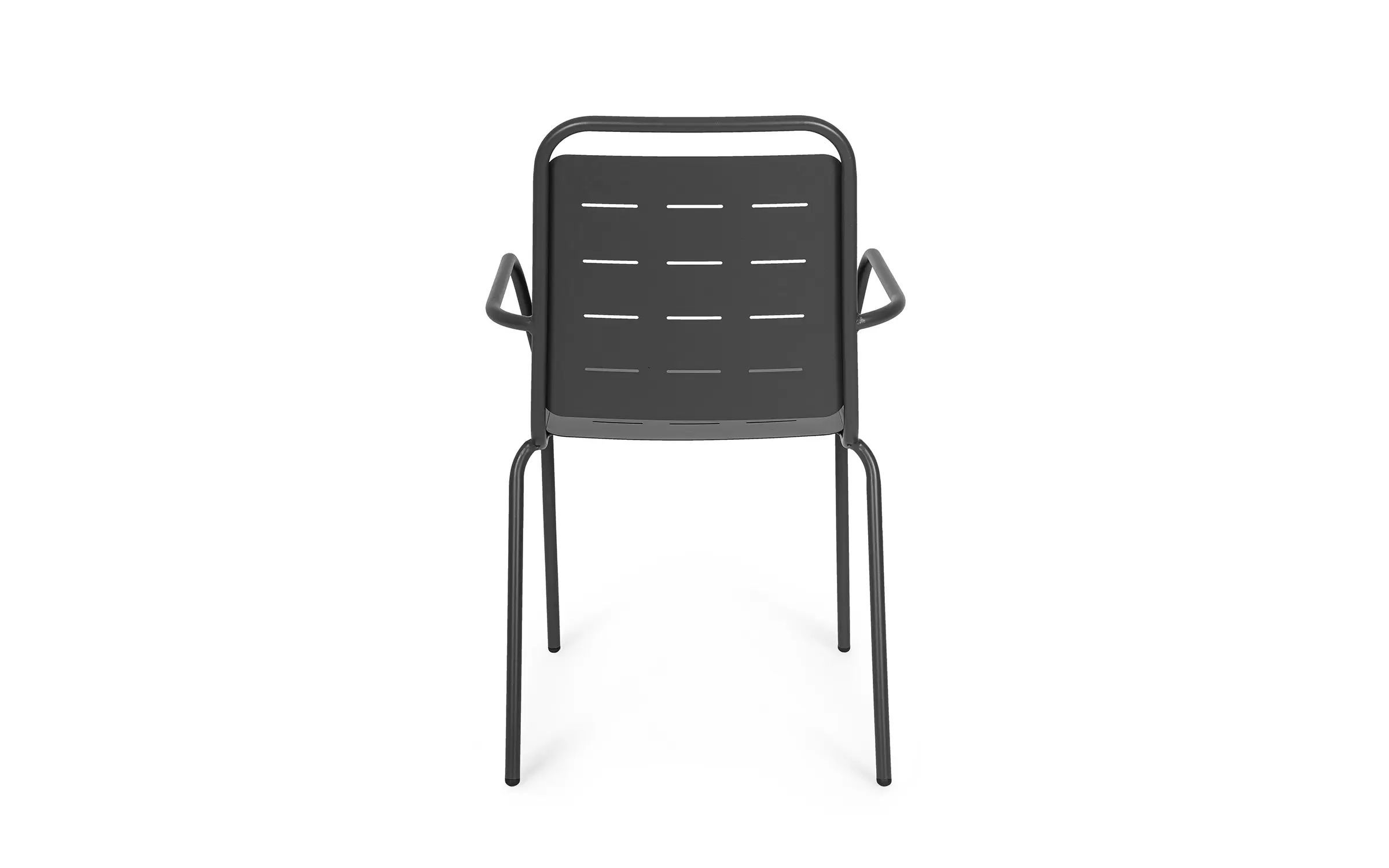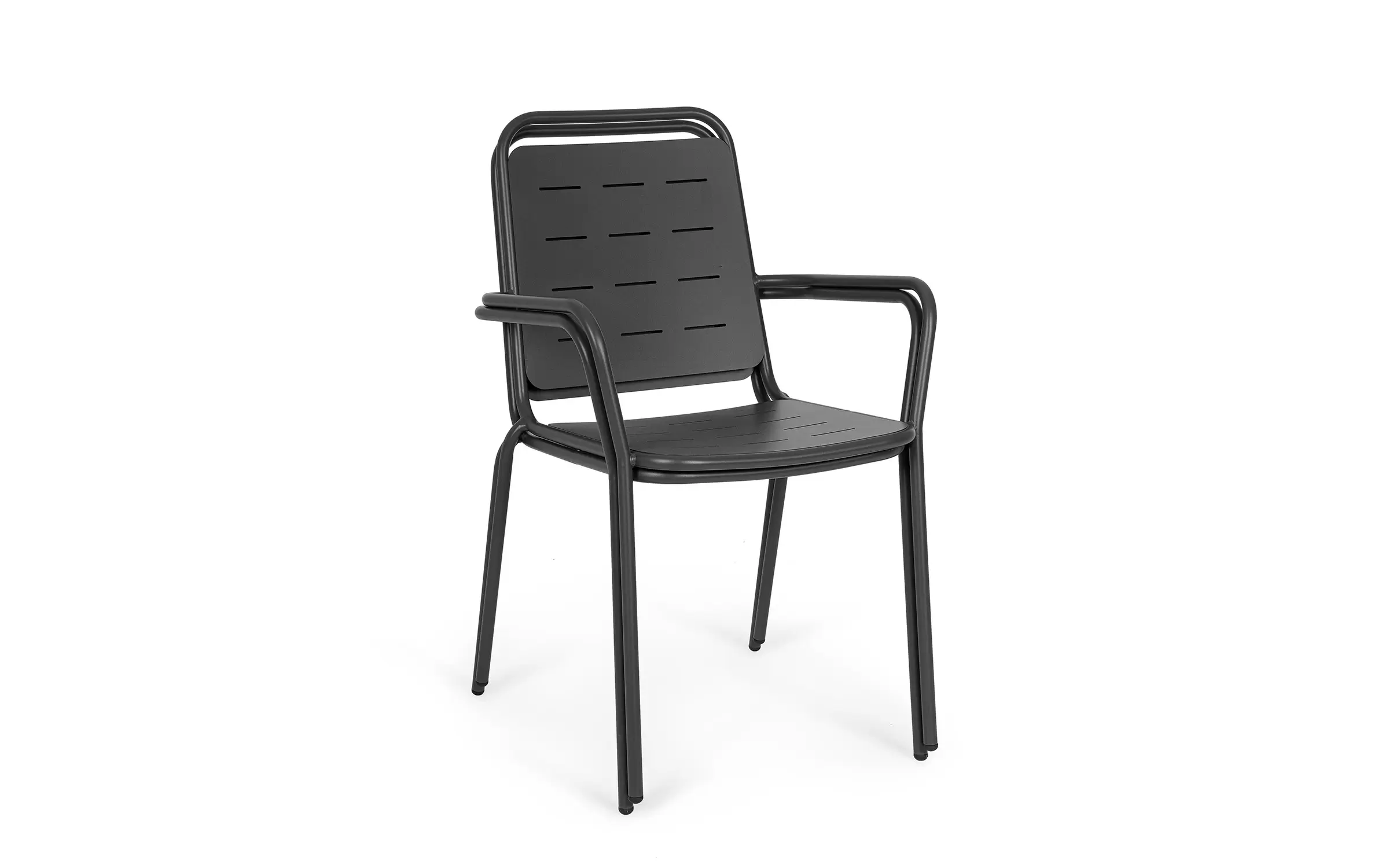 Metalowe krzesło ogrodowe z podłokietnikami sztaplowane.