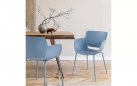 Podstawa krzesła jest wykonana z malowanej proszkowo stali, co sprawia, że jest odporna na korozję i nie rdzewieje. Kolory siedziska i ramy krzesła są dopasowane do siebie.