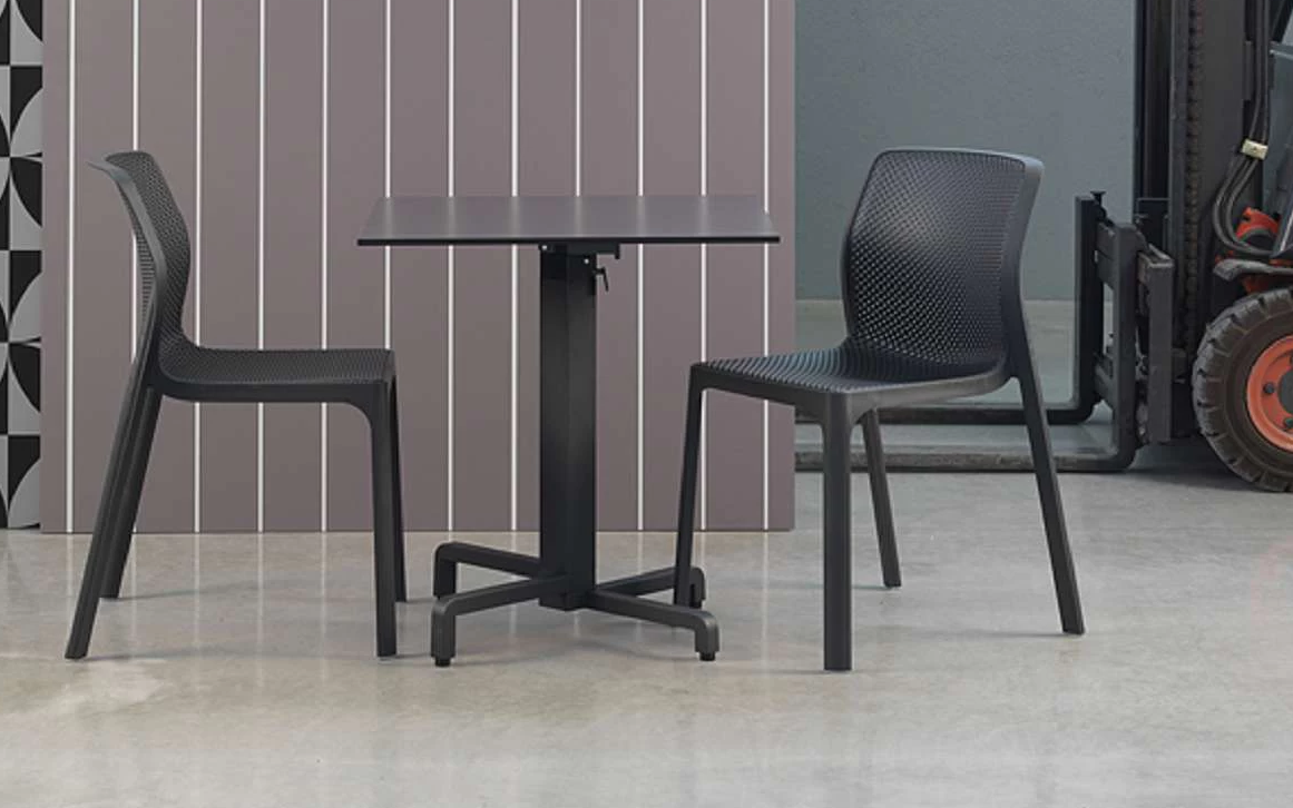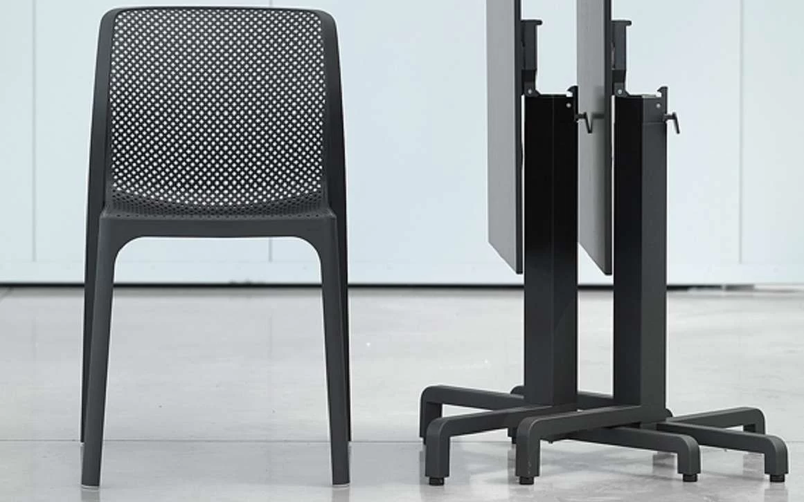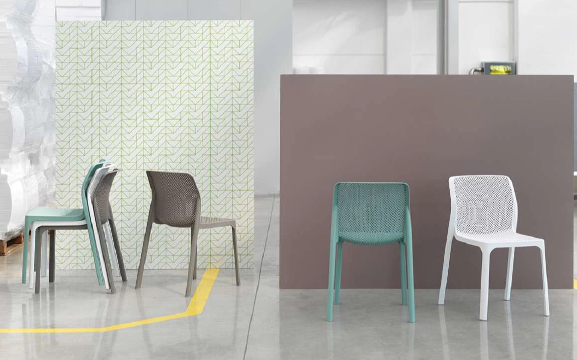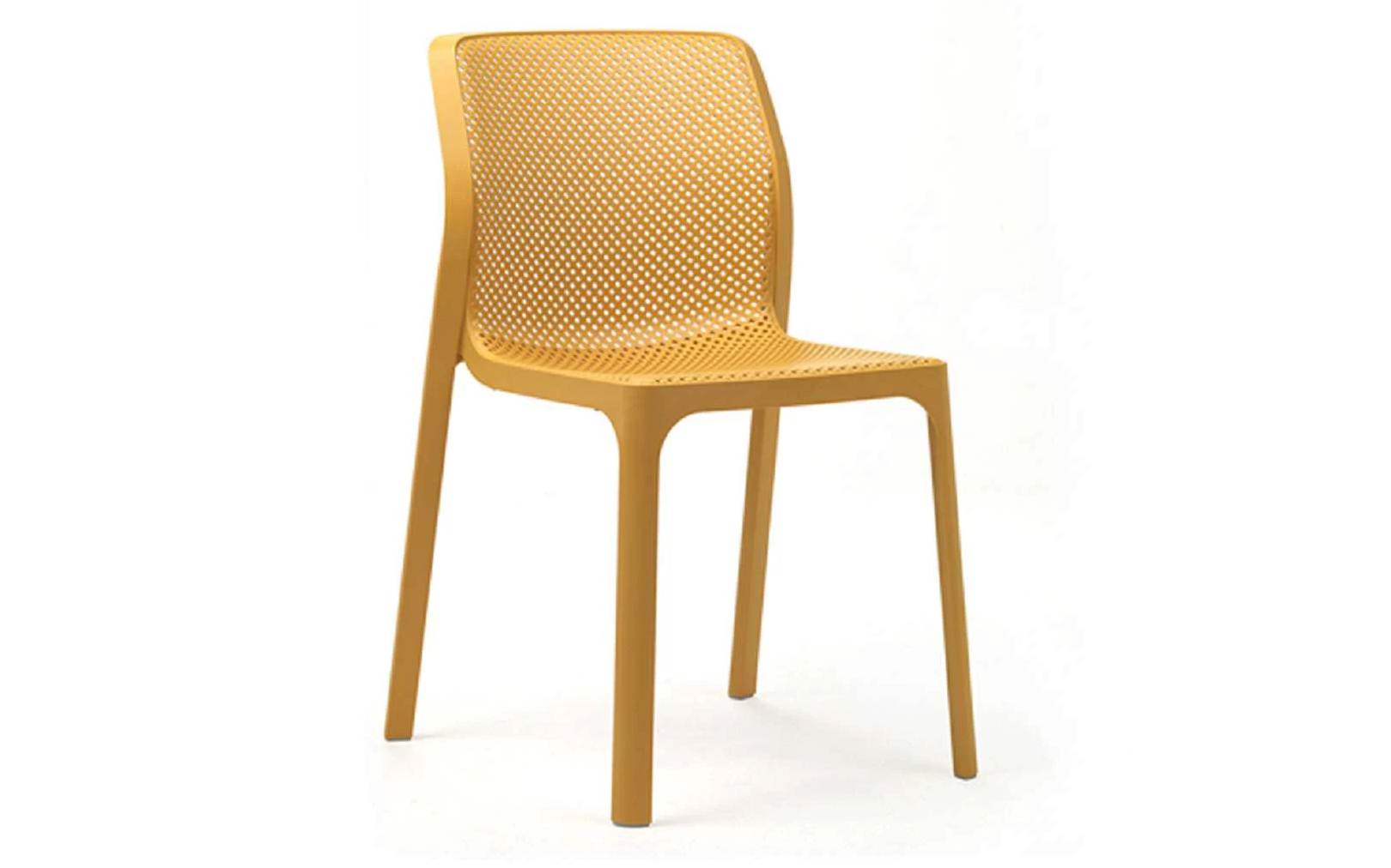 Sztaplowane krzesło wykonany z polipropylenu wzmocnionego włóknem szklanym. Nowoczesna forma i wygodne siedzisko oraz materiały powodują, że może być użytkowana cały rok na zewnątrz. W całości wykonana z włókna szklanego oraz z żywicy syntetycznej (żywica polipropylenowa z dodatkami zabezpieczającymi przed promieniowaniem UV, barwiona w masie).
