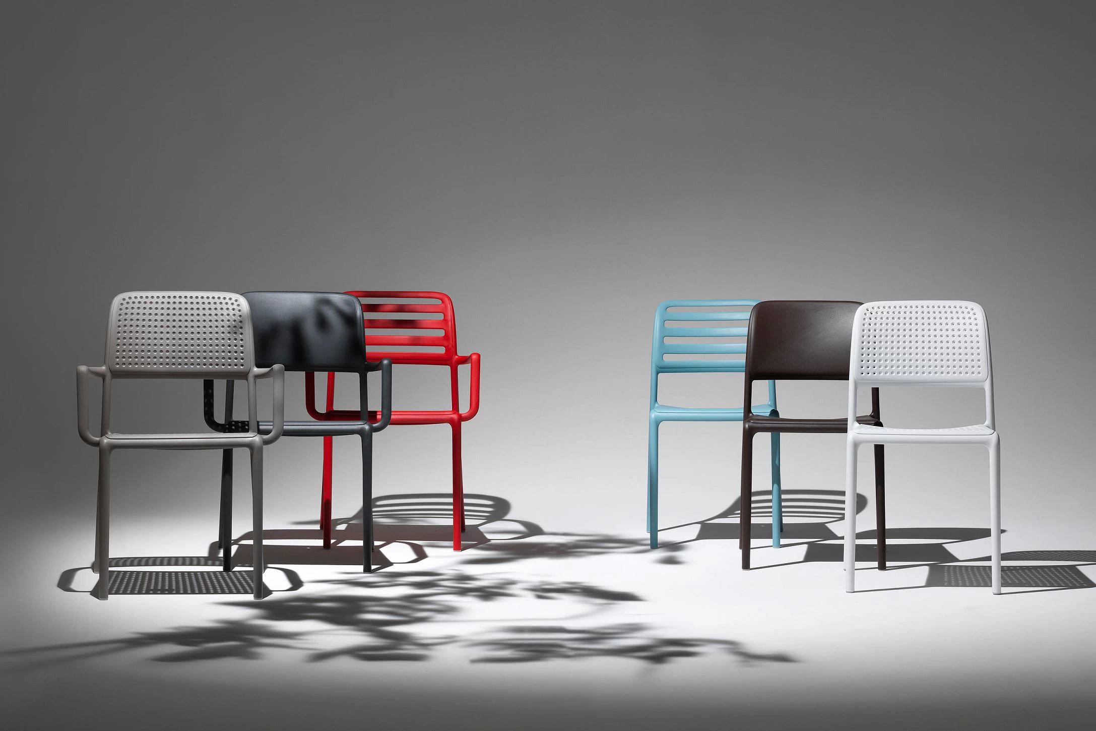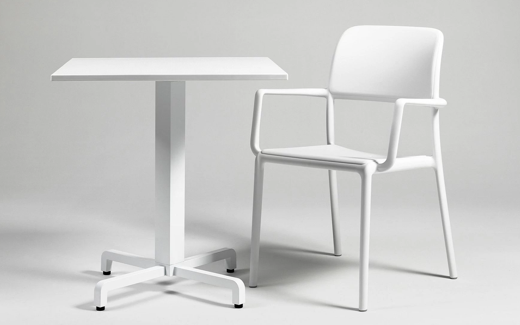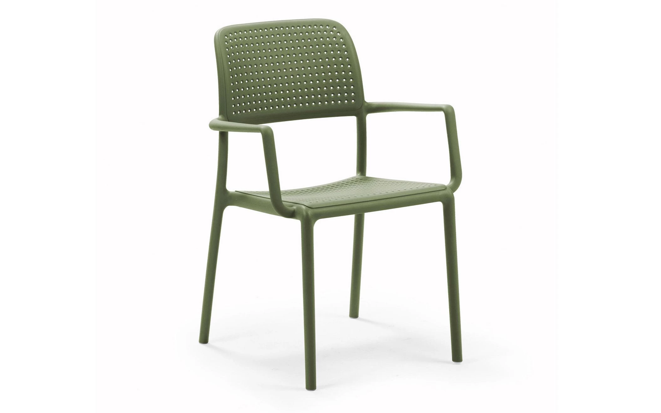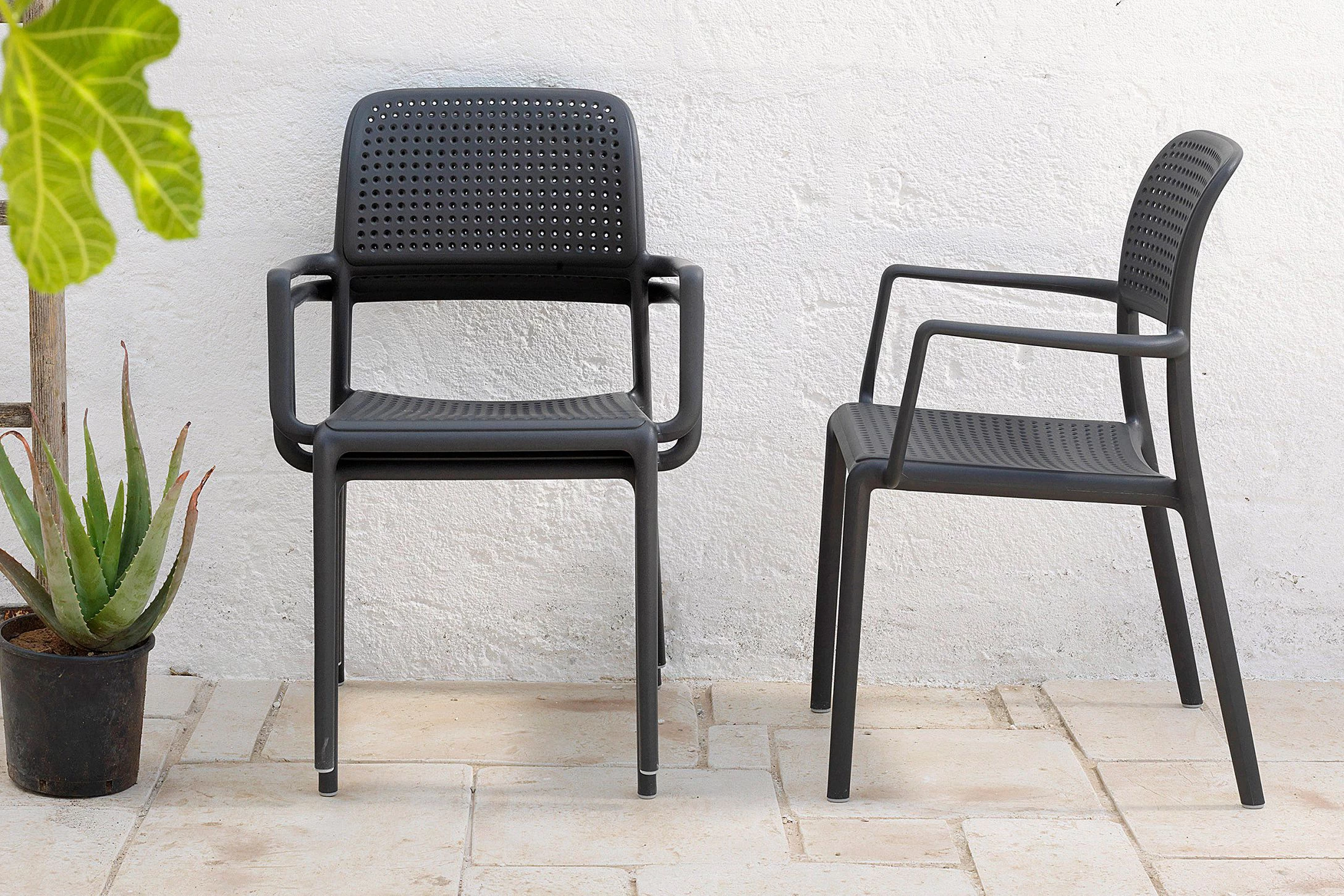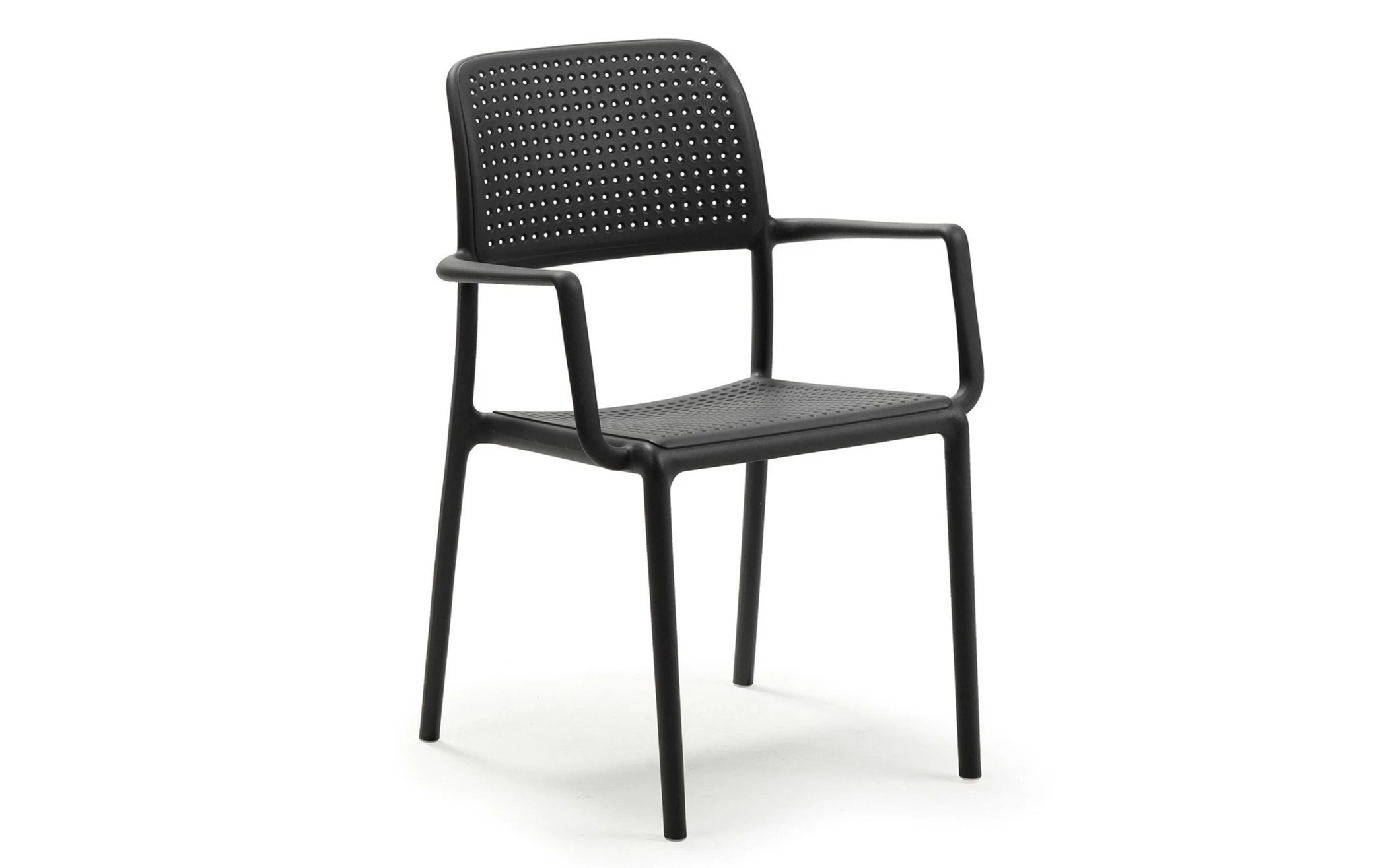 Sztaplowany fotel wykonany z polipropylenu wzmocnionego włóknem szklanym z podłokietnikami. Nowoczesna forma i wygodne siedzisko oraz materiały powodują, że może być użytkowana cały rok na zewnątrz. W całości wykonana z włókna szklanego oraz z żywicy syntetycznej (żywica polipropylenowa z dodatkami zabezpieczającymi przed promieniowaniem UV, barwiona w masie).