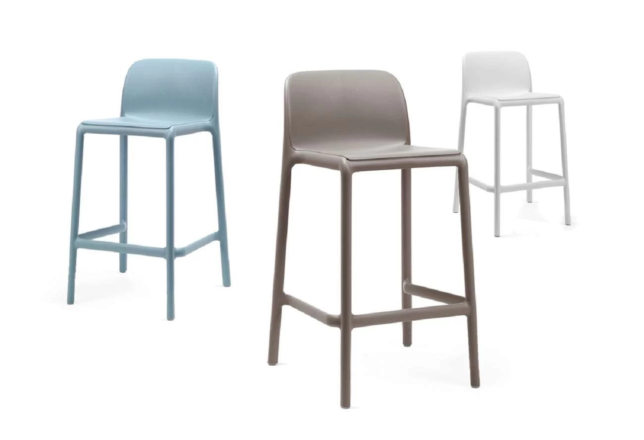 Sztaplowany stołek barowy niższy od FARO wykonany z polipropylenu wzmocnionego włóknem szklanymi. Nowoczesna forma i wygodne siedzisko oraz materiały powodują, że może być użytkowana cały rok na zewnątrz. W całości wykonana z włókna szklanego oraz z żywicy syntetycznej (żywica polipropylenowa z dodatkami zabezpieczającymi przed promieniowaniem UV, barwiona w masie).