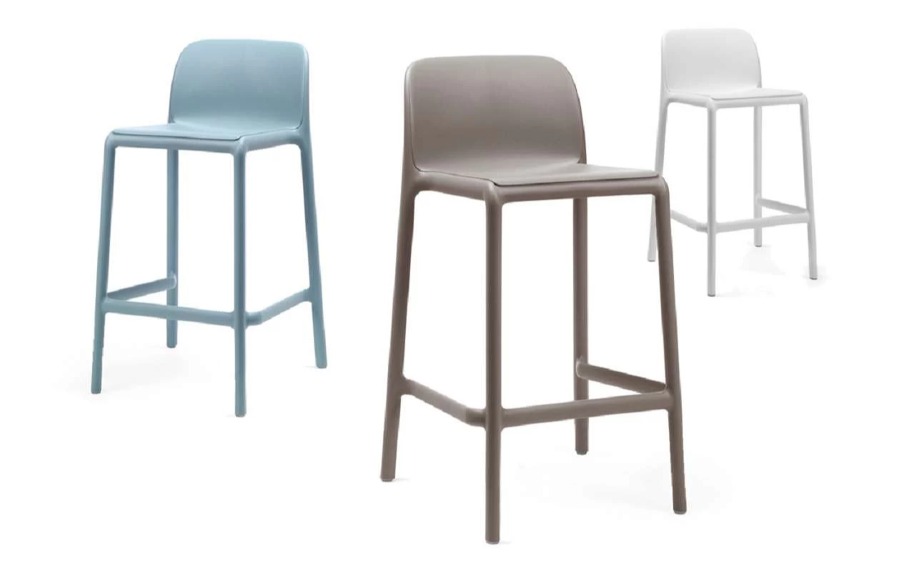 Sztaplowany stołek barowy niższy od FARO wykonany z polipropylenu wzmocnionego włóknem szklanymi. Nowoczesna forma i wygodne siedzisko oraz materiały powodują, że może być użytkowana cały rok na zewnątrz. W całości wykonana z włókna szklanego oraz z żywicy syntetycznej (żywica polipropylenowa z dodatkami zabezpieczającymi przed promieniowaniem UV, barwiona w masie).