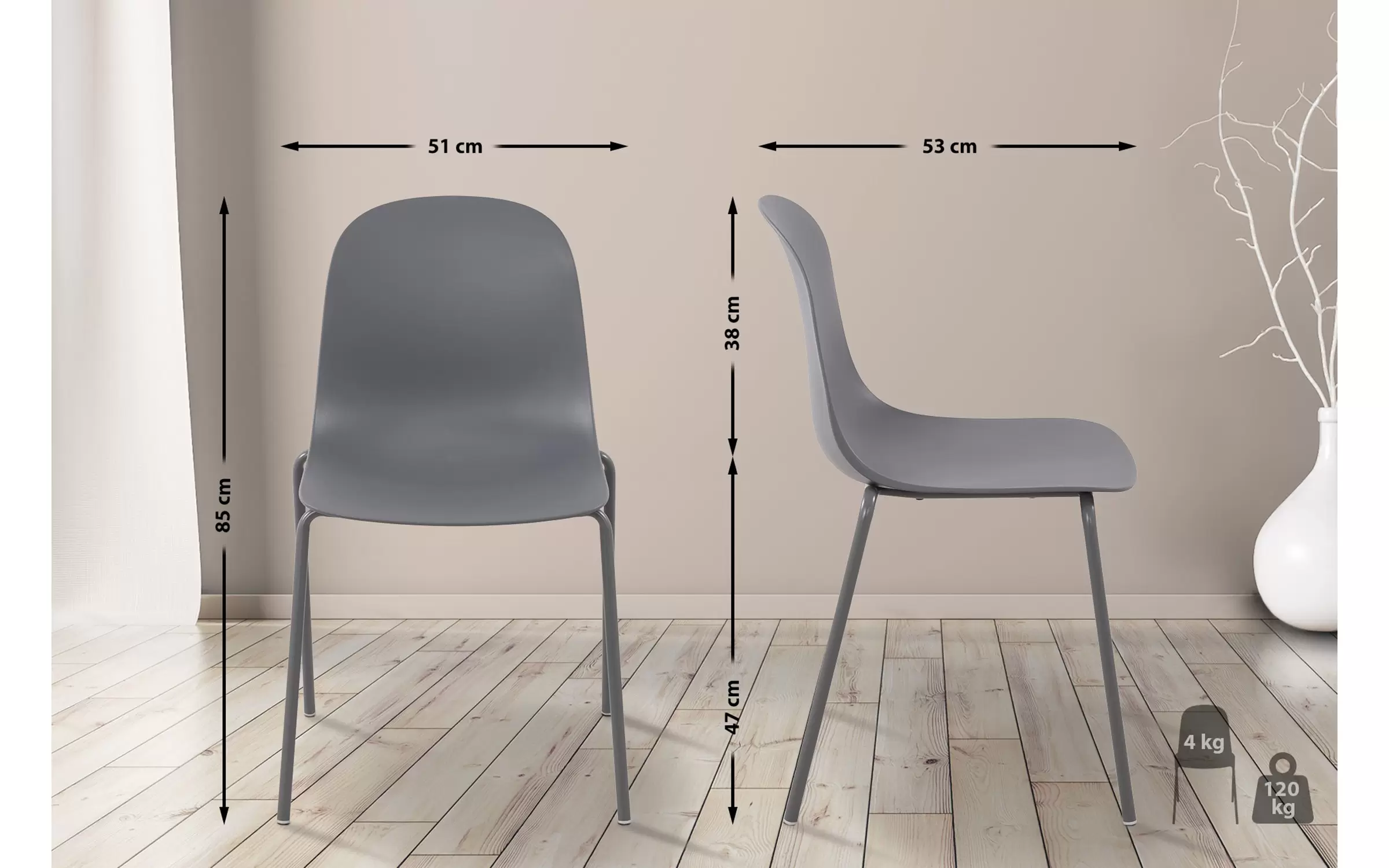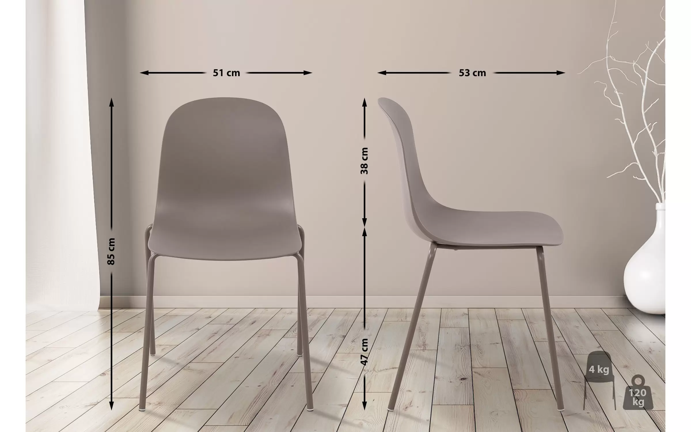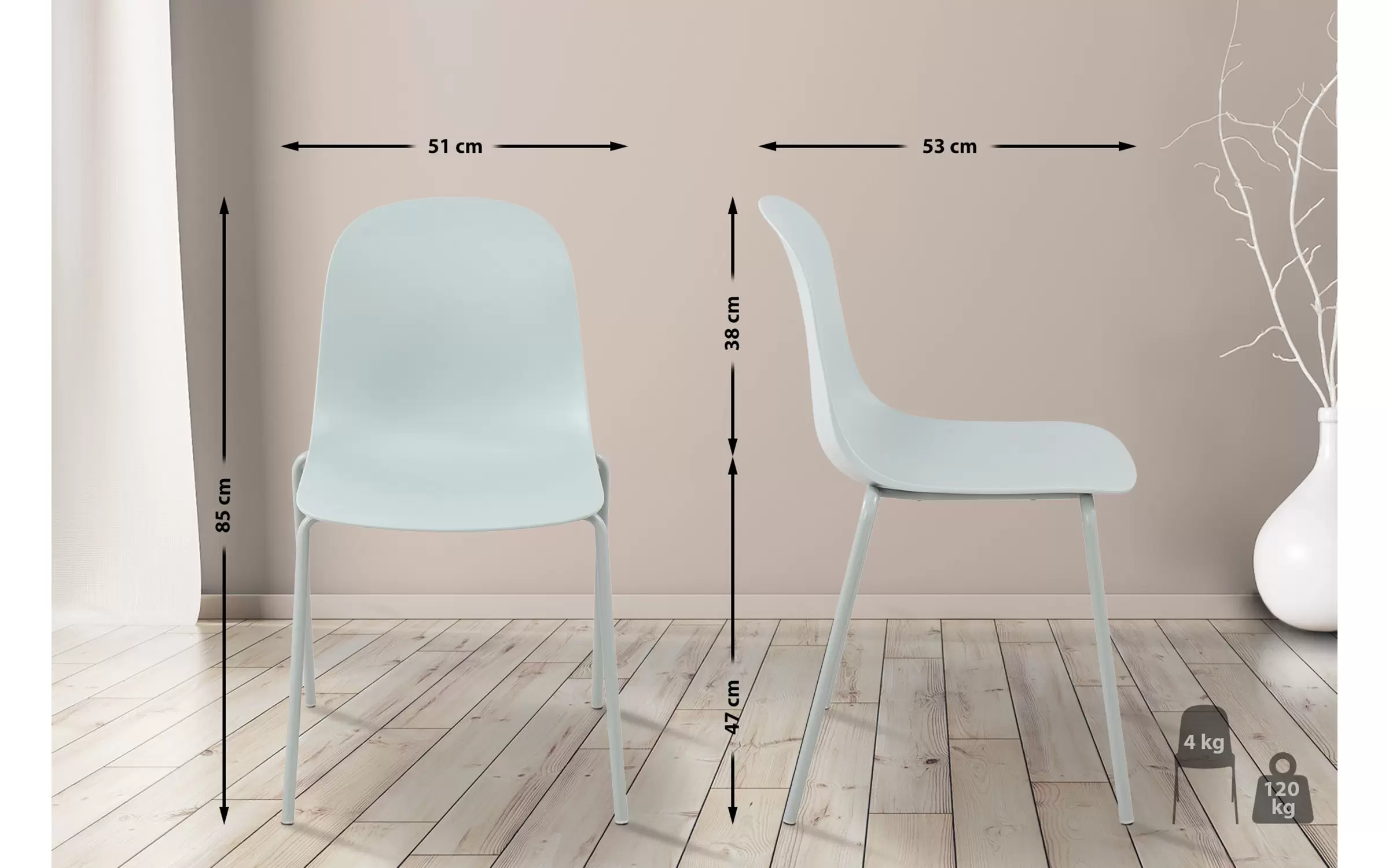 Kolory siedziska i konstrukcji krzesła są ze sobą dopasowane. Krzesła można sztaplować.