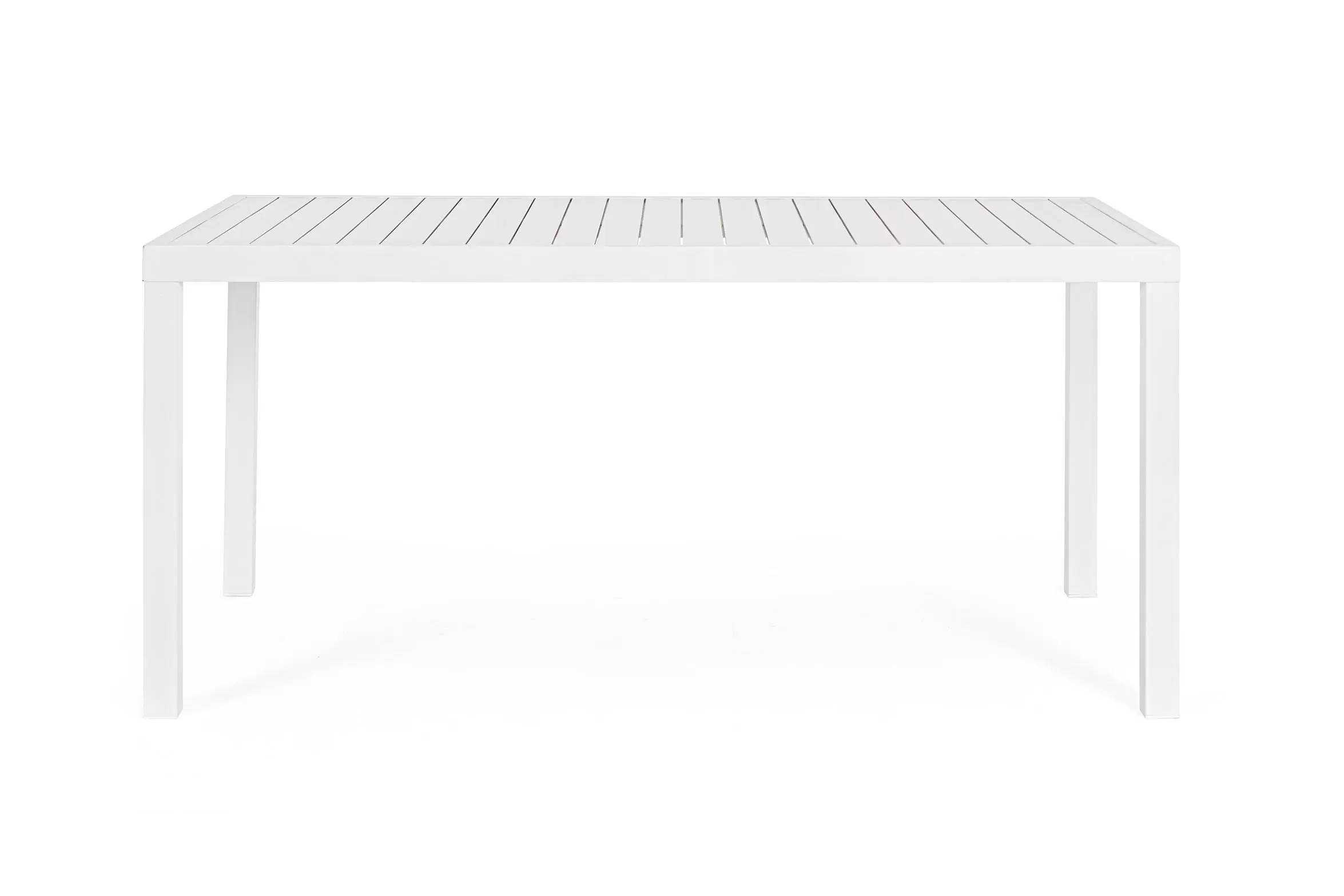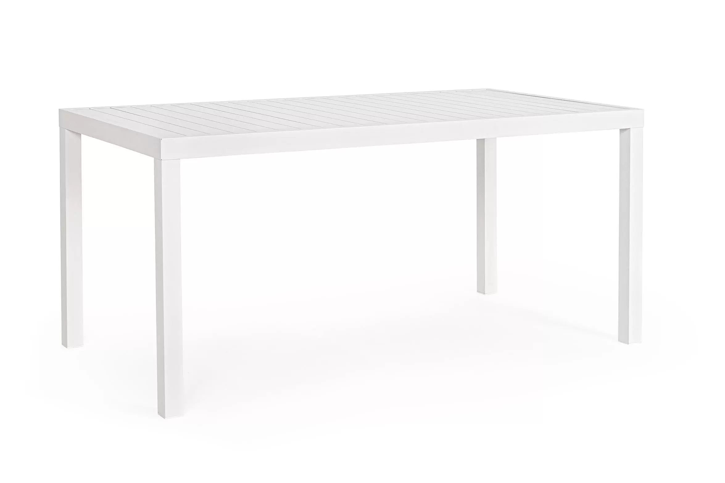 Stół aluminiowy do ogrodowej jadalni wykonany w całości z aluminium malowanego proszkowo. Poprzeczne 'deseczki' blatu także z aluminium.