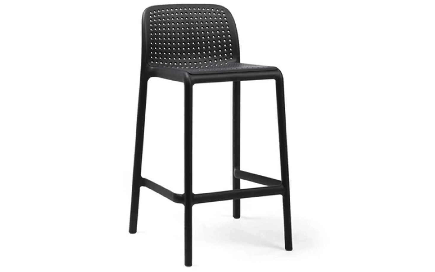 Sztaplowany stołek barowy niższy od LIDO wykonany z polipropylenu wzmocnionego włóknem szklanymi. Nowoczesna forma i wygodne siedzisko oraz materiały powodują, że może być użytkowana cały rok na zewnątrz. W całości wykonana z włókna szklanego oraz z żywicy syntetycznej (żywica polipropylenowa z dodatkami zabezpieczającymi przed promieniowaniem UV, barwiona w masie).