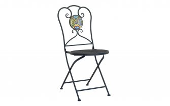 Stylowy stolik z mozaiką w stylu art deco. Konstrukcja stołu ogrodowego stal cynkowana malowana proszkowo na kolor czarny.