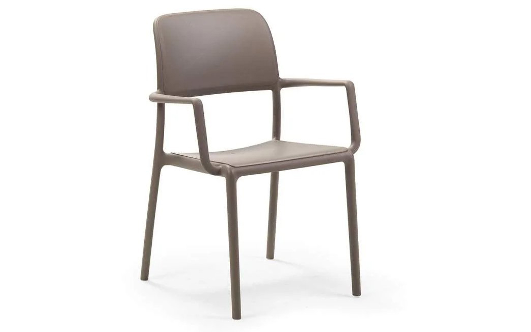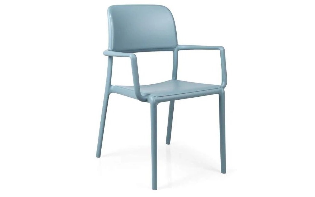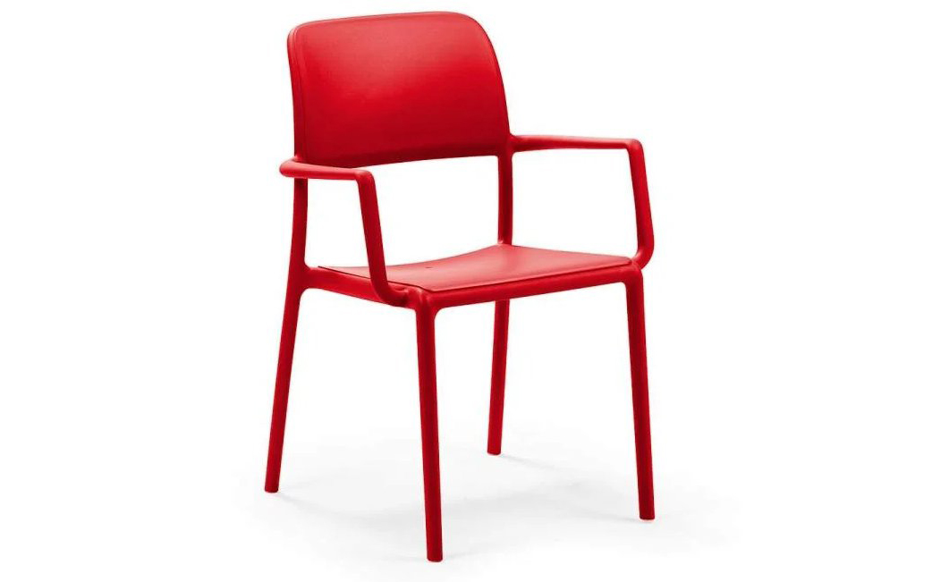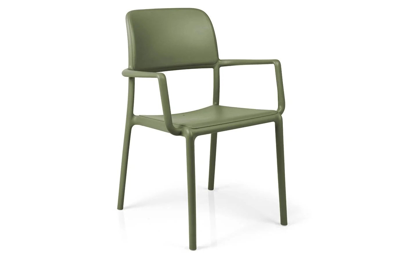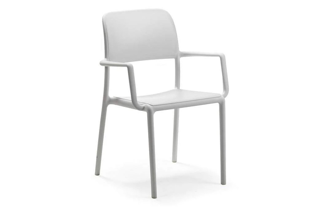 Sztaplowany fotel wykonany z polipropylenu wzmocnionego włóknem szklanym z podłokietnikami. Nowoczesna forma i wygodne siedzisko oraz materiały powodują, że może być użytkowana cały rok na zewnątrz. W całości wykonana z włókna szklanego oraz z żywicy syntetycznej (żywica polipropylenowa z dodatkami zabezpieczającymi przed promieniowaniem UV, barwiona w masie).