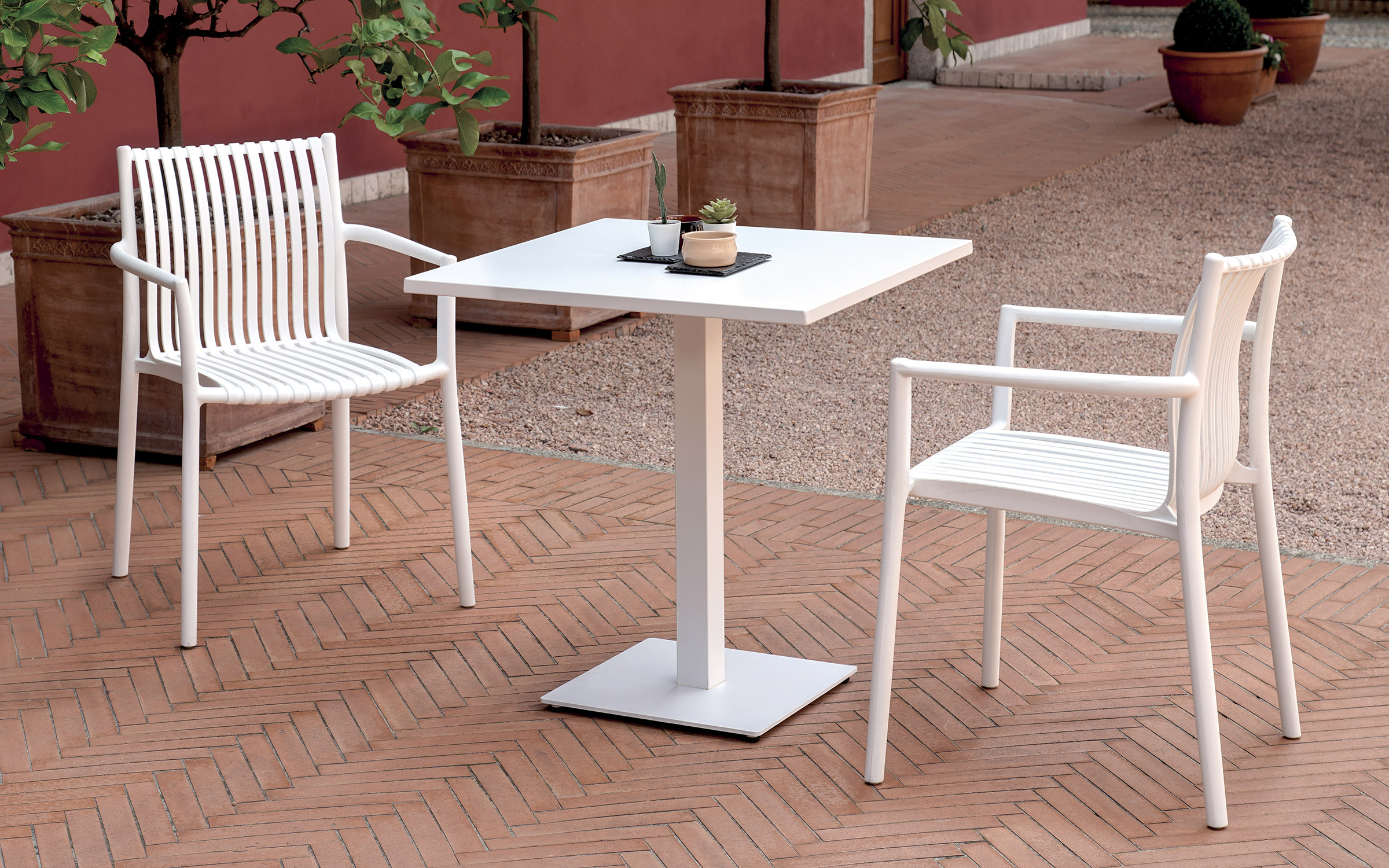 Krzesło SIENA to model kontraktowy przeznaczony do intensywnego użytku w przestrzeniach horeca – idealne do ogrodów, tarasów, balkonów, restauracji i stref wypoczynkowych. Wykonane z polipropylenu z dodatkiem włókna szklanego, odporne na promieniowanie UV. Konstrukcja z podłokietnikami, sztaplowana – łatwa w przechowywaniu i transporcie.