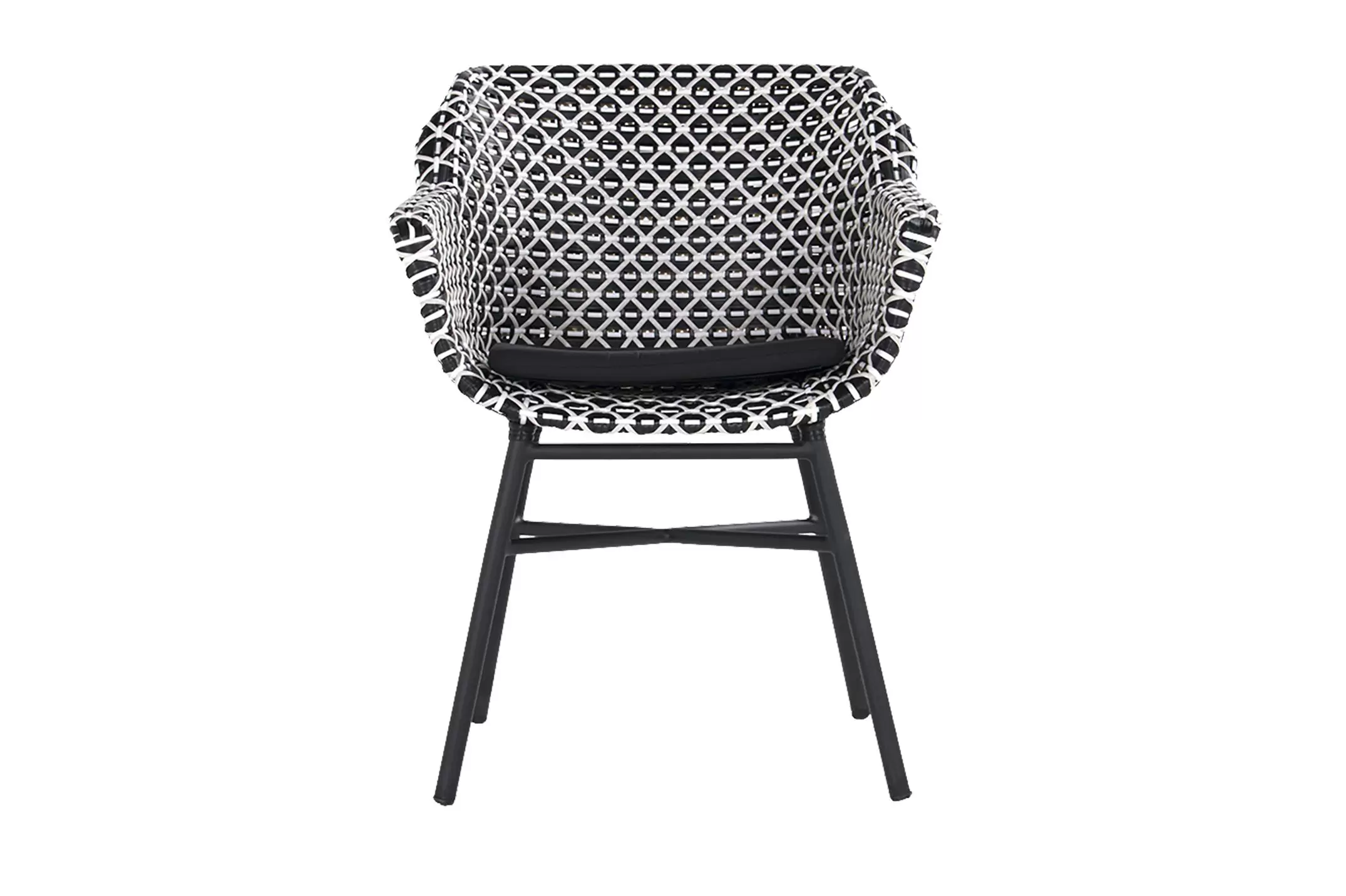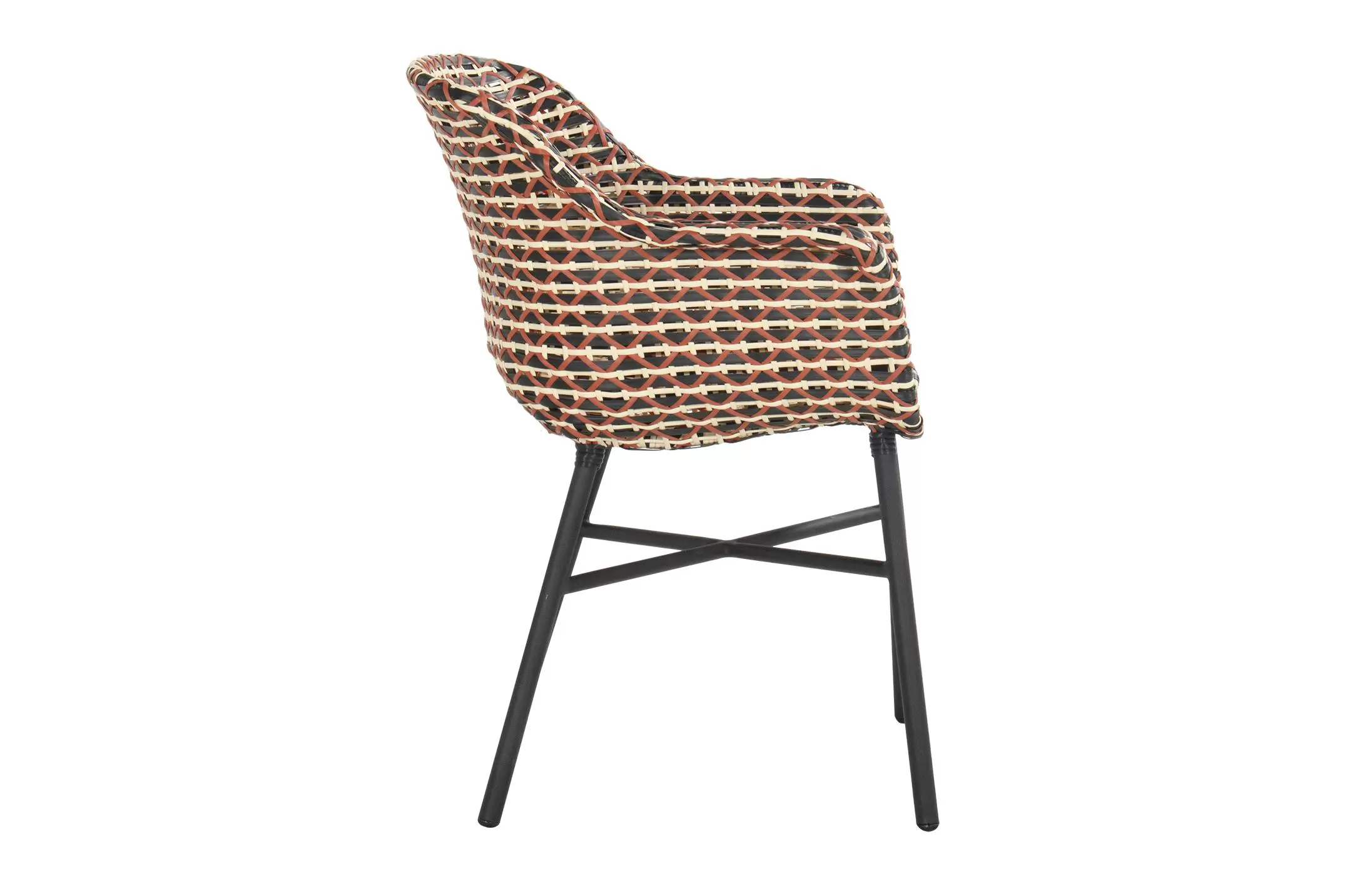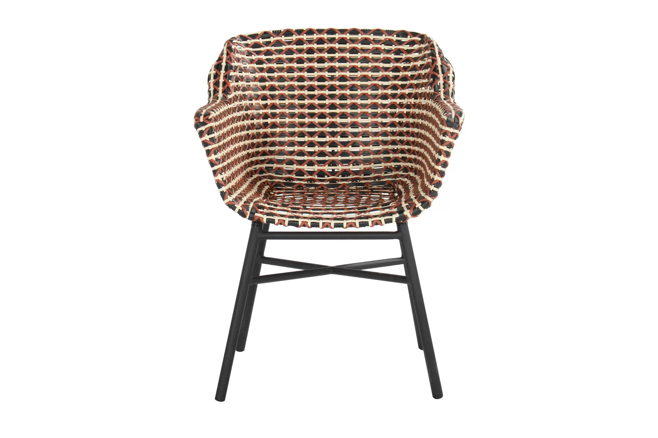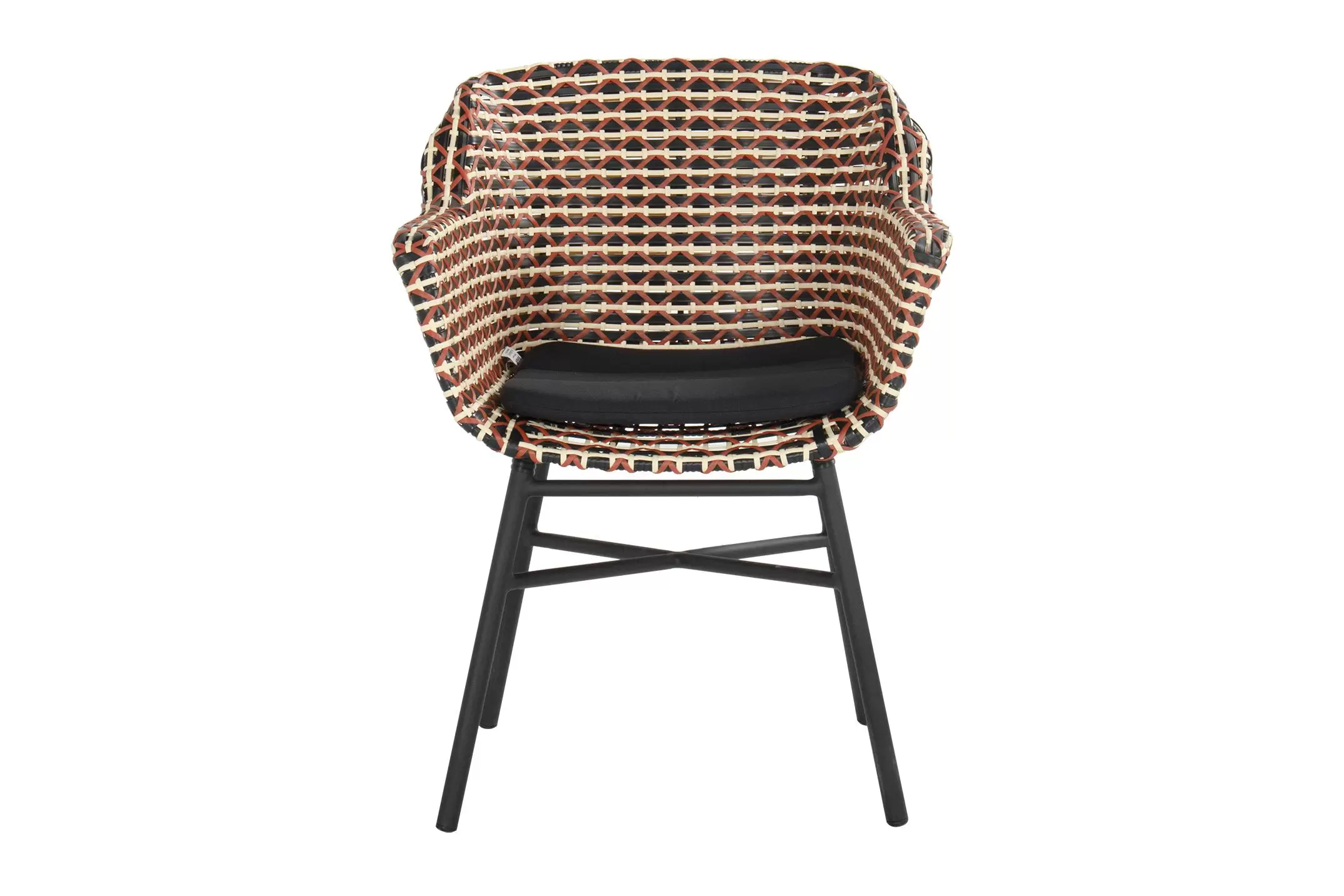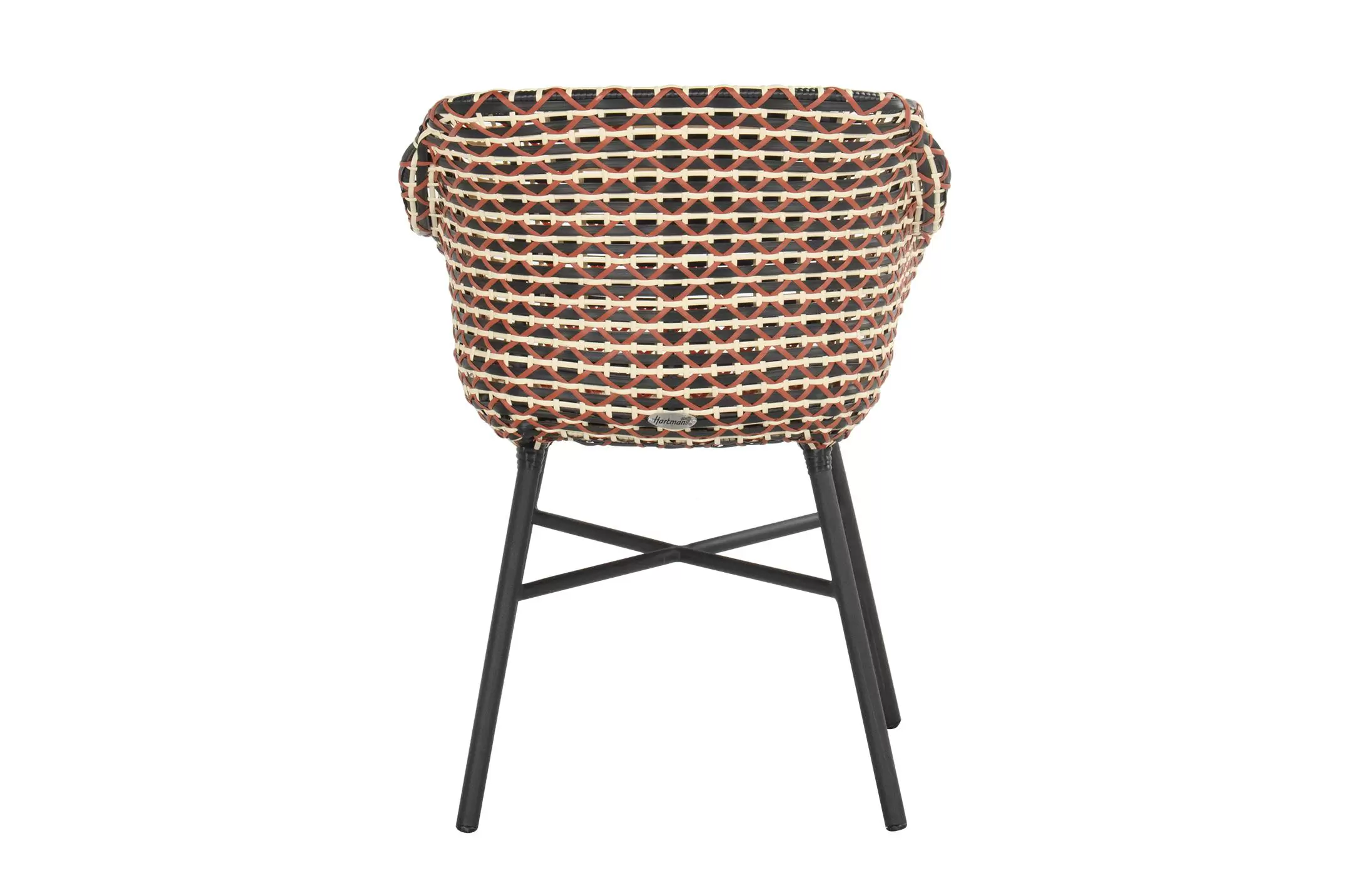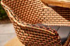 Krzesło ogrodowe Delphine przyciąga wzrok w ogrodzie. Starannie tkana trójkolorowy technorattan nadaje temu krzesłu luksusowy wygląd. Sprężysta plecionka technorattanowa krzesła i podłokietników jest wygodna do siedzienia.