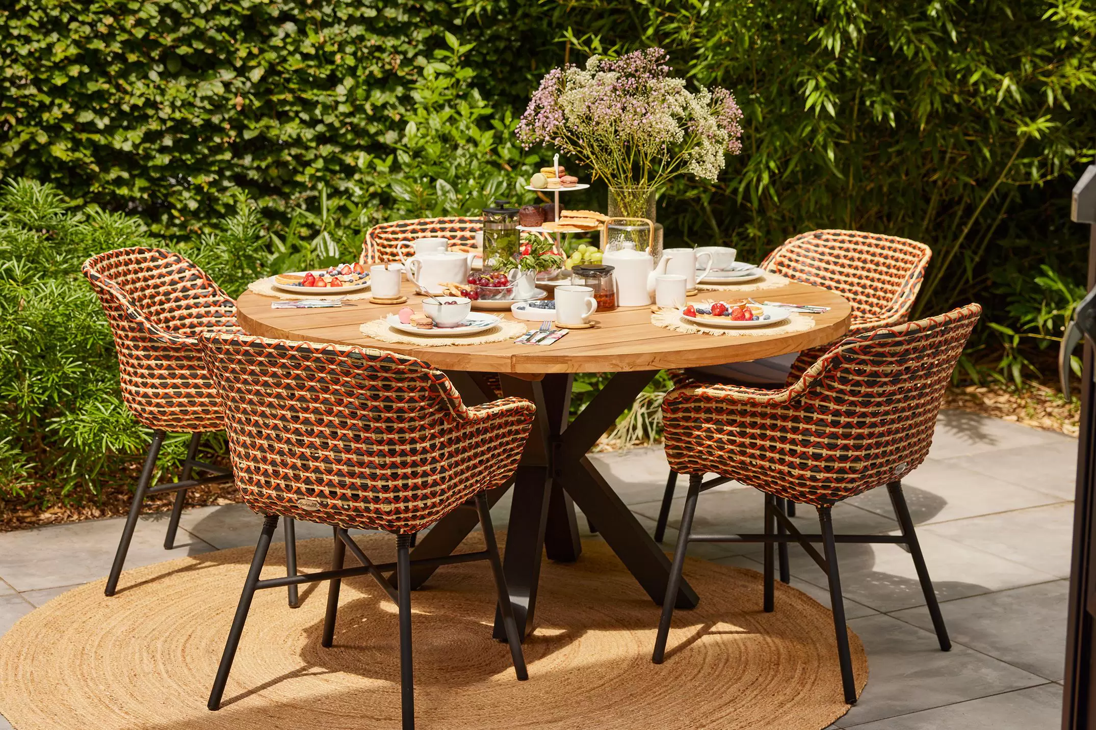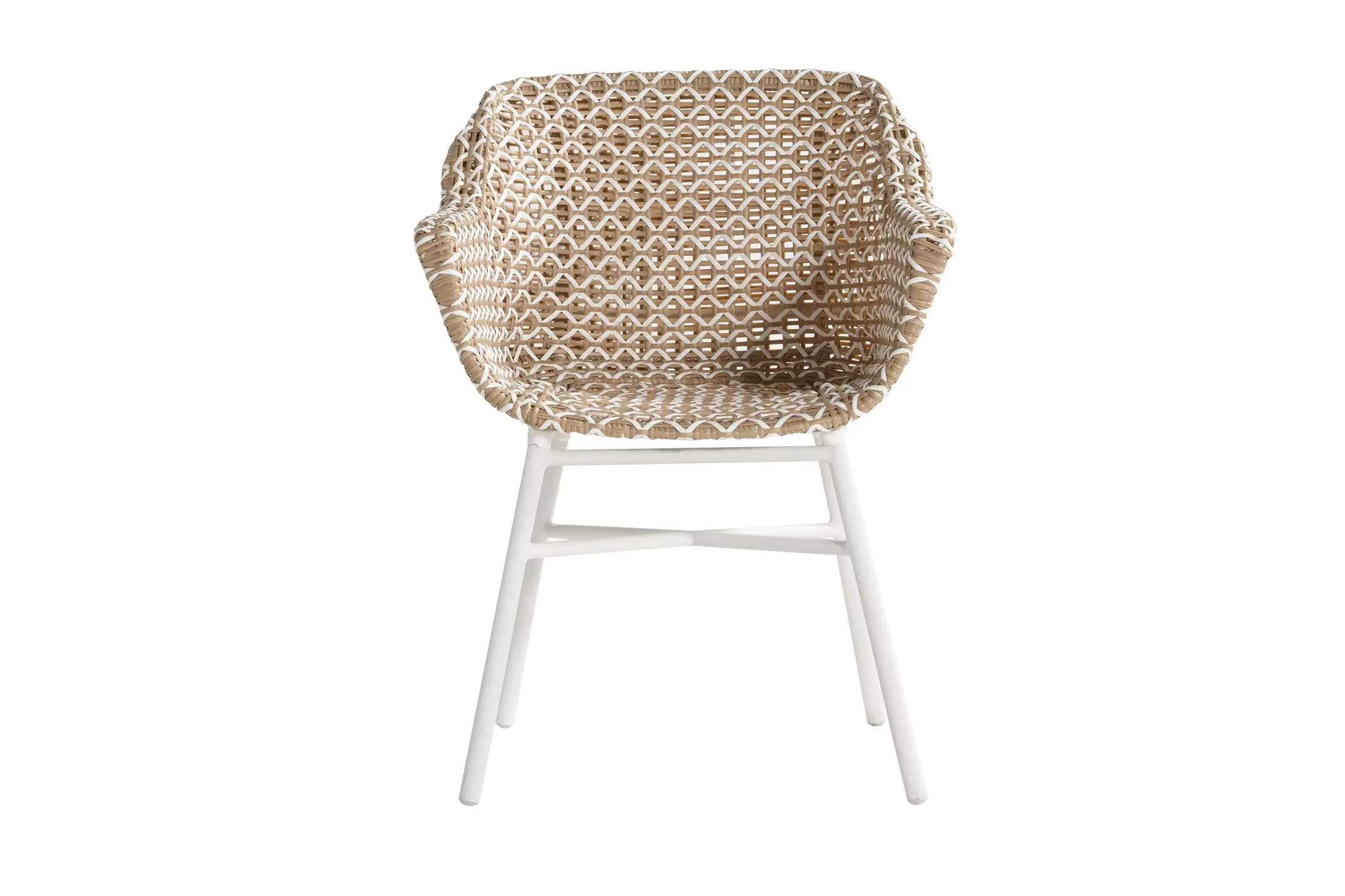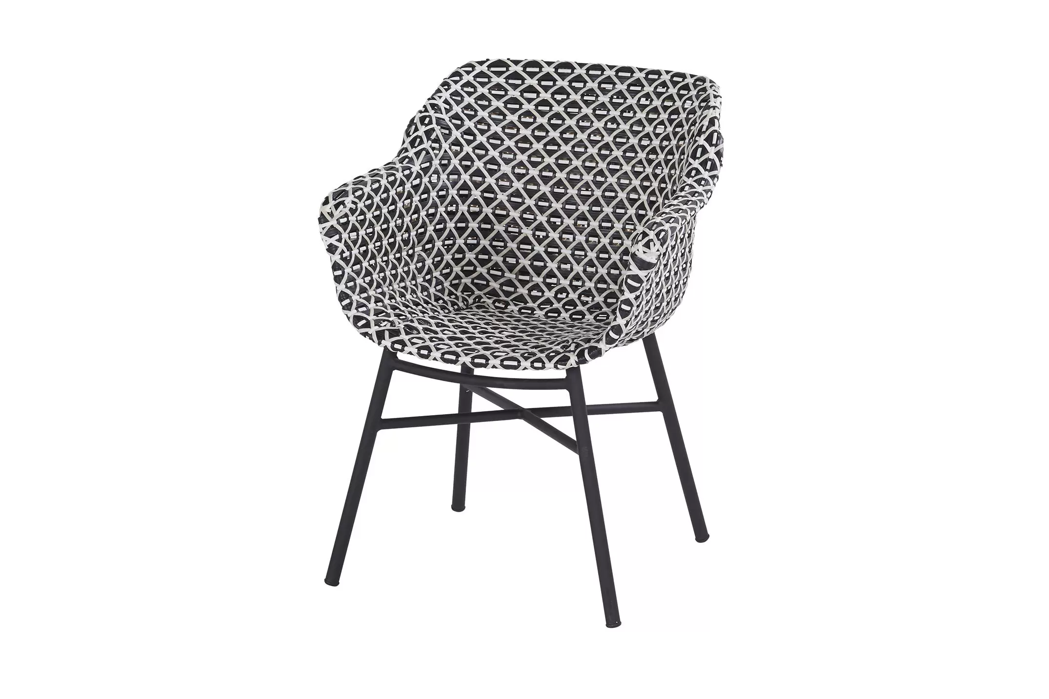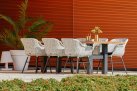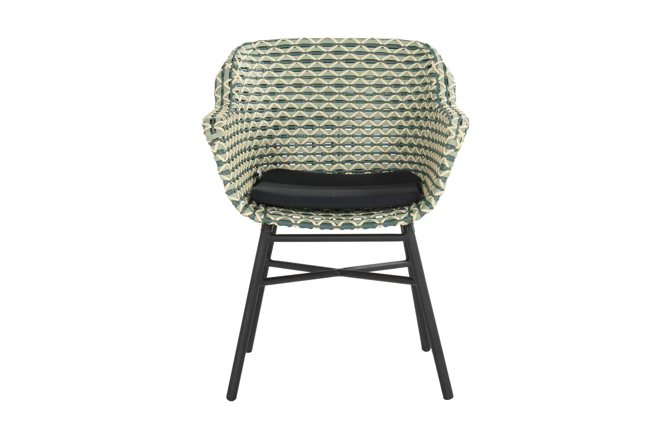 Krzesło ogrodowe Delphine przyciąga wzrok w ogrodzie. Starannie tkana trójkolorowy technorattan nadaje temu krzesłu luksusowy wygląd. Sprężysta plecionka technorattanowa krzesła i podłokietników jest wygodna do siedzienia.