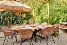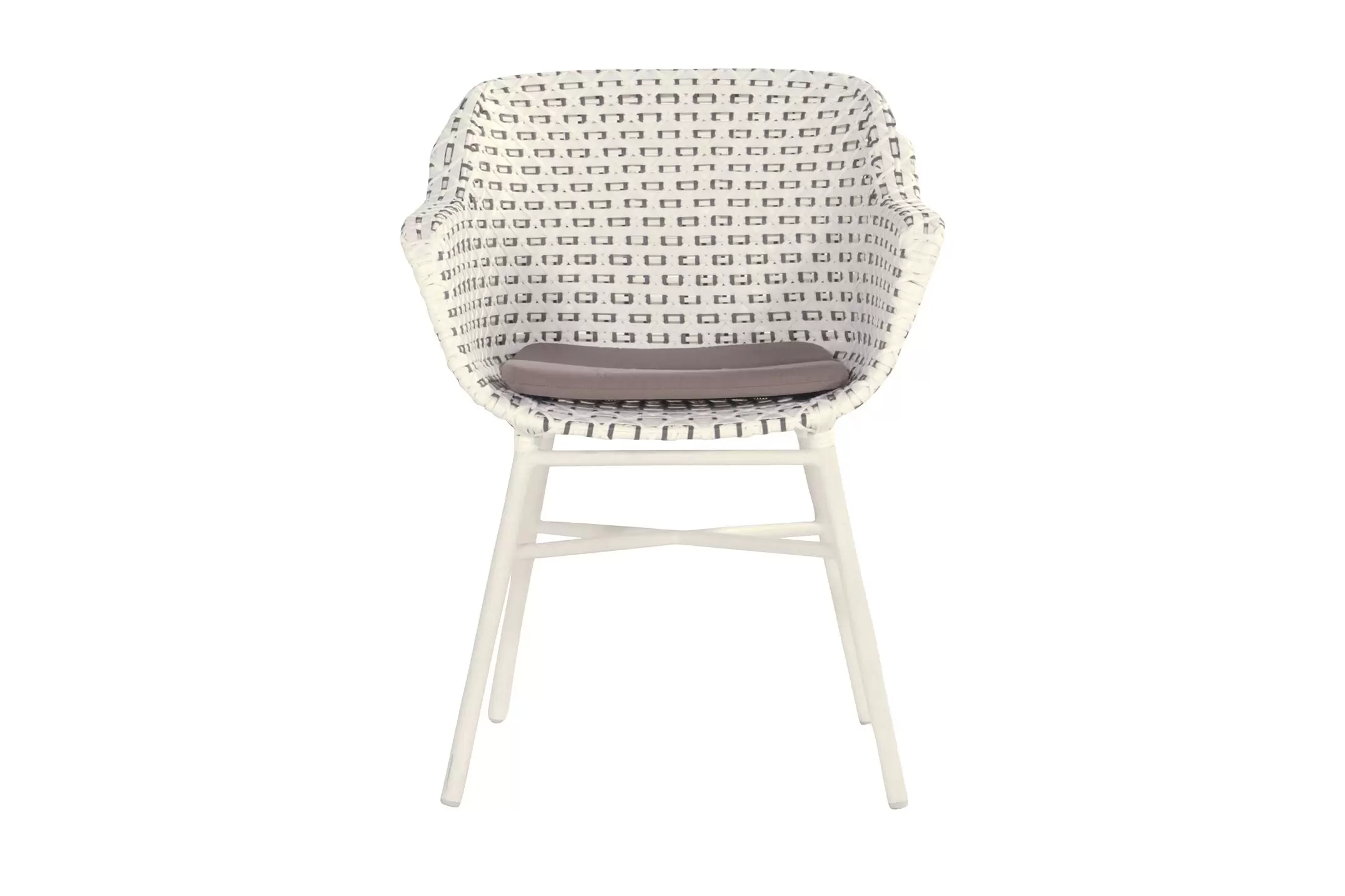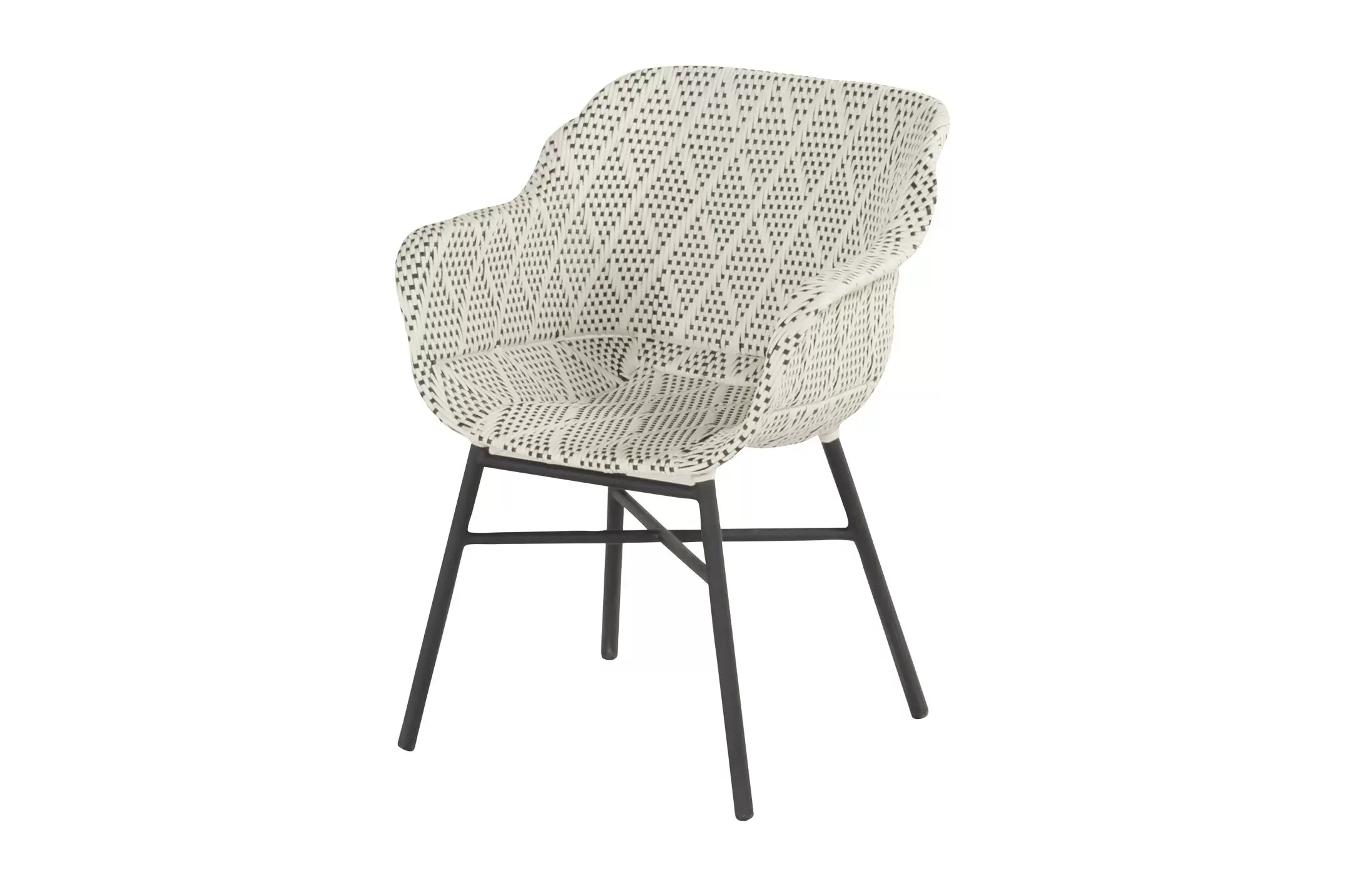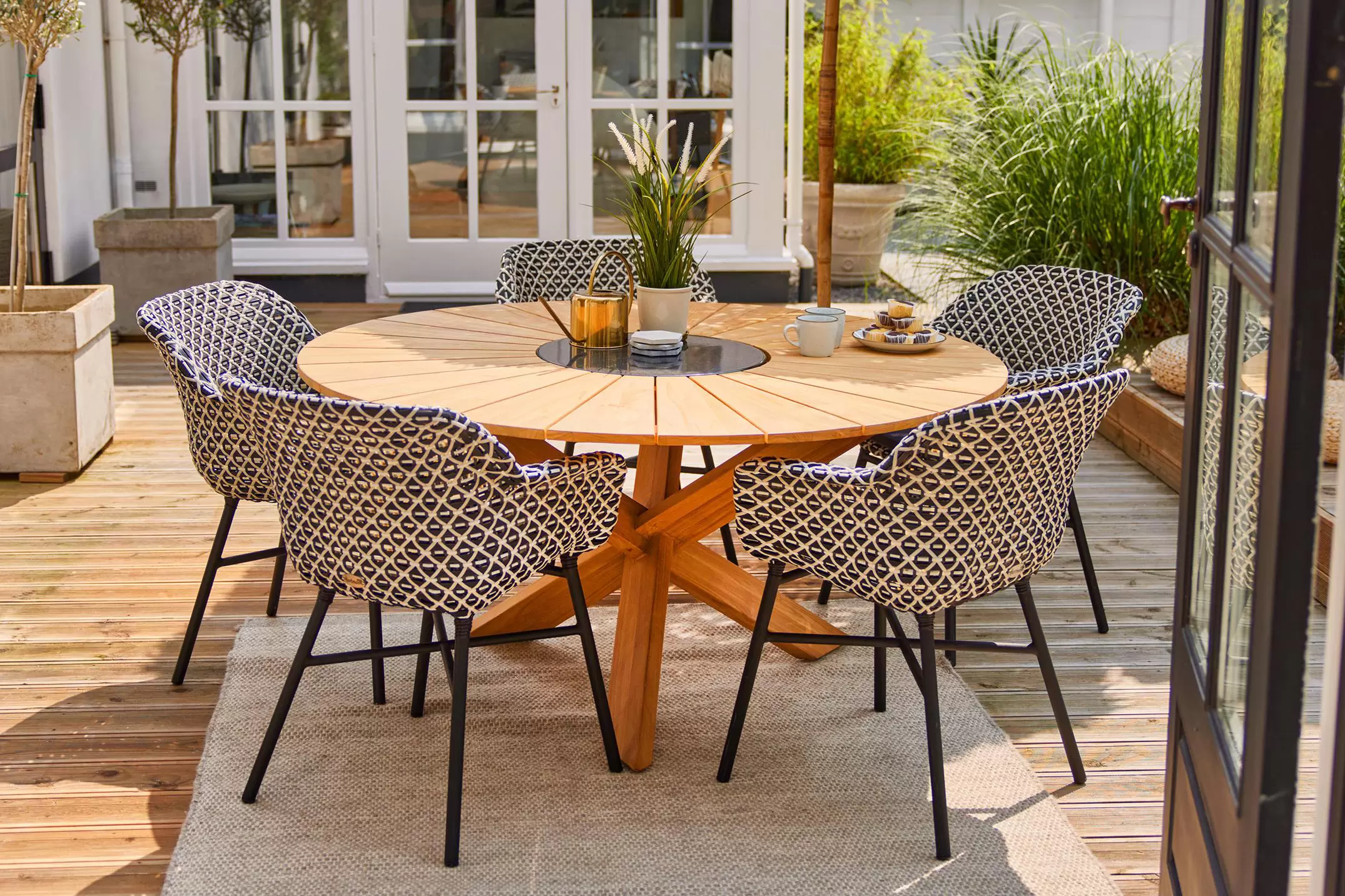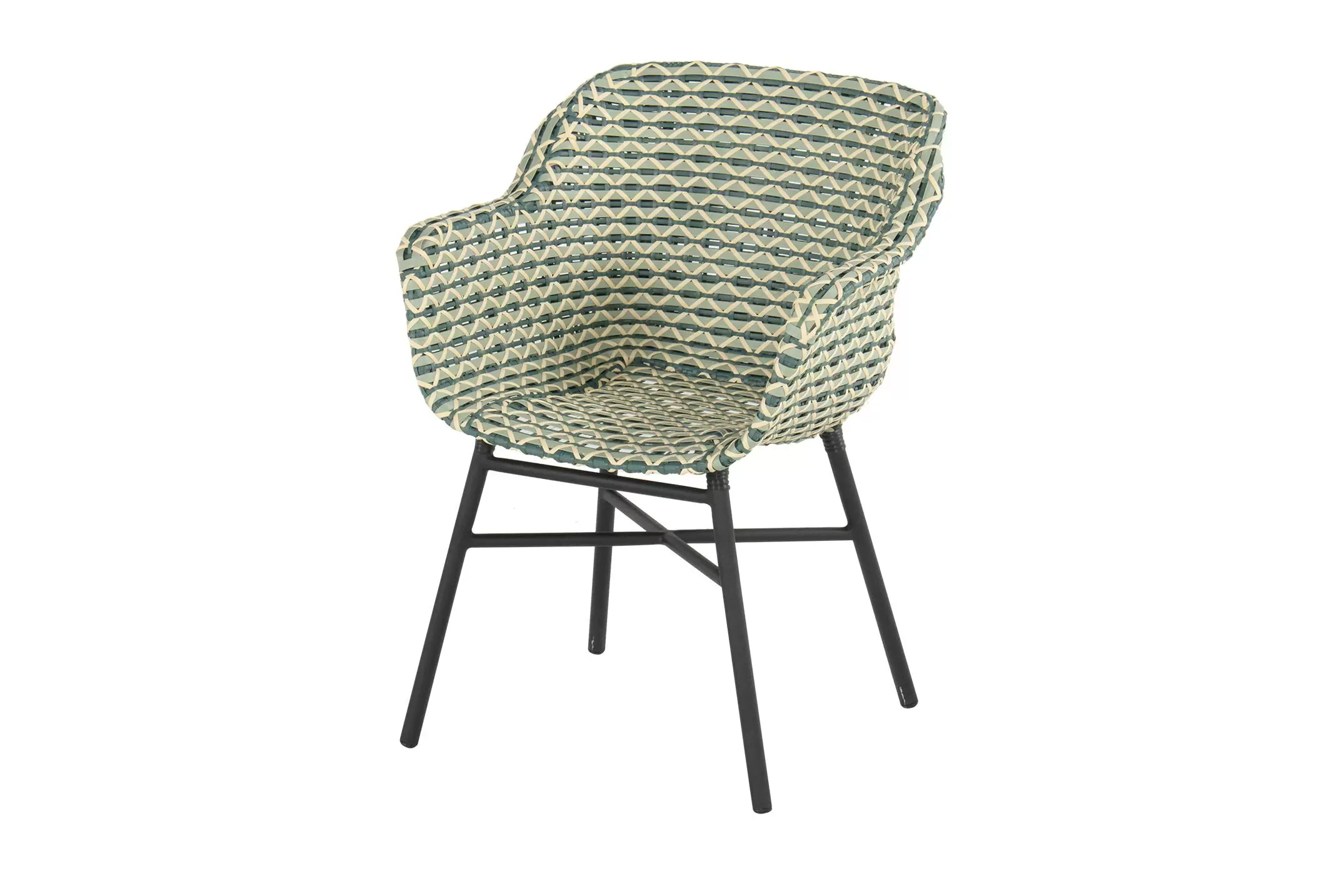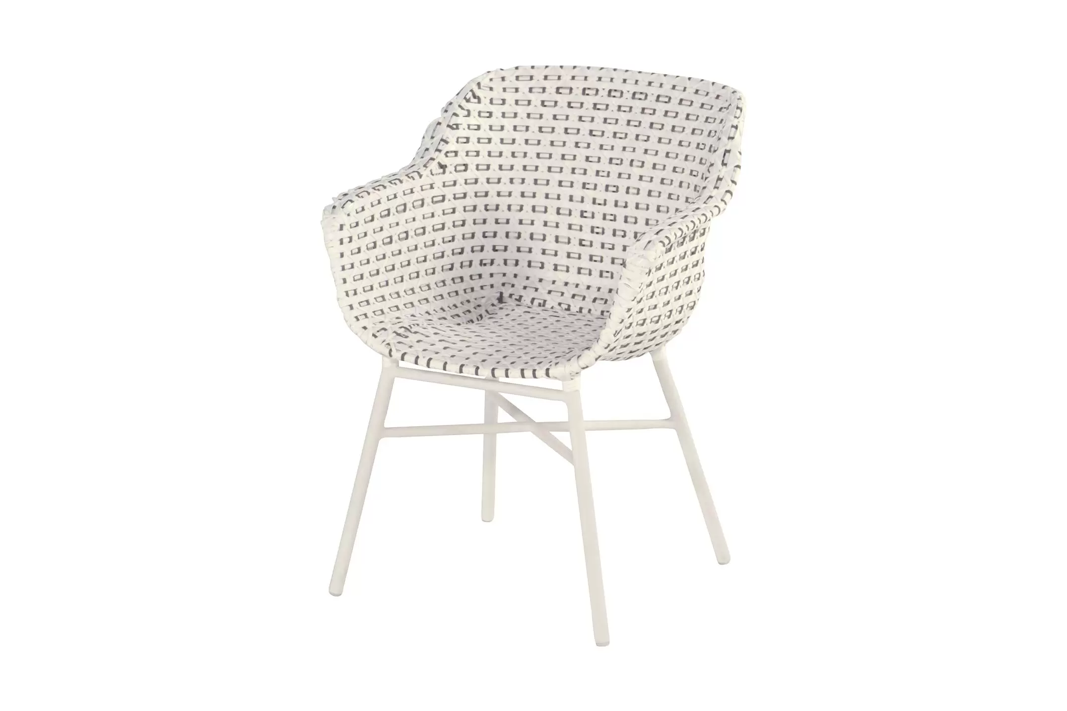 Krzesło ogrodowe Delphine przyciąga wzrok w ogrodzie. Starannie tkana trójkolorowy technorattan nadaje temu krzesłu luksusowy wygląd. Sprężysta plecionka technorattanowa krzesła i podłokietników jest wygodna do siedzienia.
