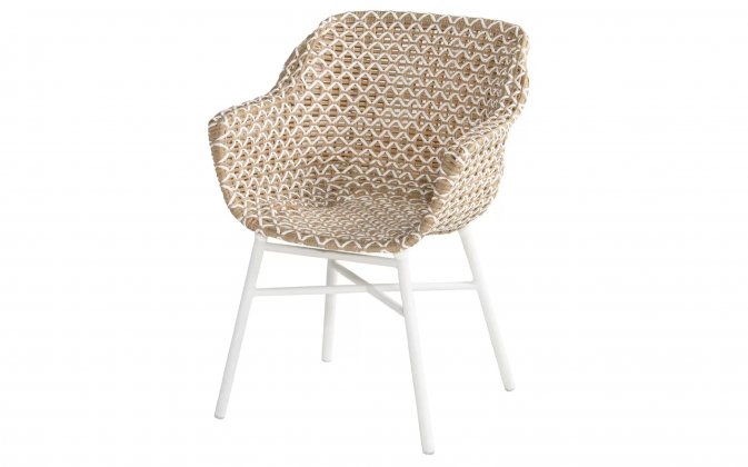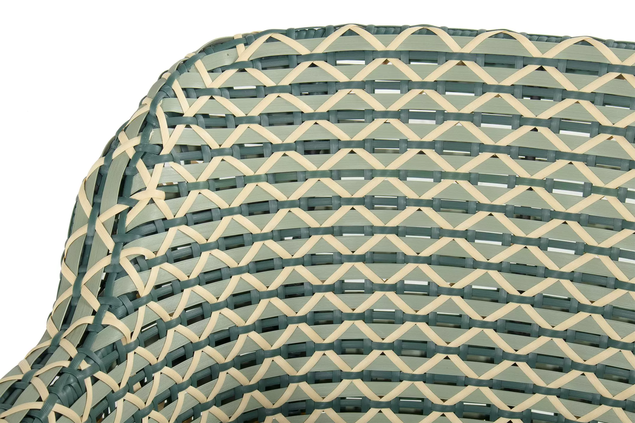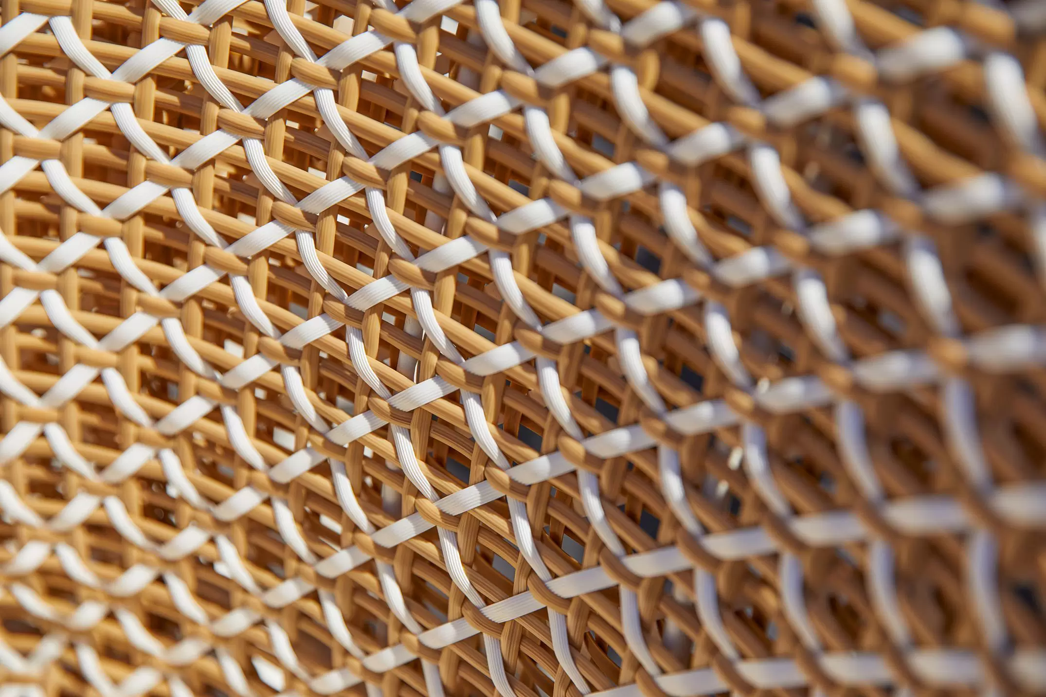 Siedzisko o konstrukcji aluminiowej oplecione technorattanowej w różnych konfiguracjach kolorystycznych.